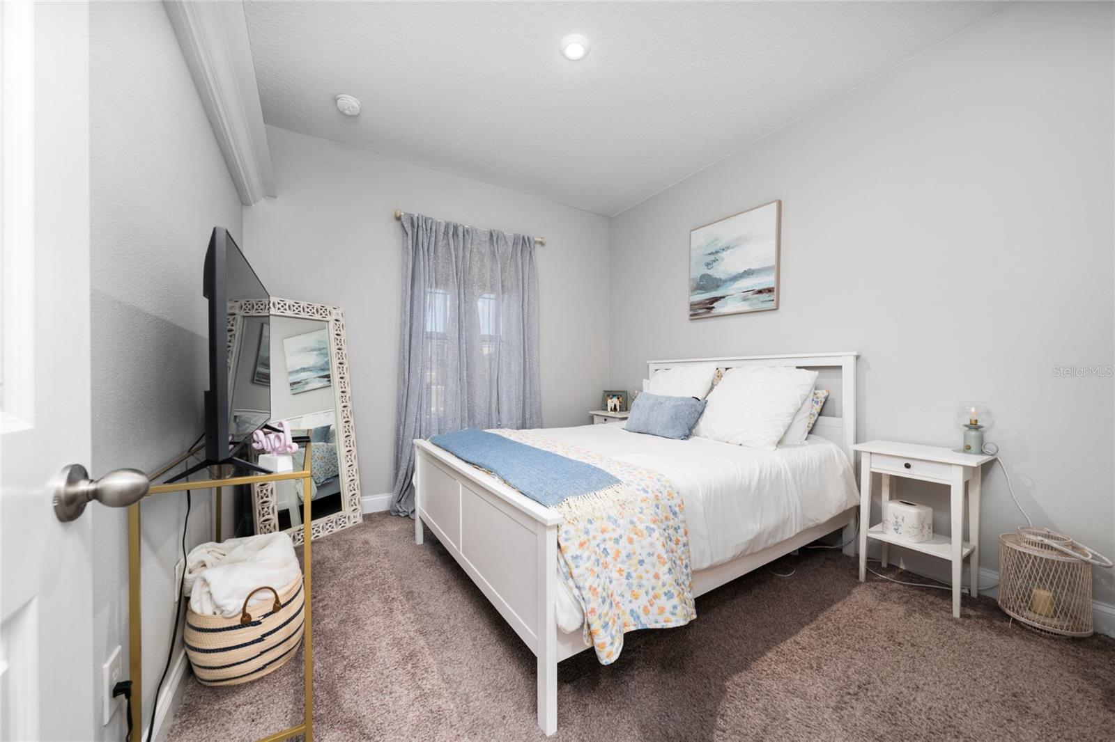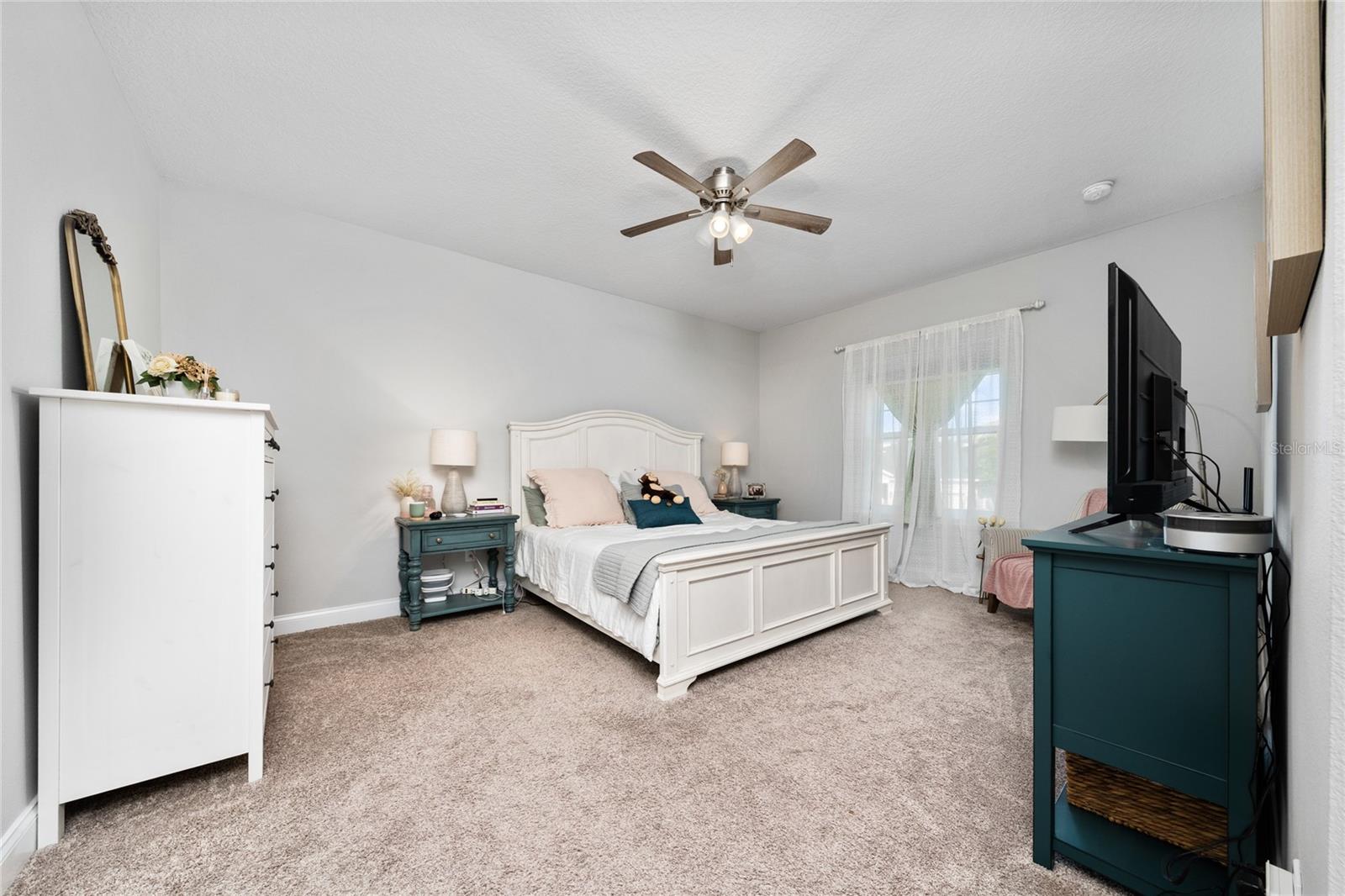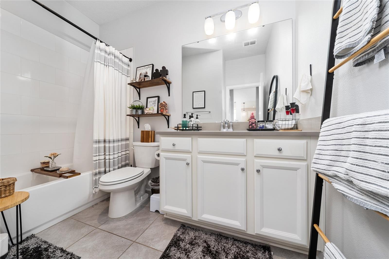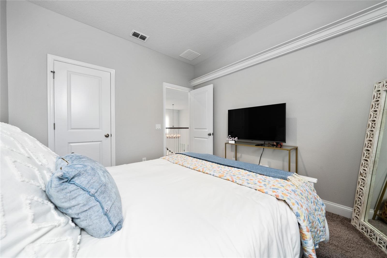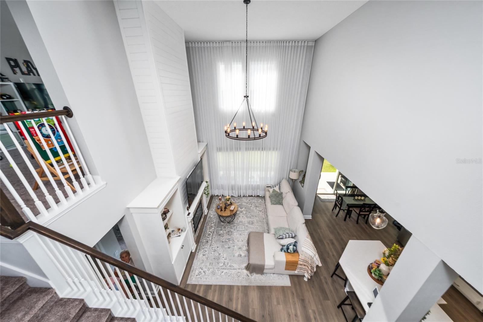 Welcome to this thoughtfully upgraded and meticulously maintained 4-bedroom, 3-bathroom home located in the highly sought-after community of John’s Lake Landing. From the moment you arrive, you’ll be captivated by the beautiful curb appeal and the inviting covered front porch — perfect for enjoying peaceful mornings or evening conversations. Step inside to a bright, open-concept floor plan featuring luxury vinyl plank flooring, soaring ceilings, and abundant natural light. The gourmet kitchen is a chef’s dream, boasting quartz countertops, subway tile backsplash, stainless steel appliances, wall oven and microwave, vented hood, glass cooktop, spacious pantry, and a large center island that offers ample prep space and seating. The kitchen flows seamlessly into the family room, which is bathed in natural light thanks to oversized windows and high ceilings — creating a warm, welcoming space ideal for entertaining. Thoughtfully designed upgrades include a stunning custom-built TV tower and beautifully tailored curtains that add a touch of elegance and coziness to the living space. Upstairs, the handcrafted staircase with stained wood handrails and spindles leads to a versatile loft area — ideal for a home office, second living room, playroom, or gym. The owner’s suite features a spacious layout with a large walk-in closet and custom organization system, dual vanities with quartz countertops, a frameless glass shower, and private water closet. Two additional bedrooms share a full bath with quartz finishes and tile surround. Downstairs, the fourth bedroom is conveniently located near a full bathroom and laundry room — perfect for guests or multigenerational living. Step outside to a fully fenced backyard, ideal for children, pets, or even the addition of a future pool. From the back of the home, you’ll enjoy breathtaking sunset views over the lake, making every evening feel special. Additional features include a whole-house water softener system, which is not included in the sale but can be assumed with the existing loan — a valuable addition for future homeowners. This home is located near top-rated schools, shopping, and dining, with easy access to the Florida Turnpike. The community also offers a resort-style pool for residents. Don’t miss your chance to own this upgraded, move-in-ready home with sunset views and thoughtful touches throughout — schedule your showing today! Washer, dryer, and water softener system do not convey.