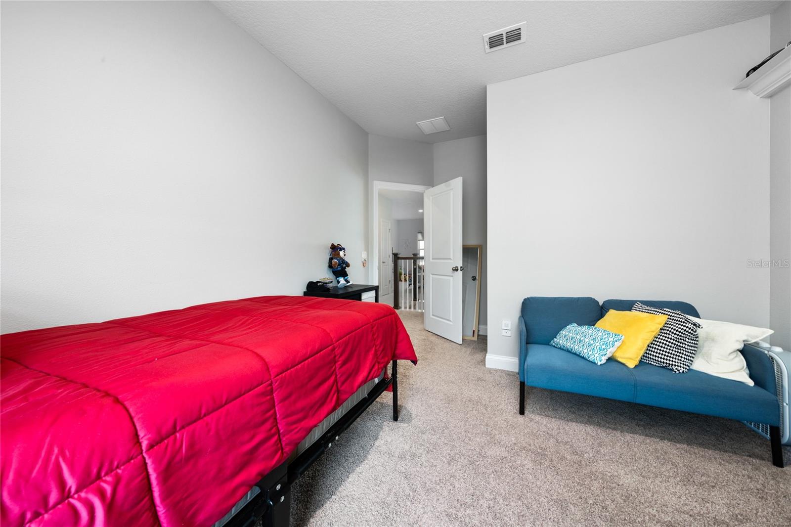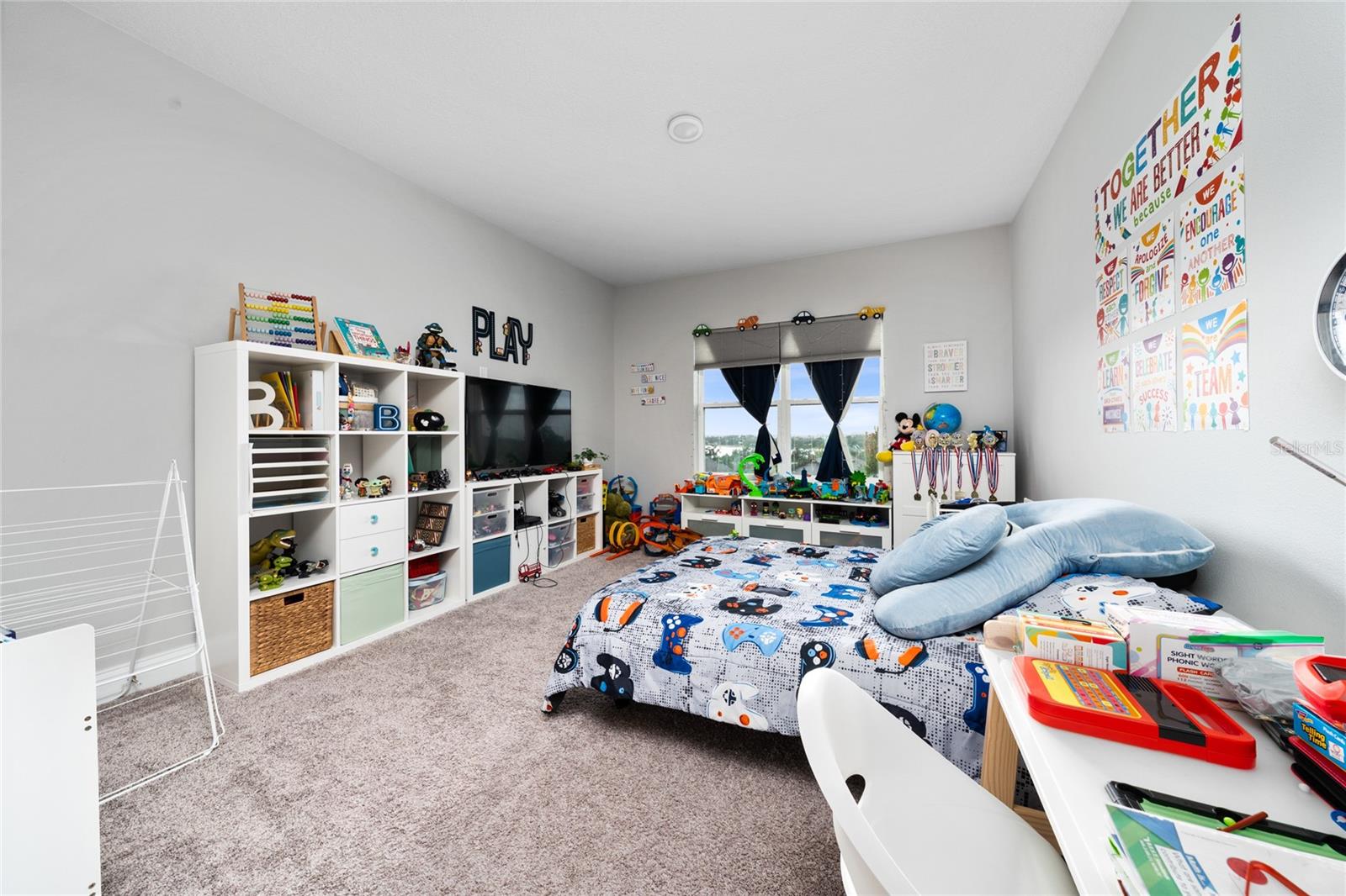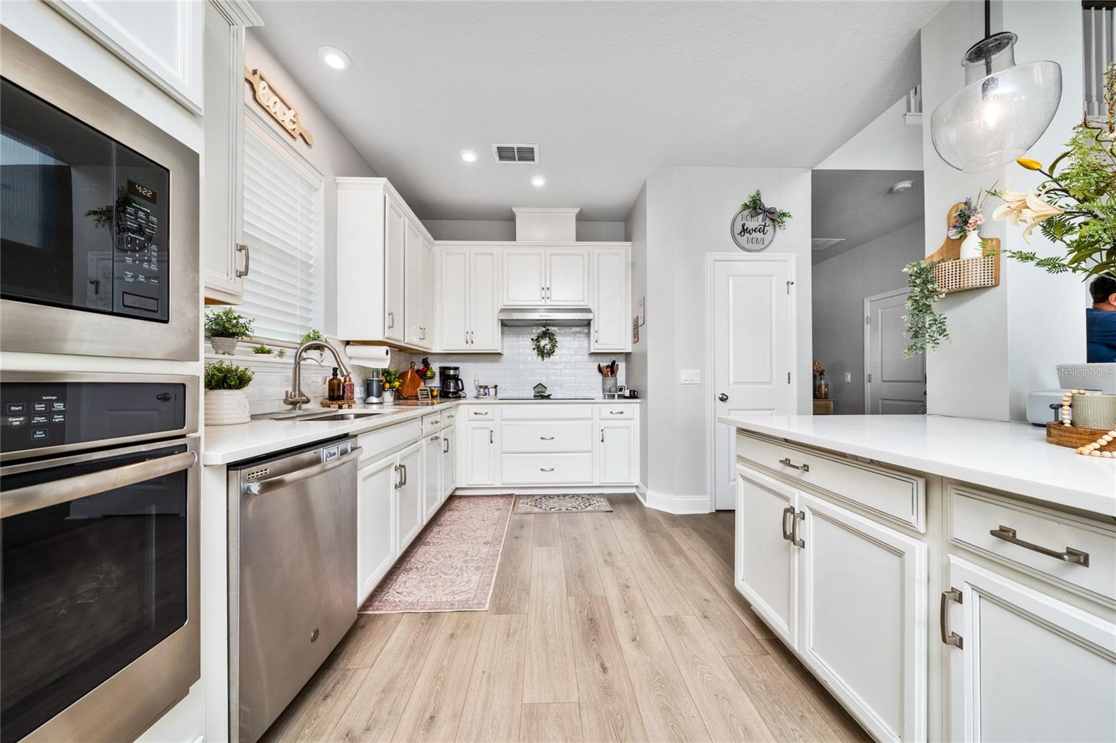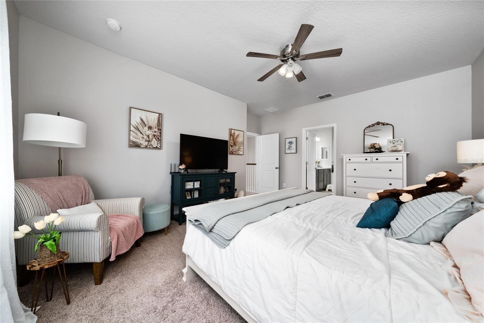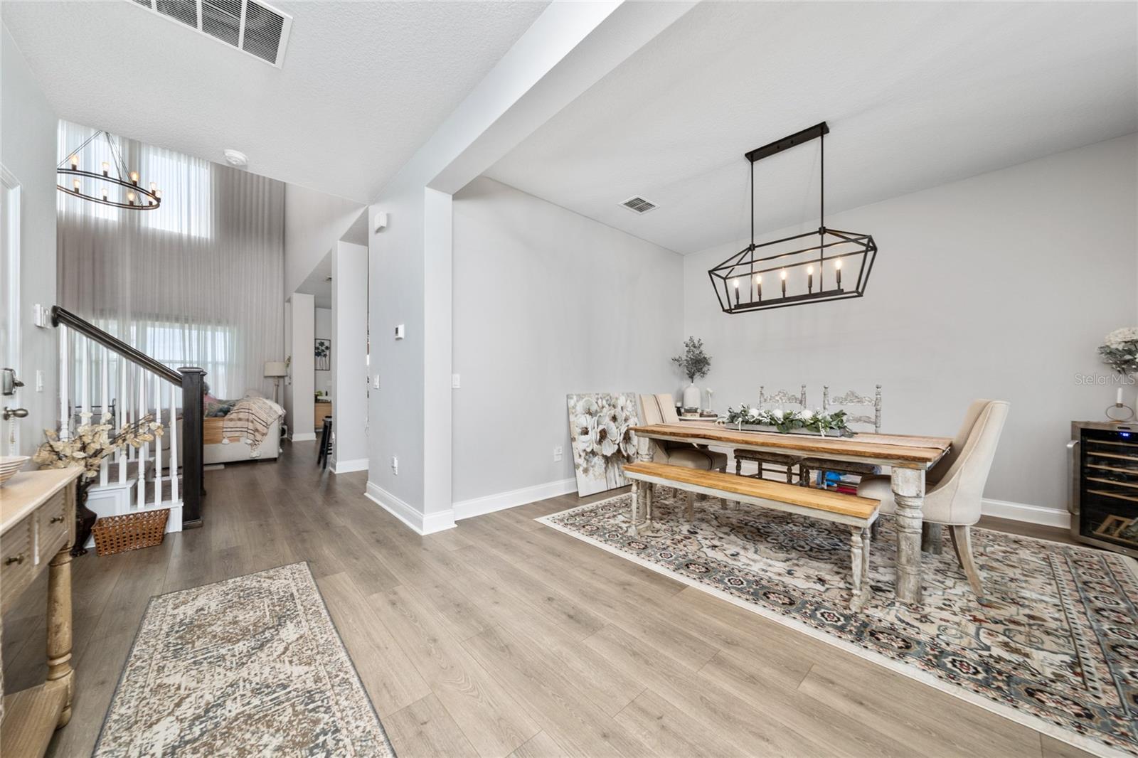 Welcome to this thoughtfully upgraded and meticulously maintained 4-bedroom, 3-bathroom home located in the highly sought-after community of John’s Lake Landing. From the moment you arrive, you’ll be captivated by the beautiful curb appeal and the inviting covered front porch — perfect for enjoying peaceful mornings or evening conversations. Step inside to a bright, open-concept floor plan featuring luxury vinyl plank flooring, soaring ceilings, and abundant natural light. The gourmet kitchen is a chef’s dream, boasting quartz countertops, subway tile backsplash, stainless steel appliances, wall oven and microwave, vented hood, glass cooktop, spacious pantry, and a large center island that offers ample prep space and seating. The kitchen flows seamlessly into the family room, which is bathed in natural light thanks to oversized windows and high ceilings — creating a warm, welcoming space ideal for entertaining. Thoughtfully designed upgrades include a stunning custom-built TV tower and beautifully tailored curtains that add a touch of elegance and coziness to the living space. Upstairs, the handcrafted staircase with stained wood handrails and spindles leads to a versatile loft area — ideal for a home office, second living room, playroom, or gym. The owner’s suite features a spacious layout with a large walk-in closet and custom organization system, dual vanities with quartz countertops, a frameless glass shower, and private water closet. Two additional bedrooms share a full bath with quartz finishes and tile surround. Downstairs, the fourth bedroom is conveniently located near a full bathroom and laundry room — perfect for guests or multigenerational living. Step outside to a fully fenced backyard, ideal for children, pets, or even the addition of a future pool. From the back of the home, you’ll enjoy breathtaking sunset views over the lake, making every evening feel special. Additional features include a whole-house water softener system, which is not included in the sale but can be assumed with the existing loan — a valuable addition for future homeowners. This home is located near top-rated schools, shopping, and dining, with easy access to the Florida Turnpike. The community also offers a resort-style pool for residents. Don’t miss your chance to own this upgraded, move-in-ready home with sunset views and thoughtful touches throughout — schedule your showing today! Washer, dryer, and water softener system do not convey.