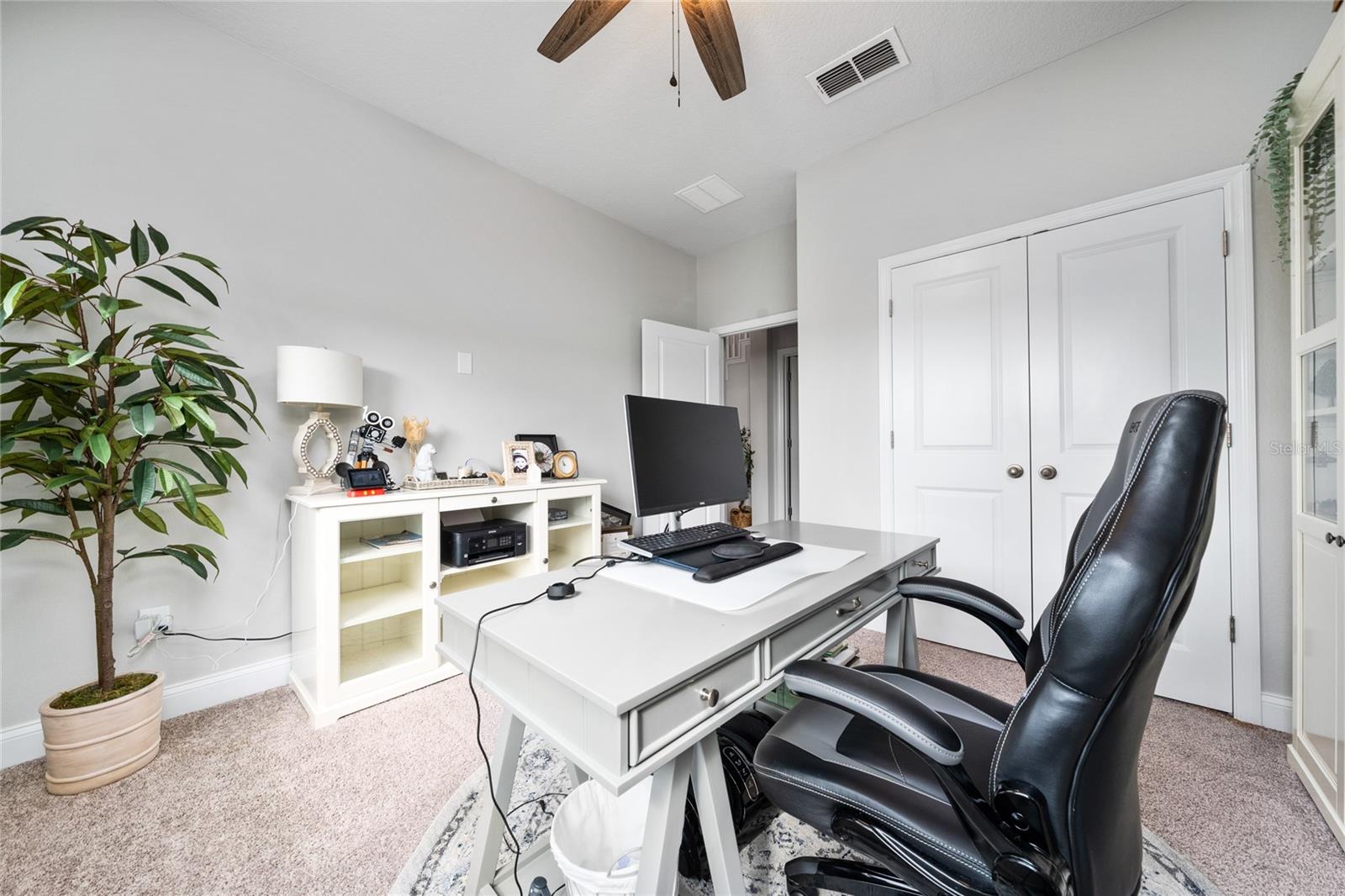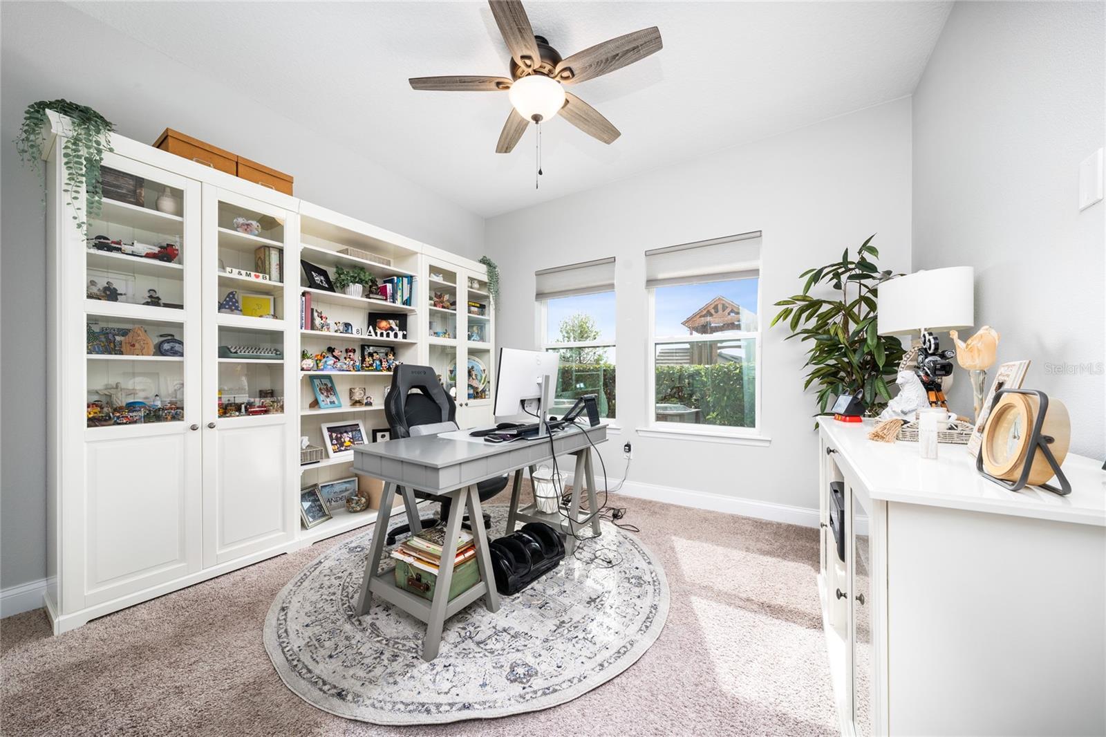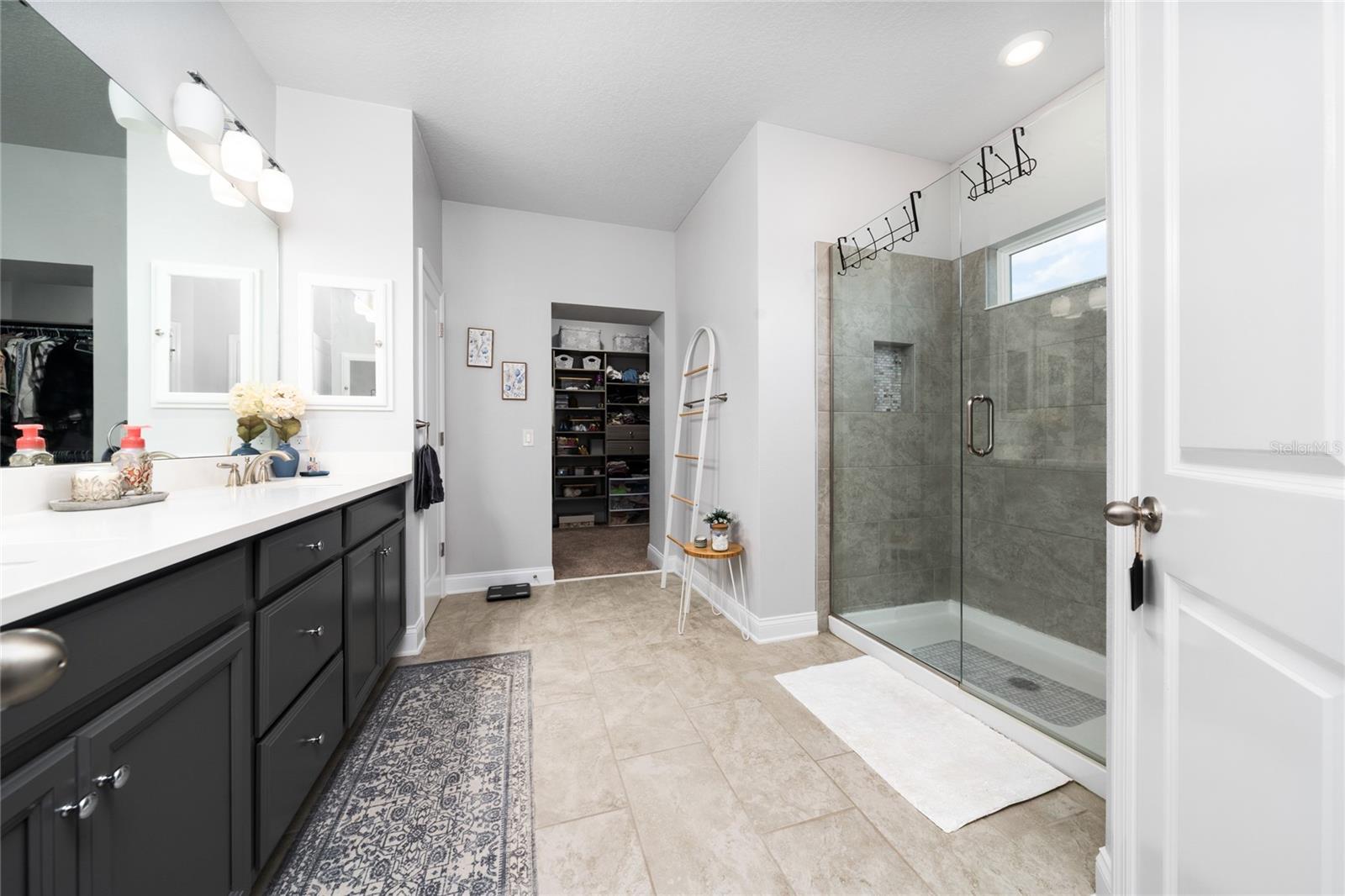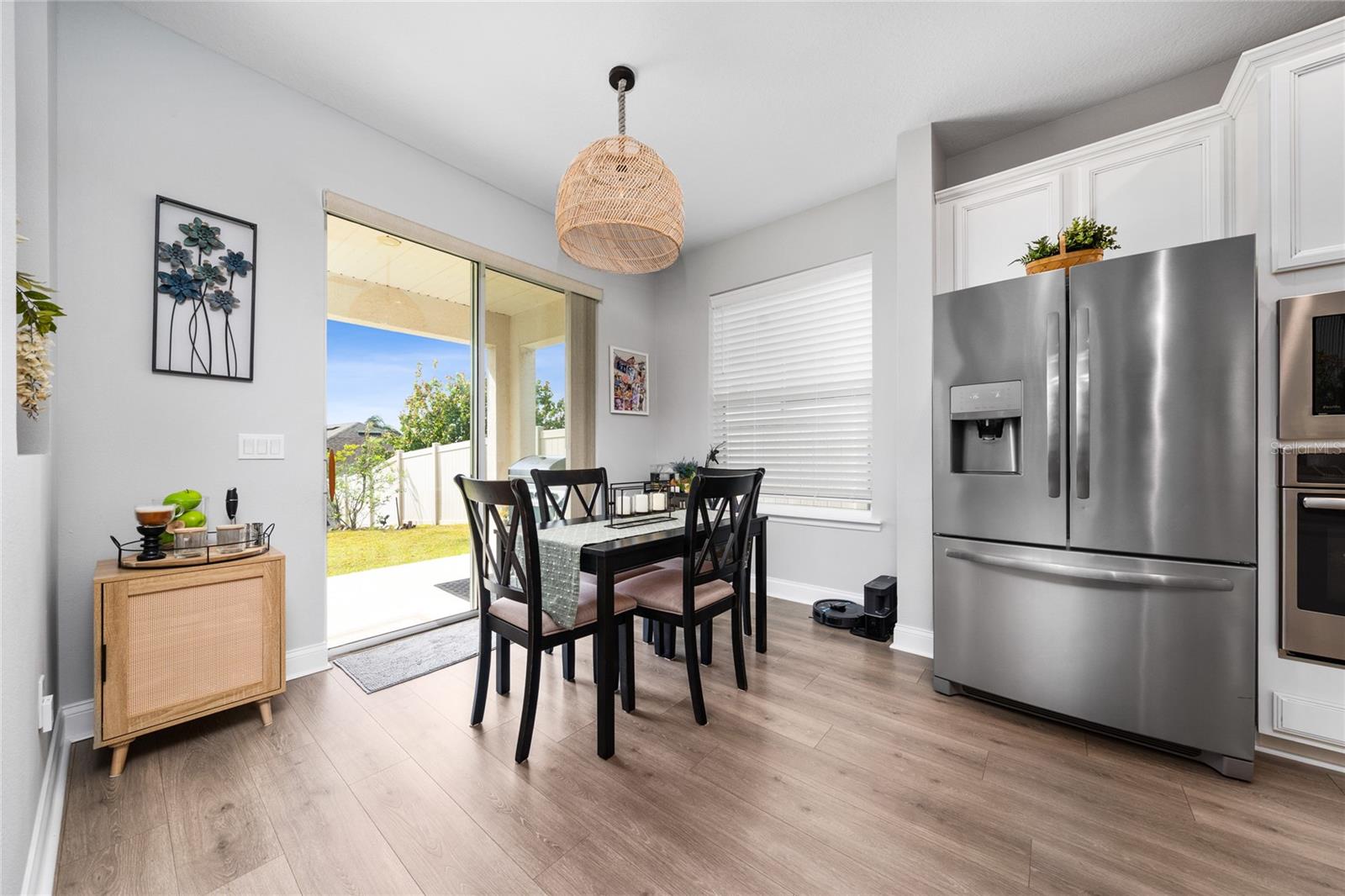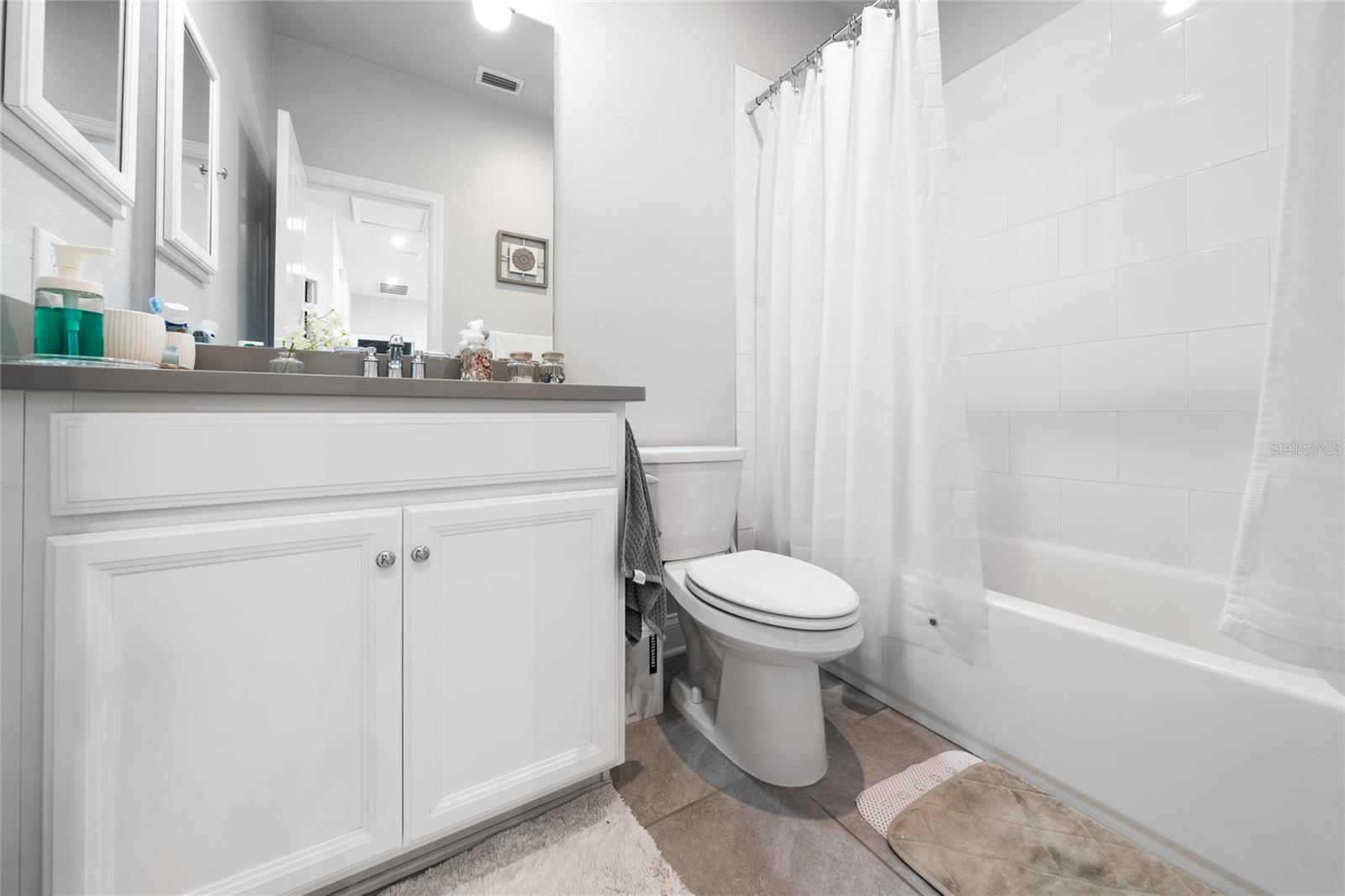 Welcome to this thoughtfully upgraded and meticulously maintained 4-bedroom, 3-bathroom home located in the highly sought-after community of John’s Lake Landing. From the moment you arrive, you’ll be captivated by the beautiful curb appeal and the inviting covered front porch — perfect for enjoying peaceful mornings or evening conversations. Step inside to a bright, open-concept floor plan featuring luxury vinyl plank flooring, soaring ceilings, and abundant natural light. The gourmet kitchen is a chef’s dream, boasting quartz countertops, subway tile backsplash, stainless steel appliances, wall oven and microwave, vented hood, glass cooktop, spacious pantry, and a large center island that offers ample prep space and seating. The kitchen flows seamlessly into the family room, which is bathed in natural light thanks to oversized windows and high ceilings — creating a warm, welcoming space ideal for entertaining. Thoughtfully designed upgrades include a stunning custom-built TV tower and beautifully tailored curtains that add a touch of elegance and coziness to the living space. Upstairs, the handcrafted staircase with stained wood handrails and spindles leads to a versatile loft area — ideal for a home office, second living room, playroom, or gym. The owner’s suite features a spacious layout with a large walk-in closet and custom organization system, dual vanities with quartz countertops, a frameless glass shower, and private water closet. Two additional bedrooms share a full bath with quartz finishes and tile surround. Downstairs, the fourth bedroom is conveniently located near a full bathroom and laundry room — perfect for guests or multigenerational living. Step outside to a fully fenced backyard, ideal for children, pets, or even the addition of a future pool. From the back of the home, you’ll enjoy breathtaking sunset views over the lake, making every evening feel special. Additional features include a whole-house water softener system, which is not included in the sale but can be assumed with the existing loan — a valuable addition for future homeowners. This home is located near top-rated schools, shopping, and dining, with easy access to the Florida Turnpike. The community also offers a resort-style pool for residents. Don’t miss your chance to own this upgraded, move-in-ready home with sunset views and thoughtful touches throughout — schedule your showing today! Washer, dryer, and water softener system do not convey.