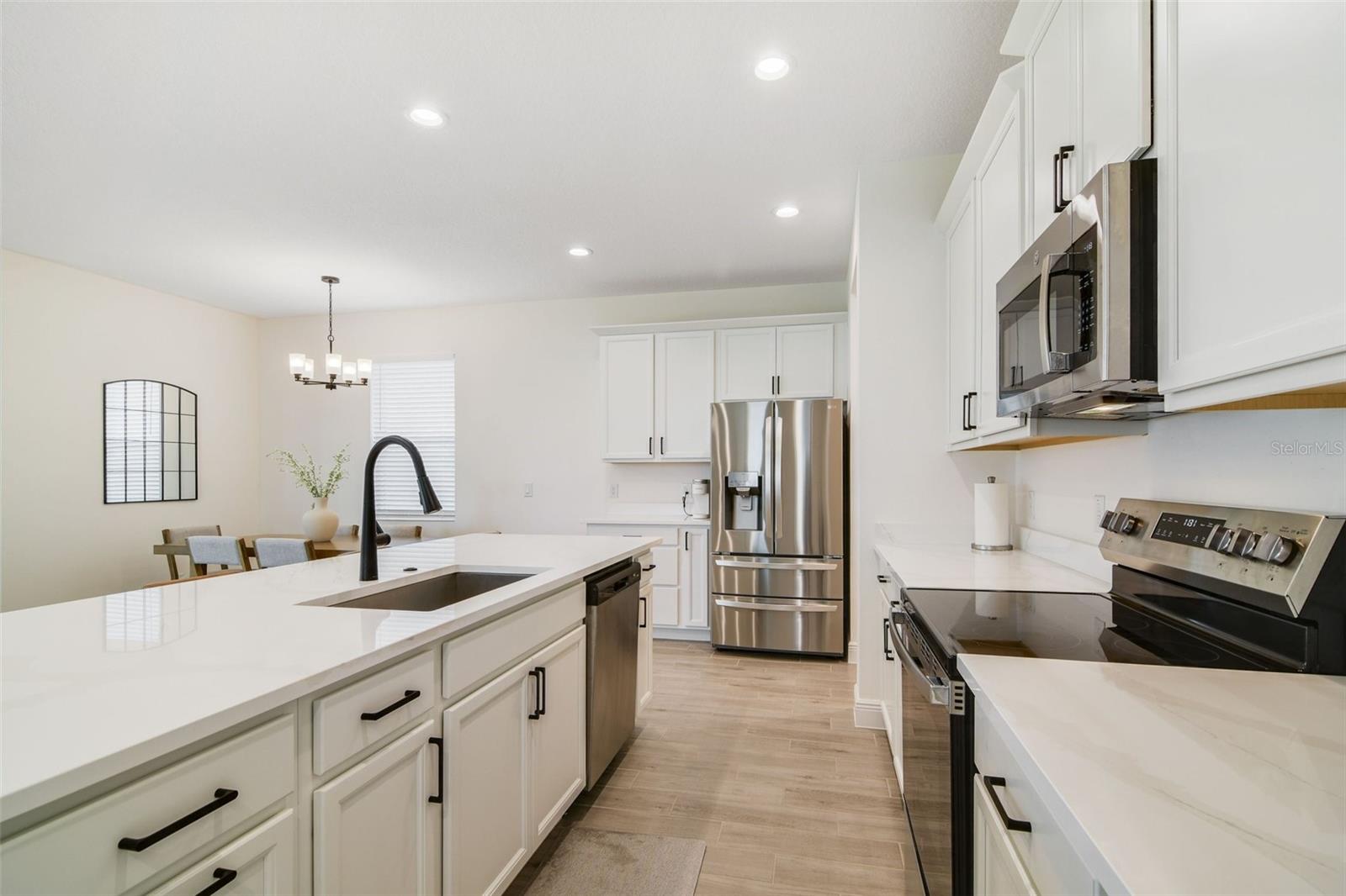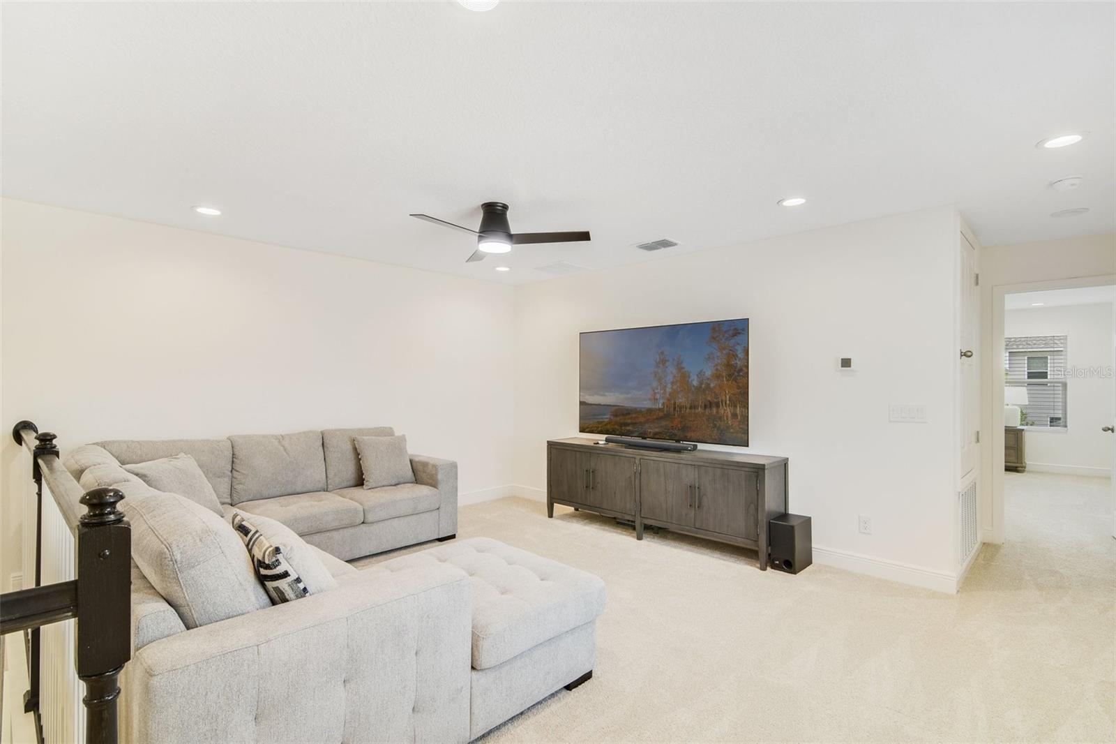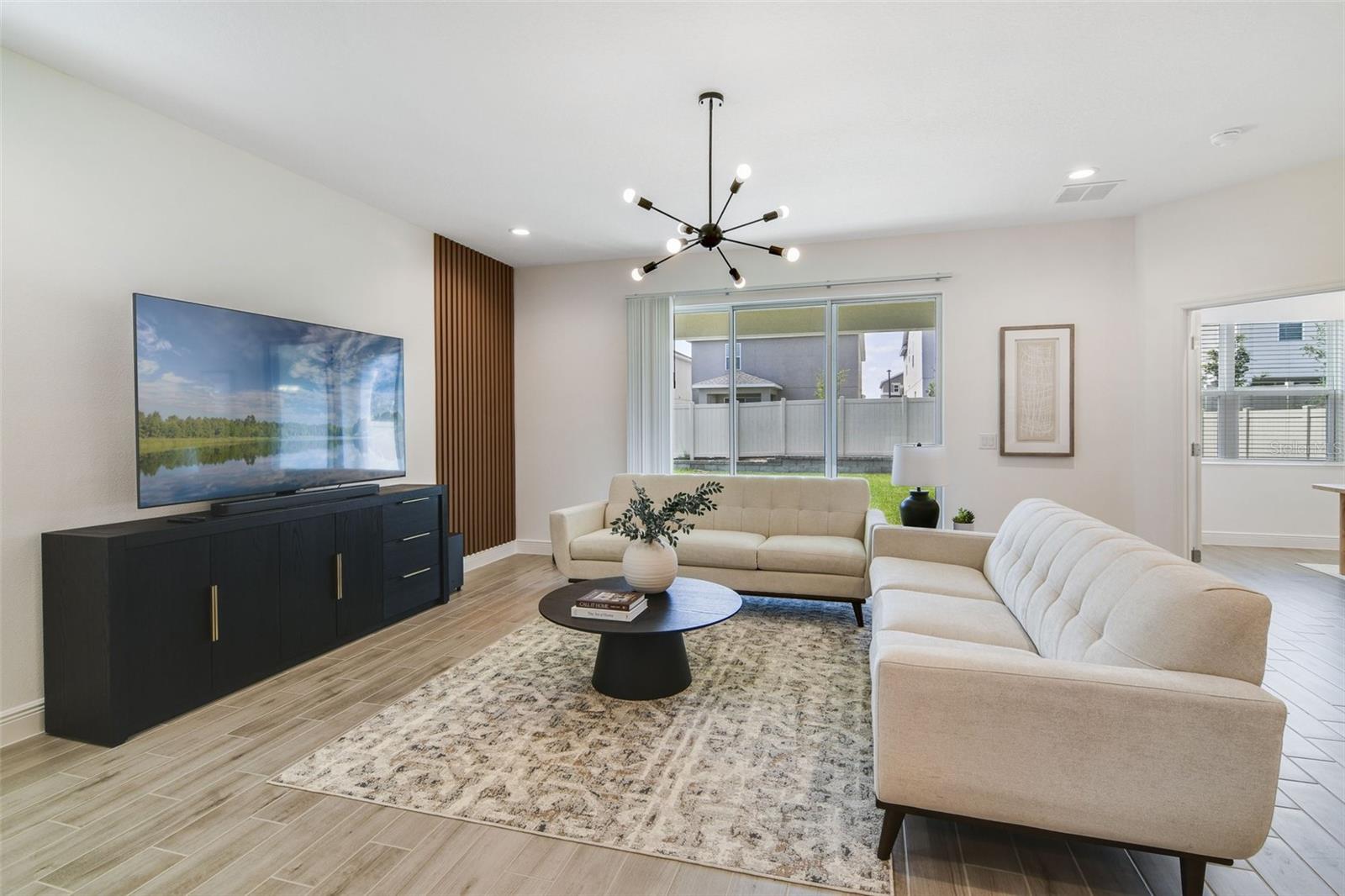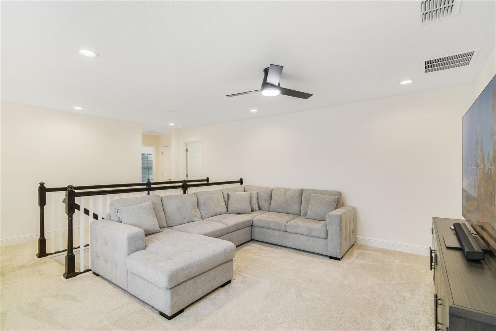 Welcome to this gorgeous and modern 4 bedroom, 2.5 bathroom home nestled in the highly desirable Ridgeview community. Situated on a spacious lot with lush landscaping and impeccable curb appeal, this home offers the perfect combination of style, comfort, and functionality. As you step inside, you’ll be greeted by elegant tile flooring that flows throughout the main living spaces, complemented by a light-filled open-concept layout that’s ideal for both everyday living and entertaining. At the heart of the home is the expansive chef’s kitchen, complete with sleek shaker-style cabinetry, quartz countertops, stainless steel appliances, and a large center island — perfect for your morning coffee or gathering with friends and family. The kitchen seamlessly overlooks the dining and living areas, creating a warm and connected atmosphere. Just off the main living area, glass doors open to a study/den — the perfect spot for a sunny home office, cozy reading nook, or creative lounge space. Upstairs, you'll find an oversized media room or sitting area, perfect for movie nights, game day, or a relaxing retreat. All four bedrooms are conveniently located upstairs, including the luxurious primary suite tucked away for ultimate privacy. This serene sanctuary features a spacious walk-in closet, a versatile sitting area ideal for a second office or private retreat, and a beautifully appointed en-suite bath with dual vanities and a walk-in shower. Three additional bedrooms offers plenty of room for family, guests, or a growing household. A second full bath ensures convenience and comfort for everyone. Step outside to the covered patio — the perfect setting for summer barbecues, quiet mornings, or evenings under the stars. The backyard offers both privacy and potential, ready to be transformed into your dream outdoor oasis. Whether it’s a garden, a play area, or a space for pets to roam, the possibilities are endless. Residents of Ridgeview enjoy access to wonderful amenities, including low HOA fees, a sparkling community pool, and a playground — ideal for weekend fun and neighborhood gatherings. Conveniently located near shopping, dining, top-rated schools, and an abundance of outdoor recreation options, this home truly captures the best of Florida living. Don’t miss your chance to own this incredible home — call today to schedule your private showing before it’s gone!