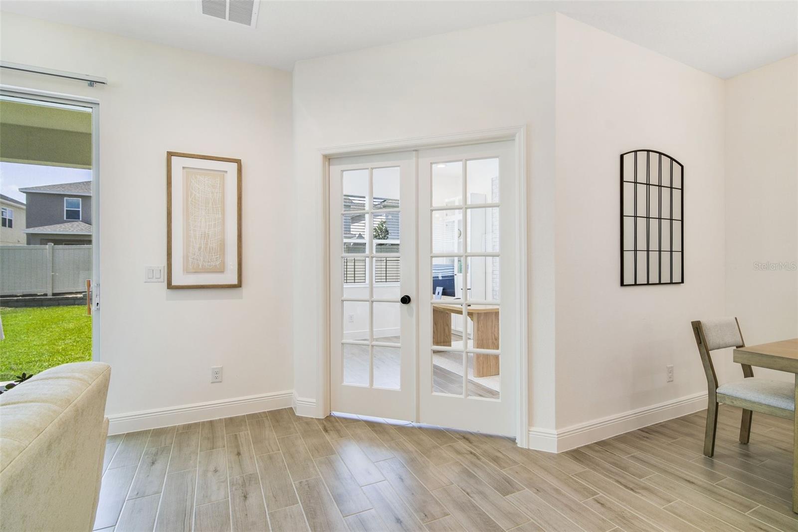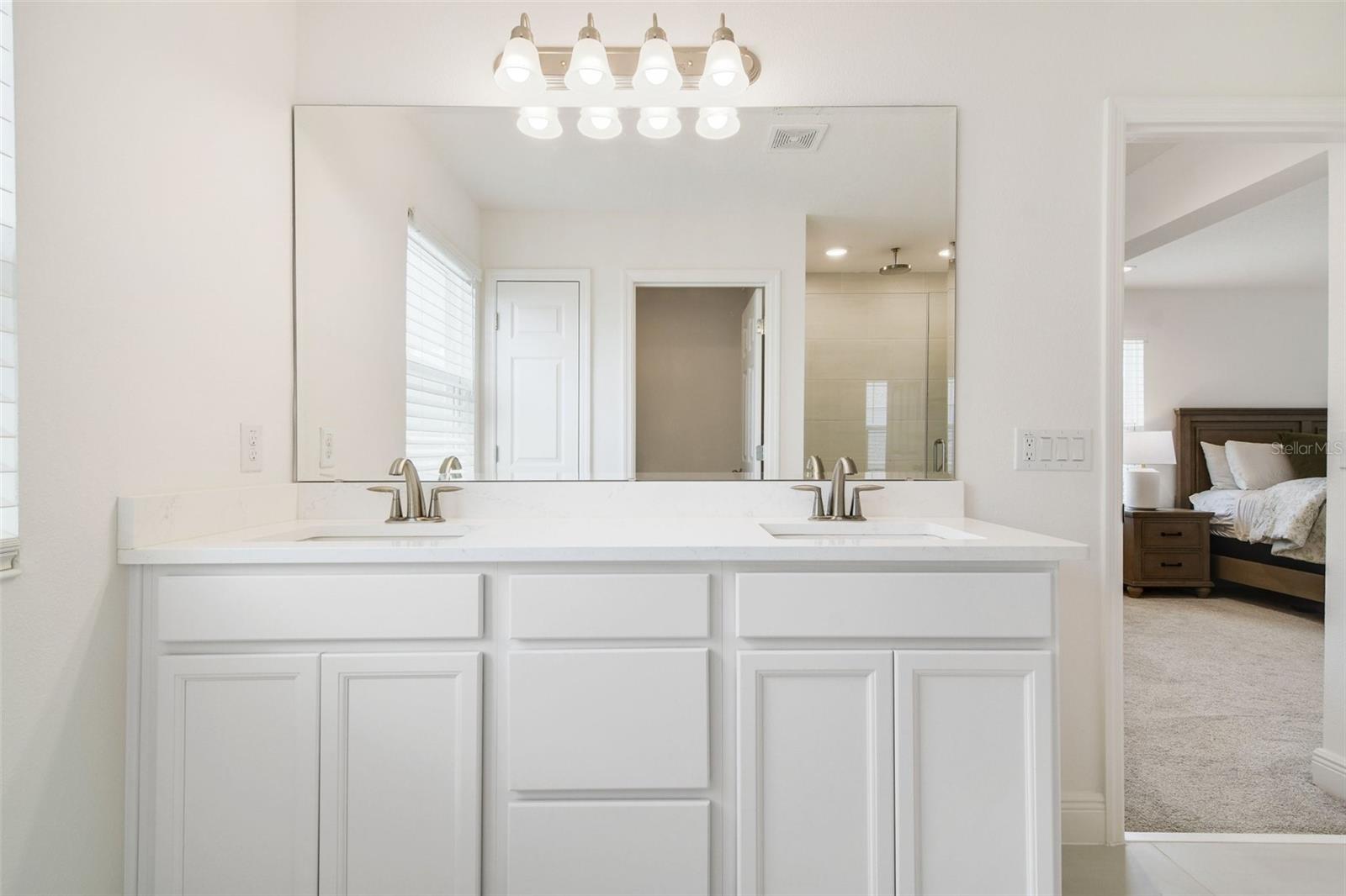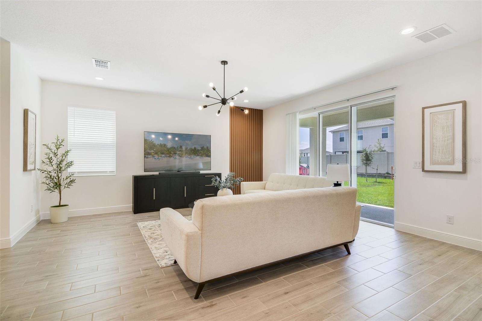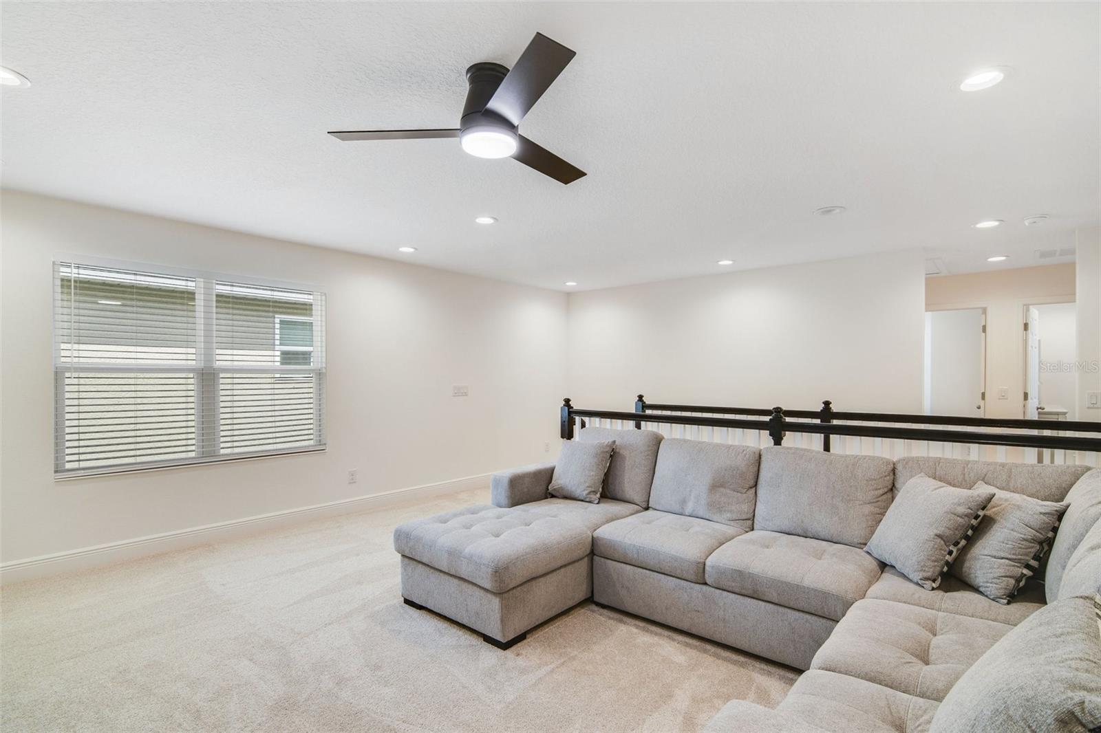 Welcome to this gorgeous and modern 4 bedroom, 2.5 bathroom home nestled in the highly desirable Ridgeview community. Situated on a spacious lot with lush landscaping and impeccable curb appeal, this home offers the perfect combination of style, comfort, and functionality. As you step inside, you’ll be greeted by elegant tile flooring that flows throughout the main living spaces, complemented by a light-filled open-concept layout that’s ideal for both everyday living and entertaining. At the heart of the home is the expansive chef’s kitchen, complete with sleek shaker-style cabinetry, quartz countertops, stainless steel appliances, and a large center island — perfect for your morning coffee or gathering with friends and family. The kitchen seamlessly overlooks the dining and living areas, creating a warm and connected atmosphere. Just off the main living area, glass doors open to a study/den — the perfect spot for a sunny home office, cozy reading nook, or creative lounge space. Upstairs, you'll find an oversized media room or sitting area, perfect for movie nights, game day, or a relaxing retreat. All four bedrooms are conveniently located upstairs, including the luxurious primary suite tucked away for ultimate privacy. This serene sanctuary features a spacious walk-in closet, a versatile sitting area ideal for a second office or private retreat, and a beautifully appointed en-suite bath with dual vanities and a walk-in shower. Three additional bedrooms offers plenty of room for family, guests, or a growing household. A second full bath ensures convenience and comfort for everyone. Step outside to the covered patio — the perfect setting for summer barbecues, quiet mornings, or evenings under the stars. The backyard offers both privacy and potential, ready to be transformed into your dream outdoor oasis. Whether it’s a garden, a play area, or a space for pets to roam, the possibilities are endless. Residents of Ridgeview enjoy access to wonderful amenities, including low HOA fees, a sparkling community pool, and a playground — ideal for weekend fun and neighborhood gatherings. Conveniently located near shopping, dining, top-rated schools, and an abundance of outdoor recreation options, this home truly captures the best of Florida living. Don’t miss your chance to own this incredible home — call today to schedule your private showing before it’s gone!