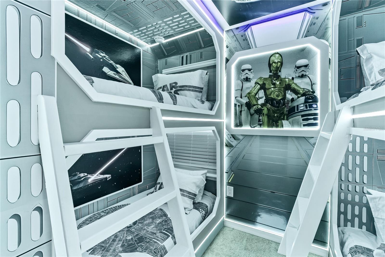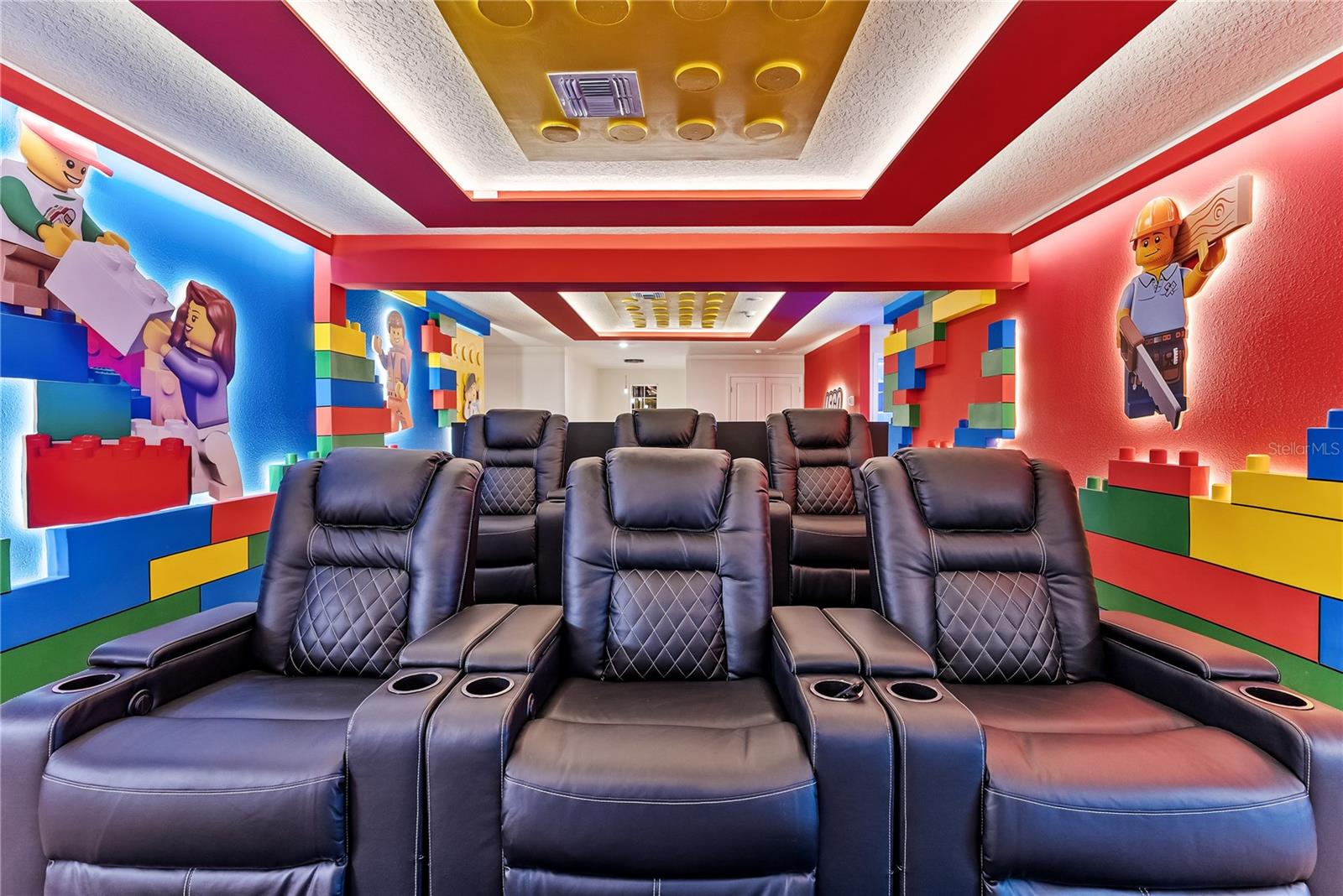 Spectacular fully furnished 8-bedroom, 6-bathroom home located in the desirable Windsor Cay community. Designed with space, comfort, and functionality in mind, this property features a spacious open-concept layout ideal for hosting large groups and spending time with family and friends. The main living area includes custom built-in cabinetry, a large and inviting seating arrangement, and a seamless connection to the dining and kitchen areas. The kitchen and dining spaces flow naturally into the main living area, creating a practical and welcoming environment for gatherings. The layout was thoughtfully planned to balance comfort and entertainment, making the home suitable for both personal use and guest stays. The property includes a combination of themed and traditional bedrooms, adding versatility and broad appeal. Themed rooms include Harry Potter, Star Wars, Minions, and Frozen, creating a fun and immersive experience for guests of all ages, while the traditional bedrooms provide a calm and comfortable retreat. In addition, the home features a LEGO-themed loft that functions as an extra hangout and play area, adding flexibility beyond the bedrooms. The property also includes a Mario-themed game room, creating a dedicated entertainment space that complements the overall layout. Outdoor living features a private pool and patio area, ideal for relaxing and enjoying Florida’s year-round weather. This home works well for short-term rental use, personal vacation use, or a combination of both. The property is turnkey, fully furnished, and ready to enjoy.