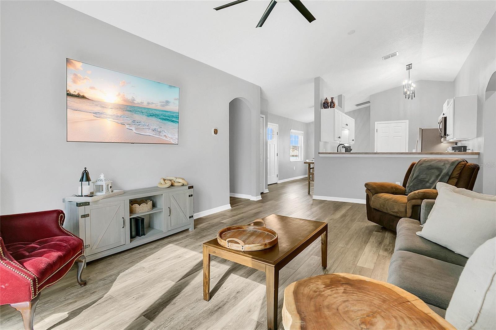 Welcome home to this beautifully maintained 3-bedroom, 2-bathroom residence located in the heart of Clermont. This inviting single-story home offers excellent curb appeal with a clean exterior, lush landscaping, and a welcoming front entry. Inside, enjoy a bright and open floor plan featuring neutral tones, wood-look flooring, and abundant natural light throughout. The spacious living and dining areas flow seamlessly, making the home ideal for both everyday living and entertaining. The kitchen opens to the main living space and is complemented by new appliances installed in 2024, along with ample cabinetry and counter space. The primary suite provides a comfortable retreat with an en-suite bathroom, while two additional bedrooms offer flexibility for guests, a home office, or hobbies. Notable upgrades include all windows and the sliding glass door replaced in 2023 with a transferable warranty, providing peace of mind and energy efficiency. The fully air-conditioned garage adds exceptional versatility—perfect for a workshop, home gym, or climate-controlled storage. Step outside to enjoy the peaceful backyard on nearly ¼ acre, ideal for relaxing, gardening, or outdoor gatherings. Conveniently located near shopping, dining, schools, and major roadways, this move-in-ready home combines comfort, functionality, and an excellent location. Don’t miss your opportunity to own in desirable Clermont!