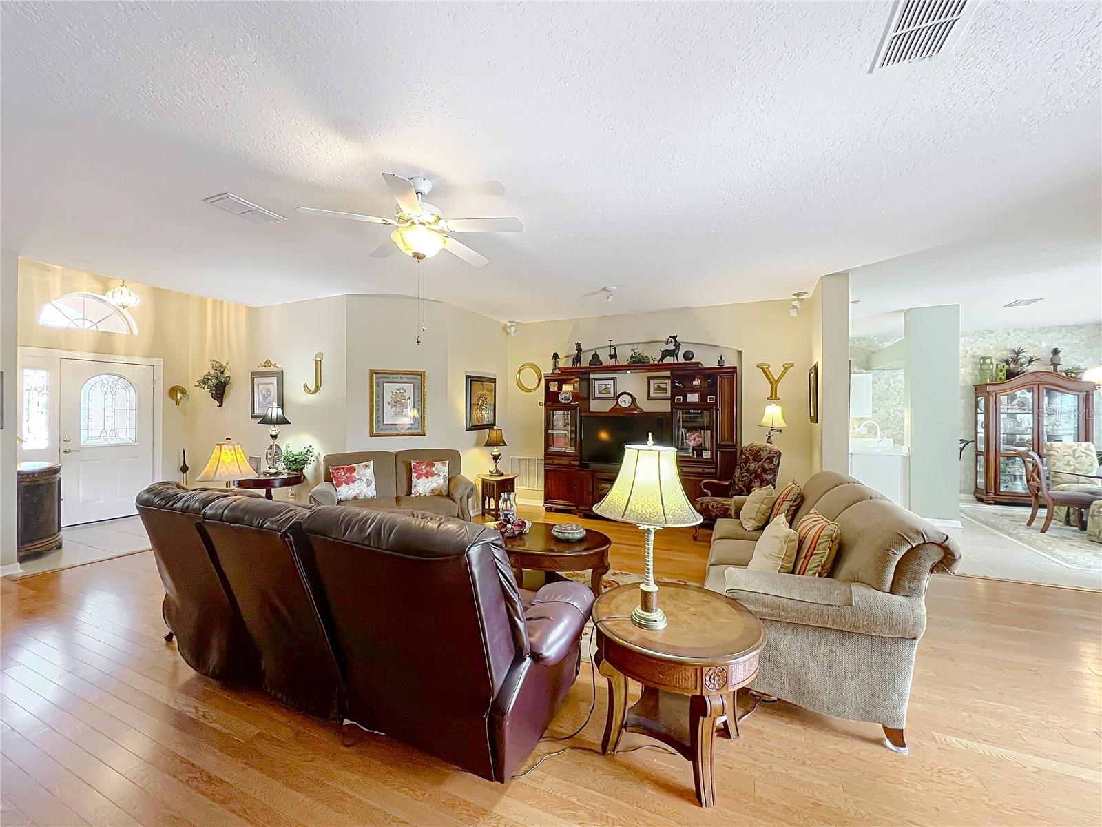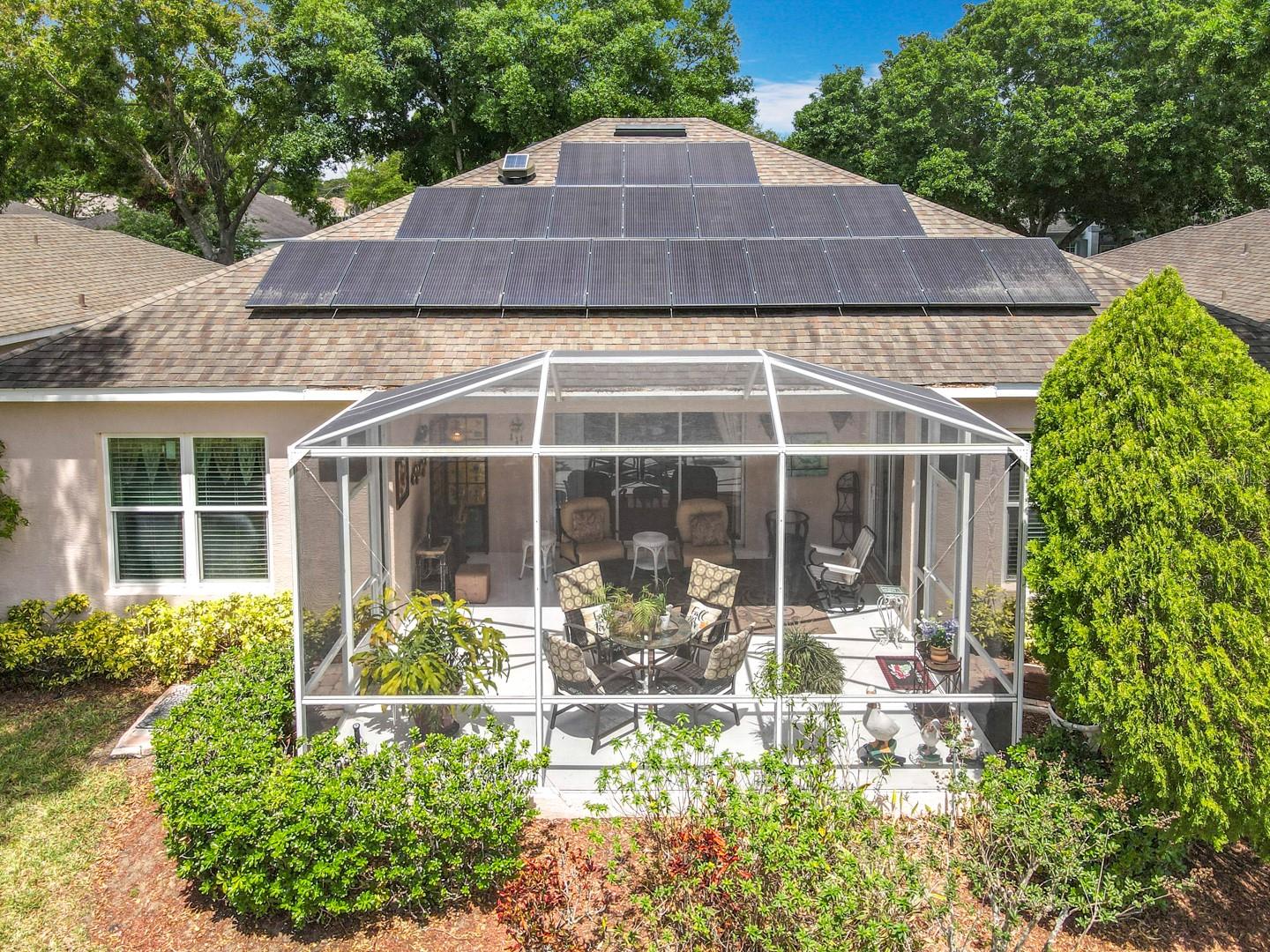 One or more photo(s) has been virtually staged. Experience the Royal Lifestyle at Kings Ridge! Nestled in the prestigious 55+ Kings Ridge community, this stunning home is perfectly situated on the 7th hole of the golf course, offering breathtaking views and a serene setting. Save on your electric bill with the paid off Solar that was installed 2019 - Electric bill less than $100 on avg per month. Water heater connected to solar & heat exchange keeps garage cool. New HVAC 2021, Lanai re-screened and painted 2024. New Windows 2020, New roof 2017. Wake up to picturesque golf course views and enjoy the convenience of a golf cart-friendly community, allowing you to easily access Kings Ridge Plaza for grocery shopping, banking, dining, and more—all just minutes from your doorstep. low-maintenance lifestyle is made effortless with monthly HOA fees covering lawn care, including shrub trimming, irrigation system maintenance and water, high-speed fiber optic cable, internet and home phone, road maintenance, and exterior home painting every six years! Enjoy resort-style living with exclusive access to a multi-million-dollar clubhouse featuring three heated pools, spas, tennis and pickleball courts, billiards, shuffleboard, live entertainment, Bingo, and countless social clubs—all designed to keep you engaged and entertained. Live the luxury, comfort, and convenience you deserve at Kings Ridge.