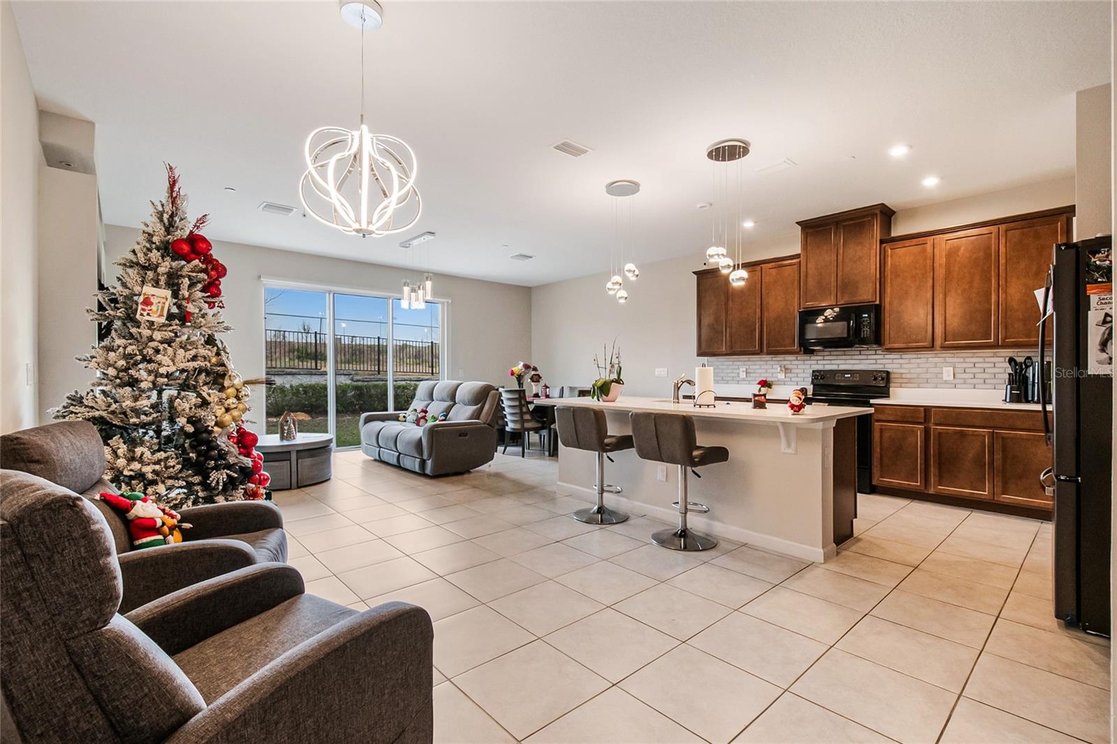 Modern, comfortable, and almost-new (built in 2022) townhome in Holden Ridge! Enjoy an open-concept first floor where the living room, dining area, kitchen, and covered patio flow together—perfect for entertaining. Stylish lighting, tall cabinetry, and a bright, spacious layout create an elegant feel. A versatile flex space on the main level is ideal for an office, study, or game room. Upstairs features generously sized bedrooms for privacy and comfort. HOA covers exterior maintenance including landscaping and roof (HOA/community guidelines). Convenient to shopping, dining, and medical services. Highly rated schools nearby, and a high school is located right next door. Community amenities include a pool and a peaceful lake area just steps away—great for relaxing and enjoying the natural setting