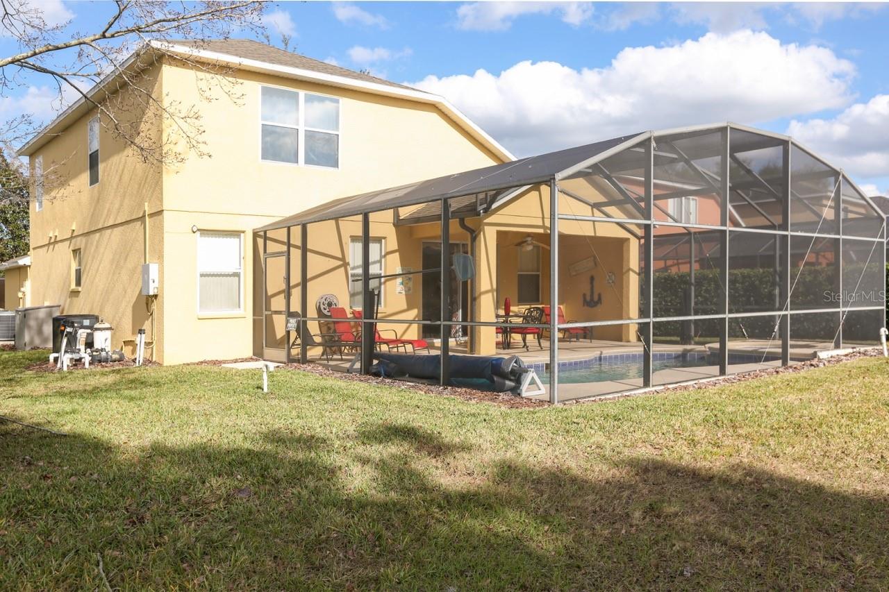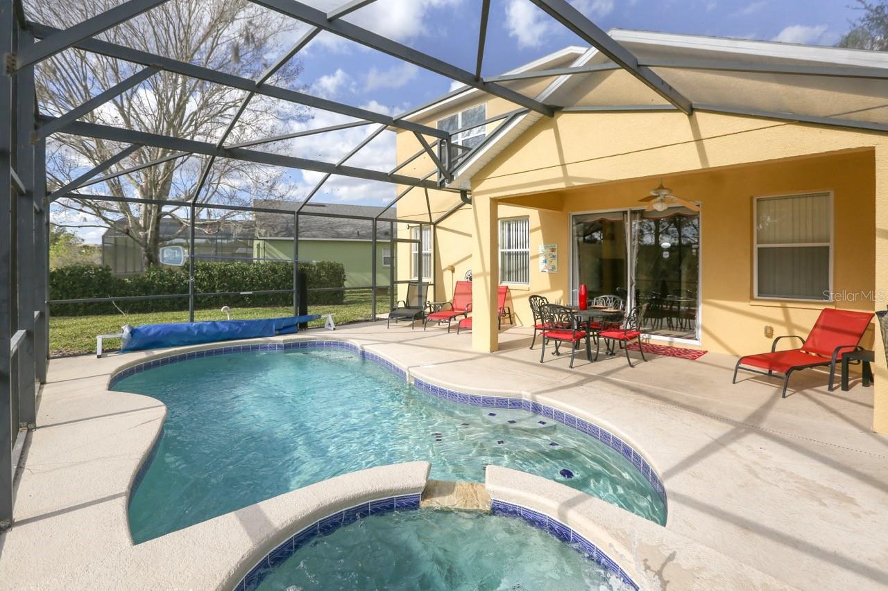 Beautifully upgraded and meticulously maintained, this 4-bedroom, 2.5-bath home is located in the highly desirable Silver Creek community in Clermont. Conveniently situated near Highway 27, the property offers easy access to shopping, dining, Walmart, and everyday amenities, with a short drive to Walt Disney World and Central Florida attractions. The thoughtfully designed floor plan features a fully equipped kitchen with granite countertops, breakfast nook, utility room, and direct access to the indoor double garage. The spacious open-concept dining and family room flows seamlessly to oversized sliding doors leading to a private covered lanai, south-facing pool, and conservation views. The pool area includes an electric bubble spa and overlooks a tranquil lakeside setting, perfect for relaxing, enjoying Florida sunsets, and observing local wildlife. The first-floor primary suite offers a king bedroom with an en-suite bath featuring a Roman tub and separate shower. A convenient half bath is also located on the first floor. The double garage is currently utilized as a games room, and the washer and dryer are housed in the first-floor utility room. Upstairs, a galleried landing leads to three additional bedrooms—two queen bedrooms and one twin bedroom—along with a spacious family bathroom featuring a shower-over-tub and large vanity. Ideal as a primary residence, second home, or short-term rental investment, this property offers comfort, functionality, and an exceptional location. The home has been a very successful short term rental and bookings can convey if required. HOA Fees include Cable, Internet, Landscaping, and Painting of the outside of the home every 5 - 7 years. Roof replaced 2021, Water Heater replaced 2024, AC replaced 2021, All new appliances 2020, Pool heater compressor and control board replaced 2024.