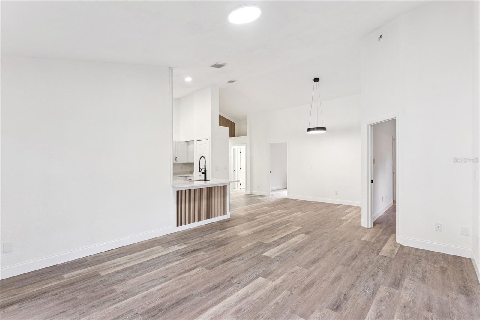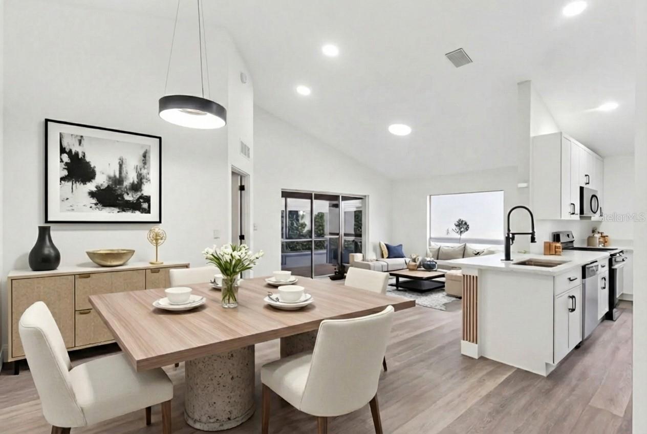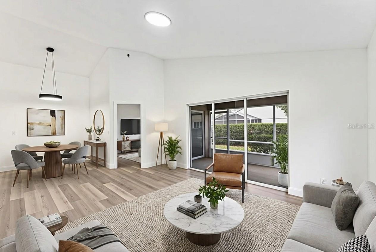 One or more photo(s) has been virtually staged. Welcome to 3656 Eversholt St located in the highly sought-after Kings Ridge guard-gated 55+ golf course community, where resort-style living meets low-maintenance convenience. Kings Ridge is known for its vibrant, active lifestyle and exceptional amenities, including two clubhouses, two championship golf courses, heated community pools, fitness centers, tennis and pickleball courts, bocce, shuffleboard, saunas, hot tubs, and a full calendar of social activities. Residents enjoy scenic walking paths with beautiful views, golf cart-friendly streets, and even the ability to take your golf cart to the nearby Publix. All of this is just minutes from shopping, dining, and medical facilities along US-27. The HOA covers lawn care, exterior paint, cable, internet, phone service, community pools, and all amenities, allowing for truly carefree living. This fully renovated 3-bedroom, 2-bathroom home offers peace of mind and modern comfort with, new AC system, new ductwork, and energy-efficient ceiling fans with remotes in every bedroom. Both bathrooms have also been completely re-plumbed. As you enter the home, you are immediately greeted by soaring 14-foot ceilings that create a bright, open, and airy feel. The foyer makes a striking first impression with a custom wood slat architectural panel, adding warmth and contemporary character the moment you step inside. The open floor plan is enhanced by modern recessed lighting and a stylish contemporary light fixture, perfectly blending function and design. The fully renovated kitchen is both elegant and practical, featuring quartz countertops throughout the entire home, stainless steel appliances, and ample cabinetry for storage and entertaining. Luxury vinyl waterproof flooring flows seamlessly throughout the entire property, adding durability and modern appeal. Every bedroom and bathroom has been beautifully updated, all showcasing quartz countertops. The guest bathroom features a tub-shower combination with floor-to-ceiling marble-look tile, a modern matte black rain shower head, and updated fixtures for a spa-like feel. The living room opens through sliding glass doors to a spacious, covered Florida lanai sunroom with cement flooring, the perfect place to relax, entertain, or enjoy peaceful Florida evenings year-round. This is not just a luxury home—it’s an opportunity to embrace an active, social, resort-style lifestyle in one of Clermont’s most desirable senior communities. Rarely does a home combine extensive upgrades, modern design, golf course community living, and true maintenance-free convenience like this one.