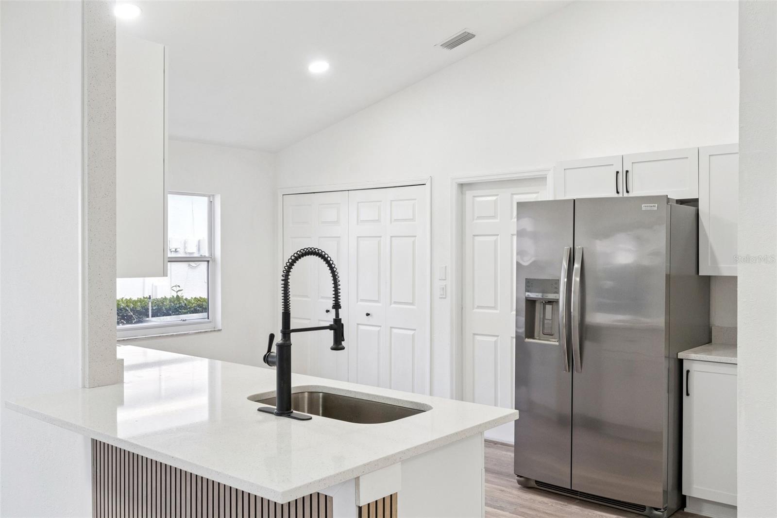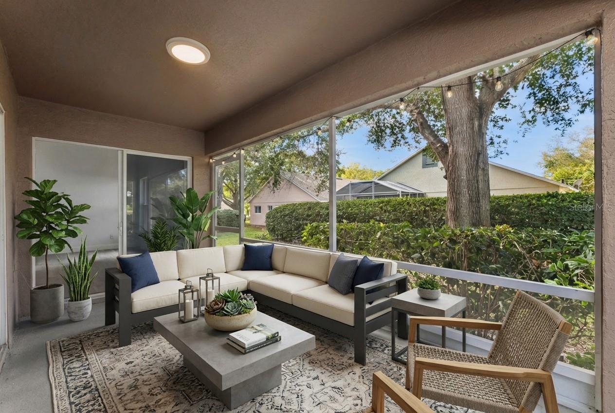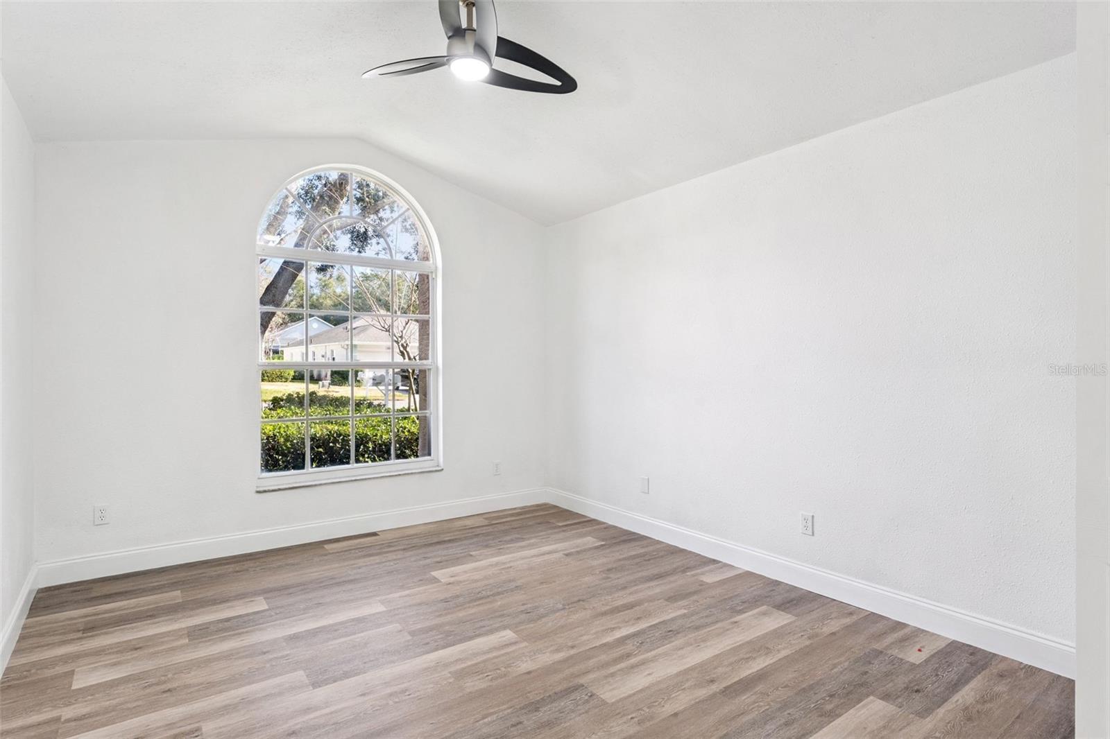 One or more photo(s) has been virtually staged. Welcome to 3656 Eversholt St located in the highly sought-after Kings Ridge guard-gated 55+ golf course community, where resort-style living meets low-maintenance convenience. Kings Ridge is known for its vibrant, active lifestyle and exceptional amenities, including two clubhouses, two championship golf courses, heated community pools, fitness centers, tennis and pickleball courts, bocce, shuffleboard, saunas, hot tubs, and a full calendar of social activities. Residents enjoy scenic walking paths with beautiful views, golf cart-friendly streets, and even the ability to take your golf cart to the nearby Publix. All of this is just minutes from shopping, dining, and medical facilities along US-27. The HOA covers lawn care, exterior paint, cable, internet, phone service, community pools, and all amenities, allowing for truly carefree living. This fully renovated 3-bedroom, 2-bathroom home offers peace of mind and modern comfort with, new AC system, new ductwork, and energy-efficient ceiling fans with remotes in every bedroom. Both bathrooms have also been completely re-plumbed. As you enter the home, you are immediately greeted by soaring 14-foot ceilings that create a bright, open, and airy feel. The foyer makes a striking first impression with a custom wood slat architectural panel, adding warmth and contemporary character the moment you step inside. The open floor plan is enhanced by modern recessed lighting and a stylish contemporary light fixture, perfectly blending function and design. The fully renovated kitchen is both elegant and practical, featuring quartz countertops throughout the entire home, stainless steel appliances, and ample cabinetry for storage and entertaining. Luxury vinyl waterproof flooring flows seamlessly throughout the entire property, adding durability and modern appeal. Every bedroom and bathroom has been beautifully updated, all showcasing quartz countertops. The guest bathroom features a tub-shower combination with floor-to-ceiling marble-look tile, a modern matte black rain shower head, and updated fixtures for a spa-like feel. The living room opens through sliding glass doors to a spacious, covered Florida lanai sunroom with cement flooring, the perfect place to relax, entertain, or enjoy peaceful Florida evenings year-round. This is not just a luxury home—it’s an opportunity to embrace an active, social, resort-style lifestyle in one of Clermont’s most desirable senior communities. Rarely does a home combine extensive upgrades, modern design, golf course community living, and true maintenance-free convenience like this one.