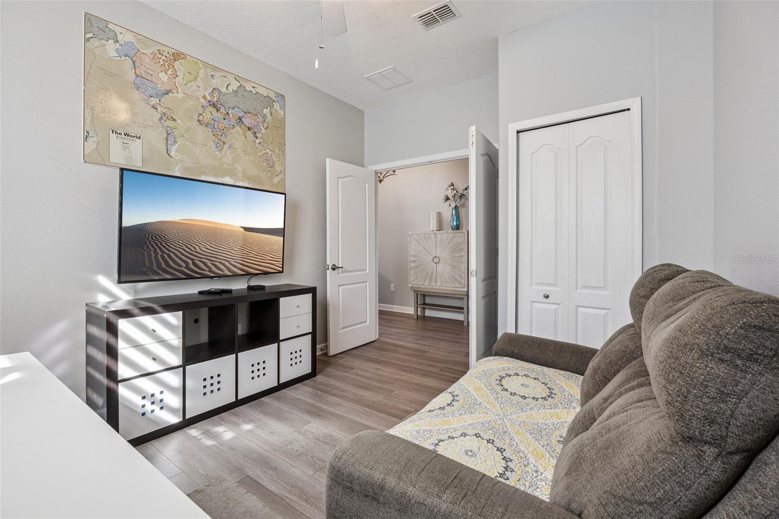Welcome to Heritage Hills a sought after 55 plus community! This popular Bonita model is available fully furnished!! So much to love about this home! NEW ROOF in 2024!! Great floor plan with 3 bedroom and 2 bathrooms! No rear neighbors! Upon entering you will notice the expanded pavered walkway to the front door and the beautiful beveled glass door. One bedroom and bathroom is located by the front of the home with a built in Murphy bed! As you continue down the foyer you will notice another bedroom/office on the right with double doors! The kitchen, family room and dining room reflects the open floor plan which allows for a perfect place to entertain. The triple sliding doors open up to the screened lanai with stamped concrete flooring. The tray ceiling and custom built in shelving in the family room is extra special! The primary bedroom suite features a sliding door to the screened lanai, 2 walk in closets, garden tub, walk in shower and 2 vanities! All the custom drapes and blinds stay! All appliances stay including the washer, dryer and refrigerator in the garage. The landscaping is upgraded with landscaping curbing and the driveway pavers have been sealed. Irrigation system recently upgraded. You will love the luxury vinyl flooring throughout the home! Gutters in the front and back of the home, custom counter top in the kitchen matches the table, alarm and automation system and more upgrades! You will enjoy this quiet neighborhood! Heritage Hills amenities include a heated pool and spa, pickle ball, tennis, basketball, bocce ball, shuffleboard, clubhouse with planned activities, lots of clubs to join, fitness center, art and crafts room, billiard room, card room and ballroom for holding events. Exterior is painted every 6 years, Spectrum cable and high speed internet and yard maintenance is included in the HOA fee! There is a 5 mile walking trail around the community. Call today for your private showing!
