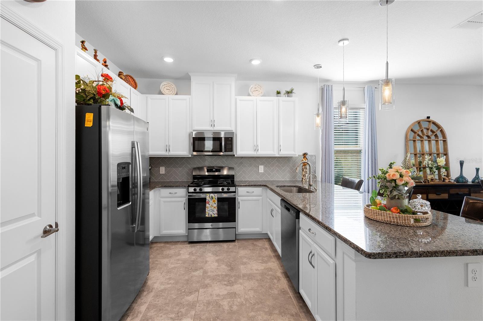 Beautiful and spacious 4-bedroom, 2.5-bath single-family home offering 2,470 sq ft of modern living, built in 2022 and thoughtfully upgraded throughout. This move-in-ready home features high ceilings, an open and airy floor plan, and generously sized bedrooms. The fully equipped kitchen includes modern appliances and a water filtration system, perfect for everyday living and entertaining. Additional highlights include a water softener, laundry room with washer and dryer, and window treatments throughout the entire home. Enjoy outdoor living on the covered back porch, ideal for relaxing in a peaceful setting. The 2-car garage is upgraded with a utility sink and cabinetry, providing extra storage and functionality. Located in the beautiful and serene gated Crestview community in Clermont, Florida, this home offers both comfort and convenience. Close to highly rated schools, shopping, dining, and major roadways. Furniture can be included, making this an excellent turnkey opportunity. Amenities include: Gated entrance, resort-style pool and playground. A wonderful chance to own a modern home in a desirable location - schedule your private showing today!