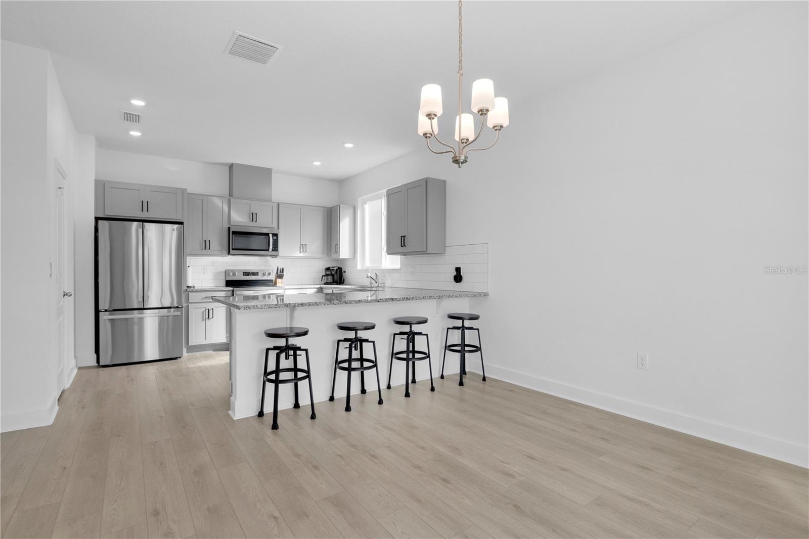 Don't wait 6 months to build a new construction. This 4-bed 2.5-bath move-in-ready home on a beautiful CONSERVATION LOT and is still under the FULL BUILDER WARRANTY. This spacious, newly built 2025 modern style home comes full of UPGRADES including a WATER SOFTENER, HIGH 9' CEILINGS, LARGE PENINSULA GRANITE COUNTER SPACE, and LPV FLOORING. The OPEN CONCEPT makes it easy to feel every bit of this 2,343 sqft home. With it's luxurious modern design, you will see how bright and welcoming this property feels. This has a downstairs laundry room, a LARGE LIVING ROOM and a COVERED LANAI ready to welcome guests for a relaxing evening. Upstairs are 3 of the 4 bedrooms, including the master suite, which has a GARDEN TUB and a WALK-IN CLOSET. Residents can enjoy amenities such as a COMMUNITY POOL, CLUBHOUSE, FITNESS CENTER, and a WALKING TRAIL with Publix just outside the neighborhood and plenty of shopping, dining, and entertainment in the surrounding area. Soon there will be an access road that connects Hwy 27 to Avalon which will provide quick access to Disney.