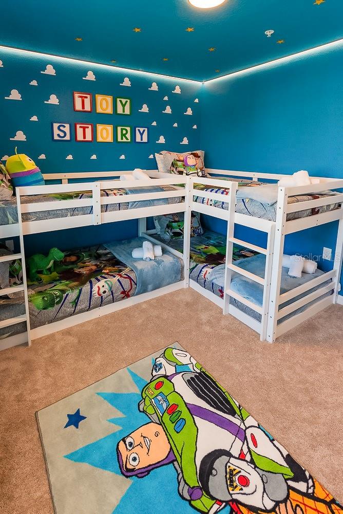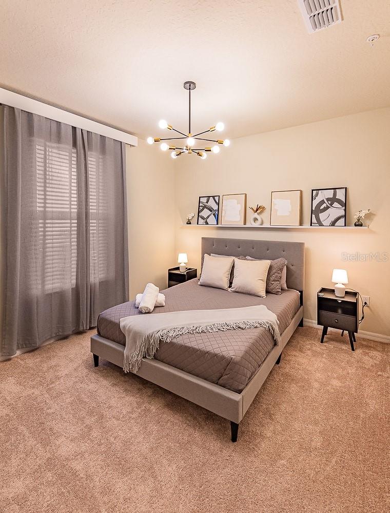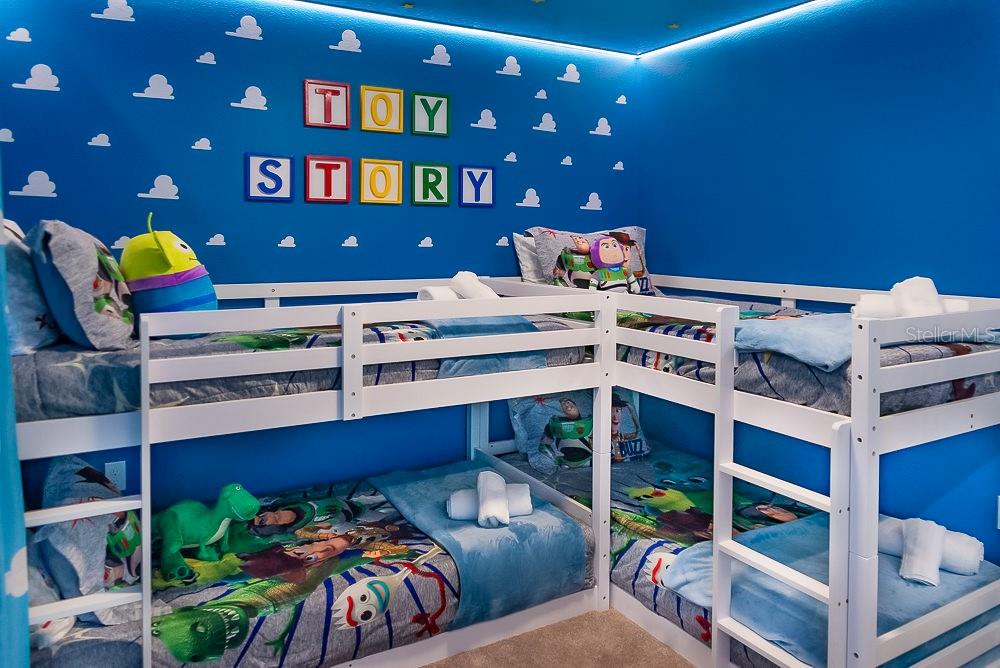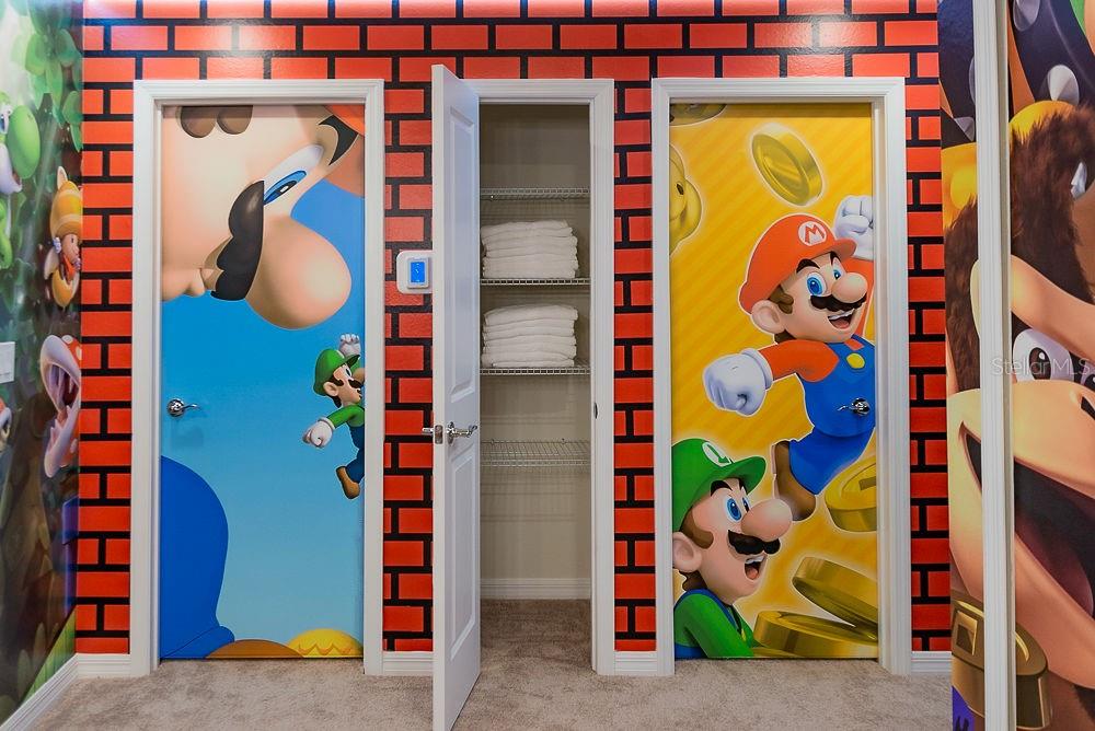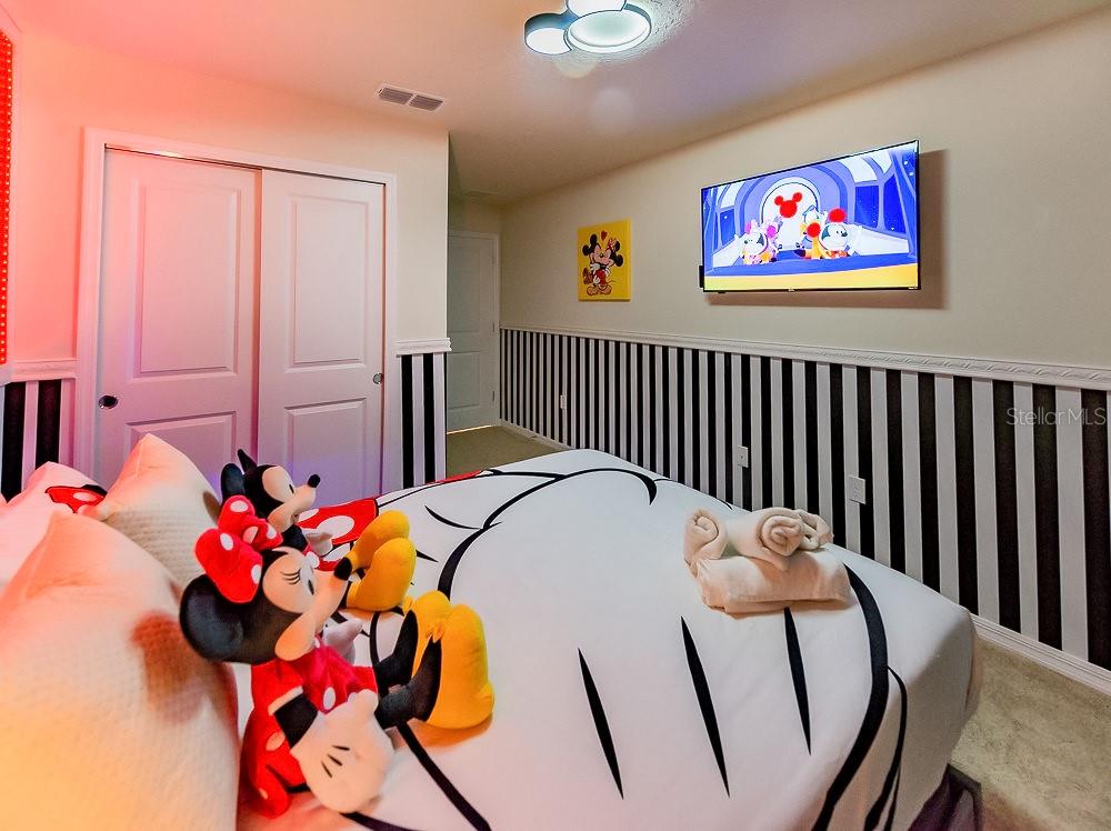 LOCATION, LOCATION, LOCATION! This unique townhouse won't last long on the market. Located just a few hundred yards from the Clubhouse and near a Walmart Supercenter, hundreds of restaurants, shopping centers, and several outlets, it's strategically positioned near major highways—minutes away from Disney and other world-renowned attractions.Strategically designed to accommodate up to 14 people, this property's profitability rivals bigger homes that cost hundreds of thousands more, making it an exceptional short-term rental investment or the perfect personal vacation home. The original dryer has been replaced with a larger, more efficient model to better serve bigger groups.The house has been professionally decorated by the best in the short-term rental industry, creating a one-of-a-kind home that's plug-and-play and ready to book guests from day one. Every piece of furniture was hand-picked to complement the home's style while ensuring durability and affordability for eventual repairs or replacements.With two luxurious suites, a restroom near the private heated pool, and a bedroom next to a bathroom on the first floor for guests who prefer avoiding stairs, this home satisfies the entire family. The designers incorporated cutting-edge technology upgrades: the pool heating system is controlled remotely, the front door operates with remotely generated codes, and five closets with electronic locks (all featuring fingerprint access) store extra supplies and linens for seamless back-to-back reservations.Three themed bedrooms and a Super Mario-themed loft with arcade games and entertainment will keep everyone engaged for days. No one will want to leave this house.