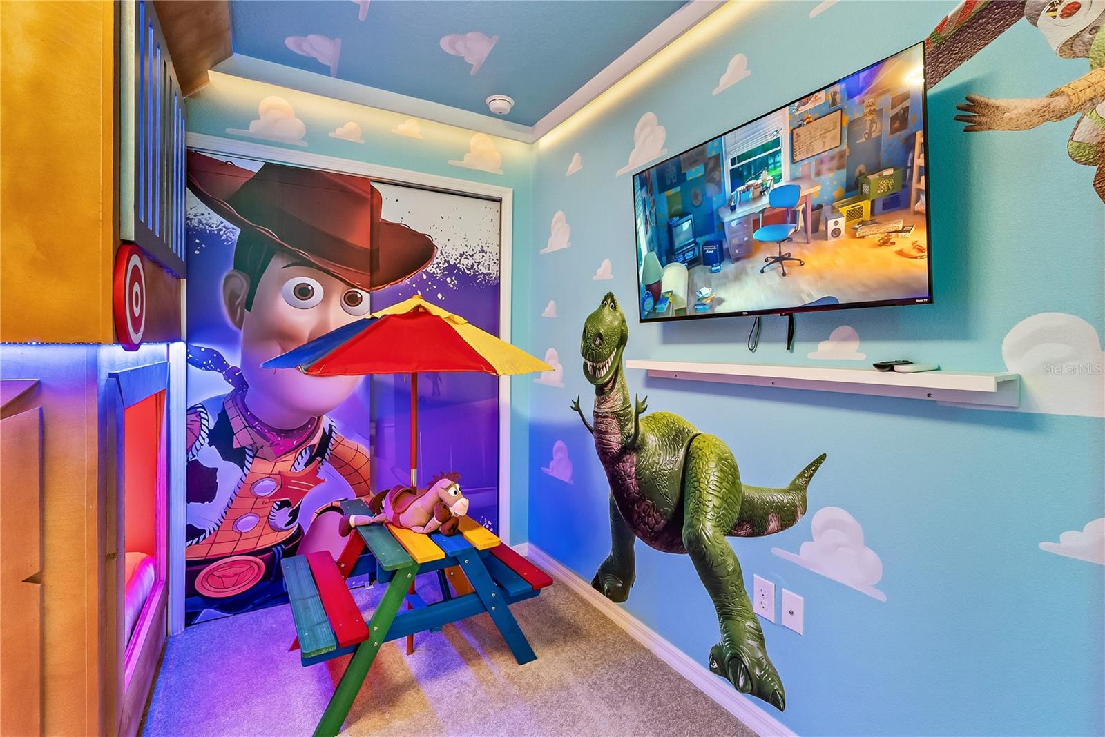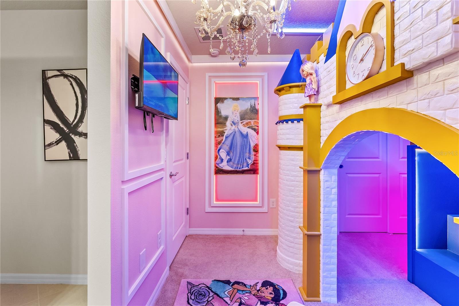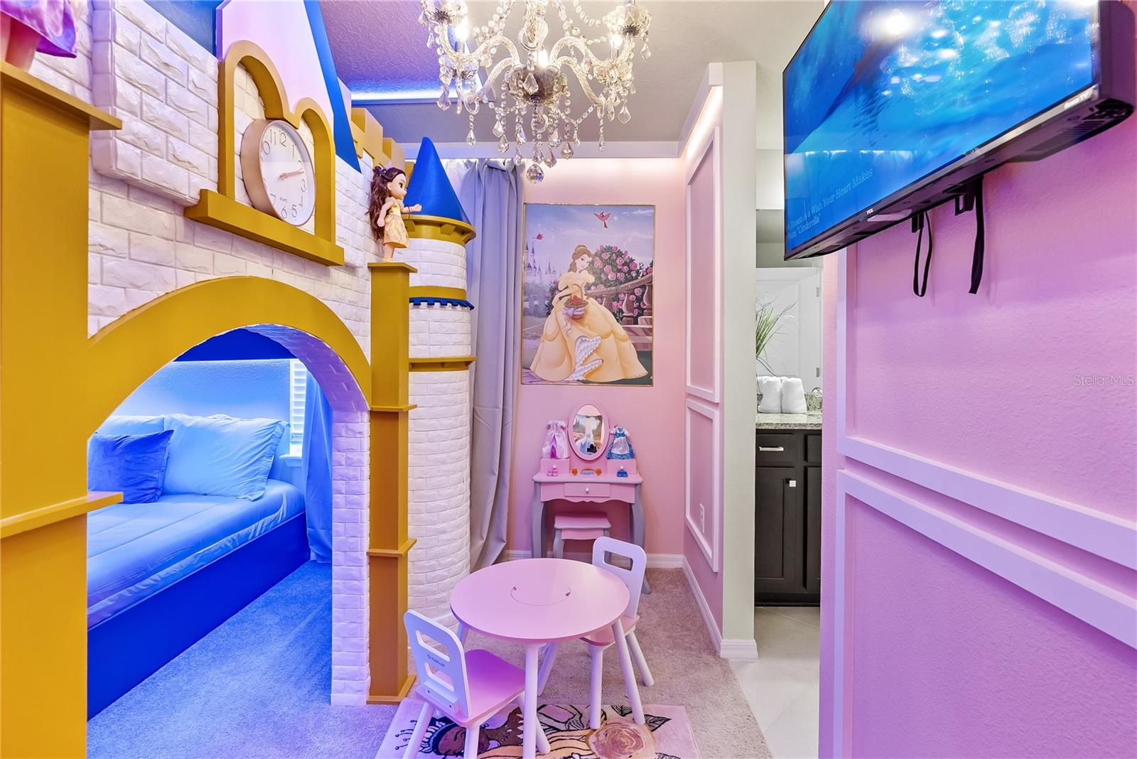 Exceptional 8-bedroom pool home located in the highly desirable Windsor Cay Resort community. This spacious, well-designed property offers an ideal combination of comfort, functionality, and strong short-term rental potential. The home features an impeccable open-concept living and dining area, perfect for entertaining and accommodating large groups. The floor plan is thoughtfully designed with generous living space throughout. The property includes a mix of traditional bedrooms and themed rooms, creating a unique and memorable experience for guests. The first floor offers two bedrooms, including a Harry Potter themed bedroom and a spacious primary bedroom suite. Upstairs features multiple themed bedrooms, including Princess, Toy Story, and Jurassic Park themed rooms, along with additional traditional bedrooms. The second floor also includes a loft area with a Super Mario theme, ideal for entertainment or gaming space. The private pool area provides the perfect outdoor space to relax and enjoy Florida living. Residents and guests enjoy access to Windsor Cay Resort’s clubhouse, featuring resort-style amenities designed to enhance the vacation experience and maximize rental appeal. Excellent opportunity for short-term rental investment or personal vacation use in one of Central Florida’s newest resort-style communities.