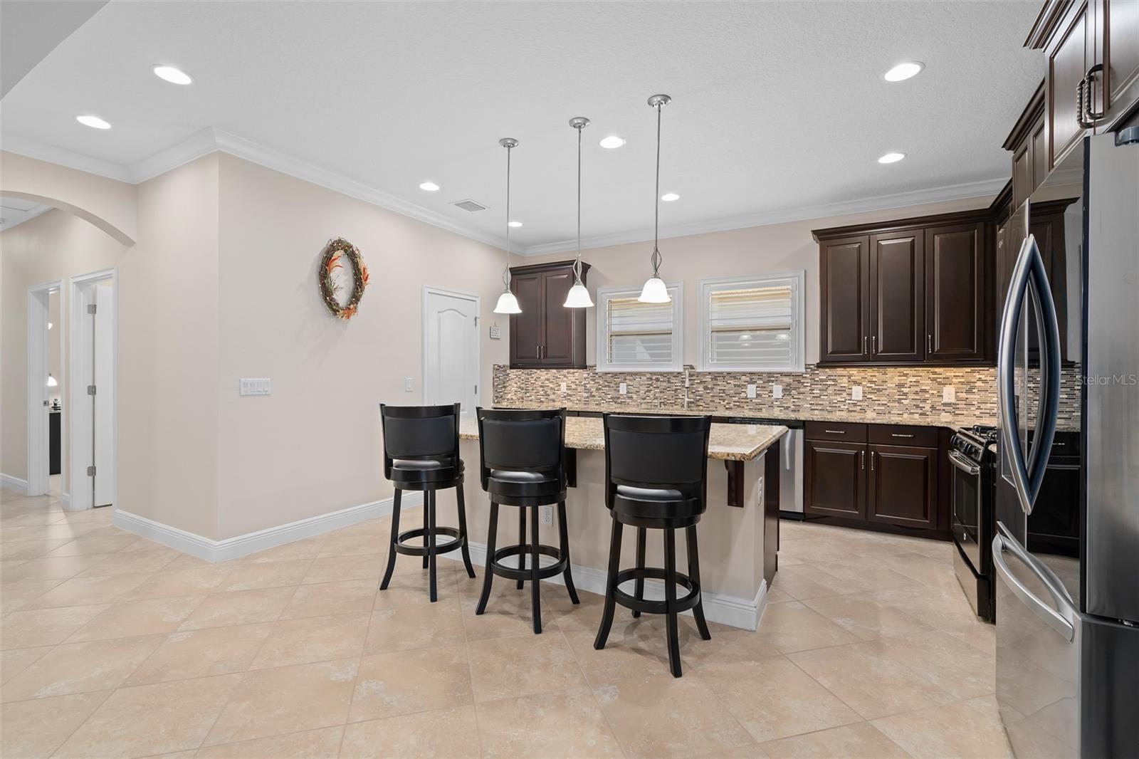 Meticulous Bergamo model offering GORGEOUS CURB APPEAL and LANDSCAPING located in the GATED 55+ Community of the Esplanade at Highland Ranch in the ROLLING HILLS of Clermont. Upon entry you will be greeted by a beautiful OPEN floor plan. This 2 bedroom, 2 bath, 1,722 sq ft ONE STORY home offers GREAT room sizes and many UPGRADES. There is a current VA loan in place that is Assumable pending buyer qualifications. The interest rate is 3.25% with an approximate loan balance of $300,000 loan balance. Enjoy your FENCED REAR YARD while sitting in your Under Roof Screened Lanai with a Paradise Outdoor Grill. STAINLESS KITCHEN APPLIANCES, UPGRADED LG Refrigerator, Granite Countertops throughout, Pendant Lighting over a BEAUTIFUL ISLAND with BREAKFAST BAR and a Large Walk-In Pantry. You will also appreciate the 42" UPGRADED Solid Wood Cabinetry with TRASH Drawer and UNDER CABINET LIGHTING. The GENEROUS size of the Owners Suite offers Upgraded Wall Tile with a Listello accent, a large WALK-IN SHOWER with SEAT, Comfort Height DOUBLE VANITIES, one Vanity has a Drawer Bank for added Storage, Separate Water Closet with a Linen Closet and WALK-IN CLOSET are sure to meet your needs. Some of the offered upgrades are Ceramic Tile Floors laid on a DIAGONAL in the MAIN LIVING AREAS and Bathrooms, Architectural Arches, Tray Ceiling in the Dining Room, Oversized Base Trim, 9'-4" Ceilings Throughout the home, PLANTATION SHUTTERS, Floor Receptacle in Family Room, CROWN MOLDING in the Main Living Areas, Ceiling Fans, Additional Ceiling Lighting, RAIN GUTTERS, Garage Ceiling Racks for Additional Storage, Garage Attic Flooring for Additional Storage, R-38 Ceiling Insulation, Water Softener, Reverse Osmosis Drinking Water at the Kitchen Sink, Double Pane Vinyl Windows with Low-E and Argon gas for energy efficiency. In the event Guests are visiting, Bathroom 2 offers a Comfort Height Vanity and a LIGHTED MIRRORED MEDICINE CABINET is adjacent to Bedroom 2 for convenience. This home is Built on a 50' Wide Lot allowing for additional side space. The HOA offers RESORT STYLE Community Amenities that include a Pool, Spa, Resistance Pool (all heated), Pro-Style Clay Tennis and Bocce Ball Courts, Pickle Ball Courts (All of the Sports Courts are Lighted for Night Time Play), Fire Pit, Billiards, Table Tennis, Card Room, Movement Studio, Numerous Clubs and Activities, Outdoor Kitchen and a Dog Park for our Furry Friends to enjoy. The HOA fee includes the Lawn and Shrub Care, Fertilizing, Mulching, Irrigation System Maintenance, Amenities, Gates and Roads. The Esplanade At Highland Ranch is a sought after community close to South Lake Orlando Health Hospital and the New Advent Health Hospital, Medical Offices, VA, Shopping, Publix, Target, Home Depot, Lowes, Starbucks, Restaurants, Golf Courses, Disney and Other Attractions, National Training Center (NTC), Boating and the Quaint Downtowns of Clermont and Winter Garden. For your traveling convenience, the Esplanade is within a few minutes to the Florida Turnpike with easy access to Dr Phillips Famed Restaurant Row and OIA (30 minutes). The Esplanade at Highland Ranch DOES NOT have a CDD.