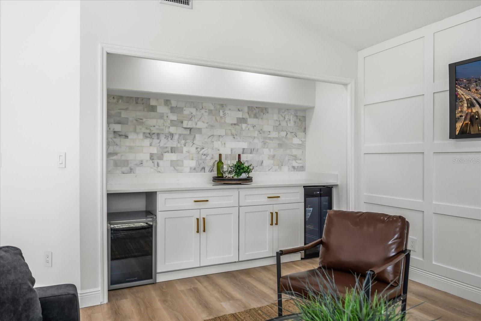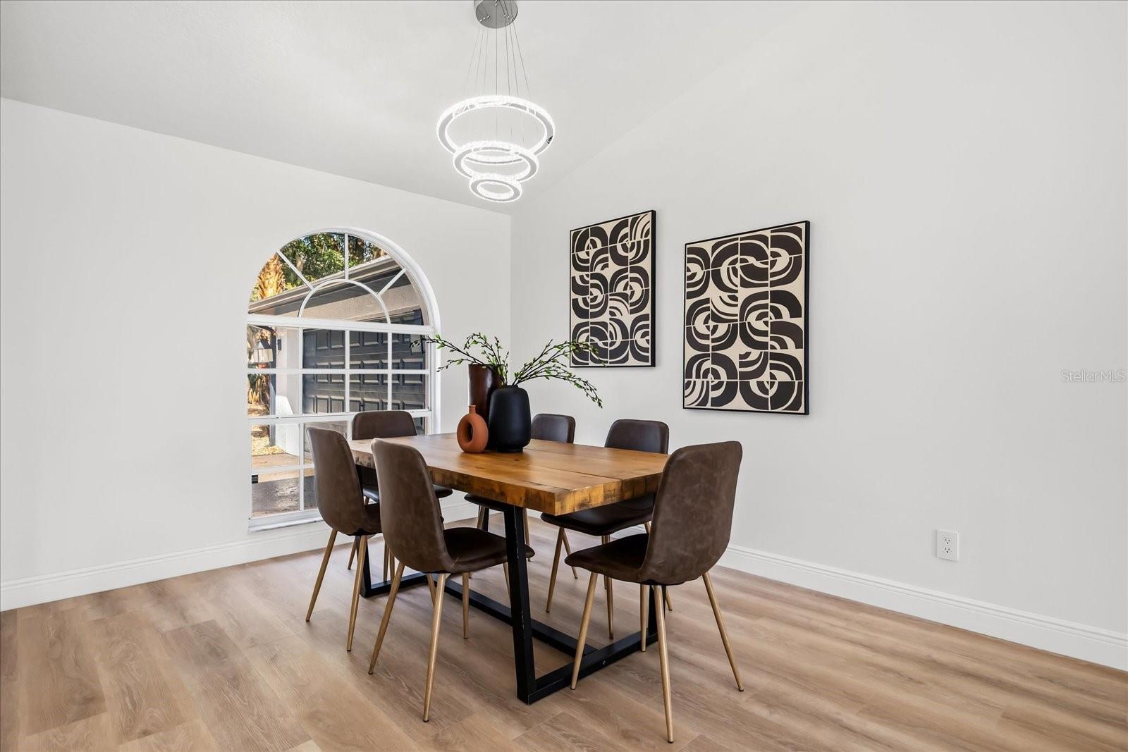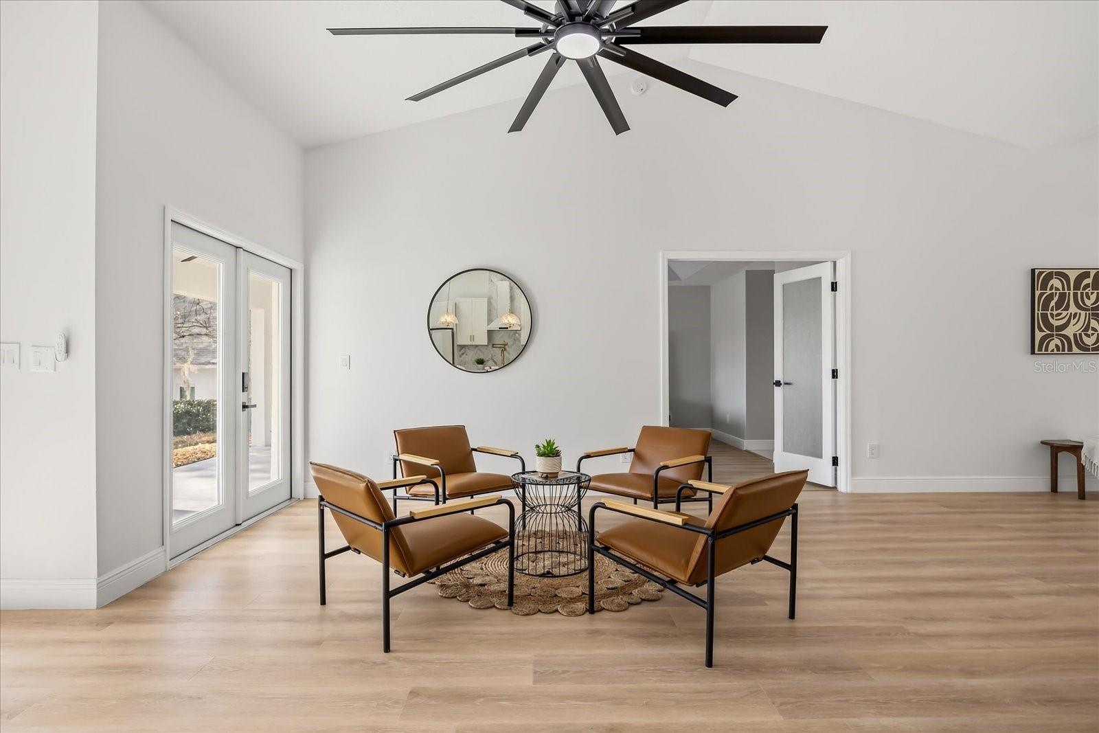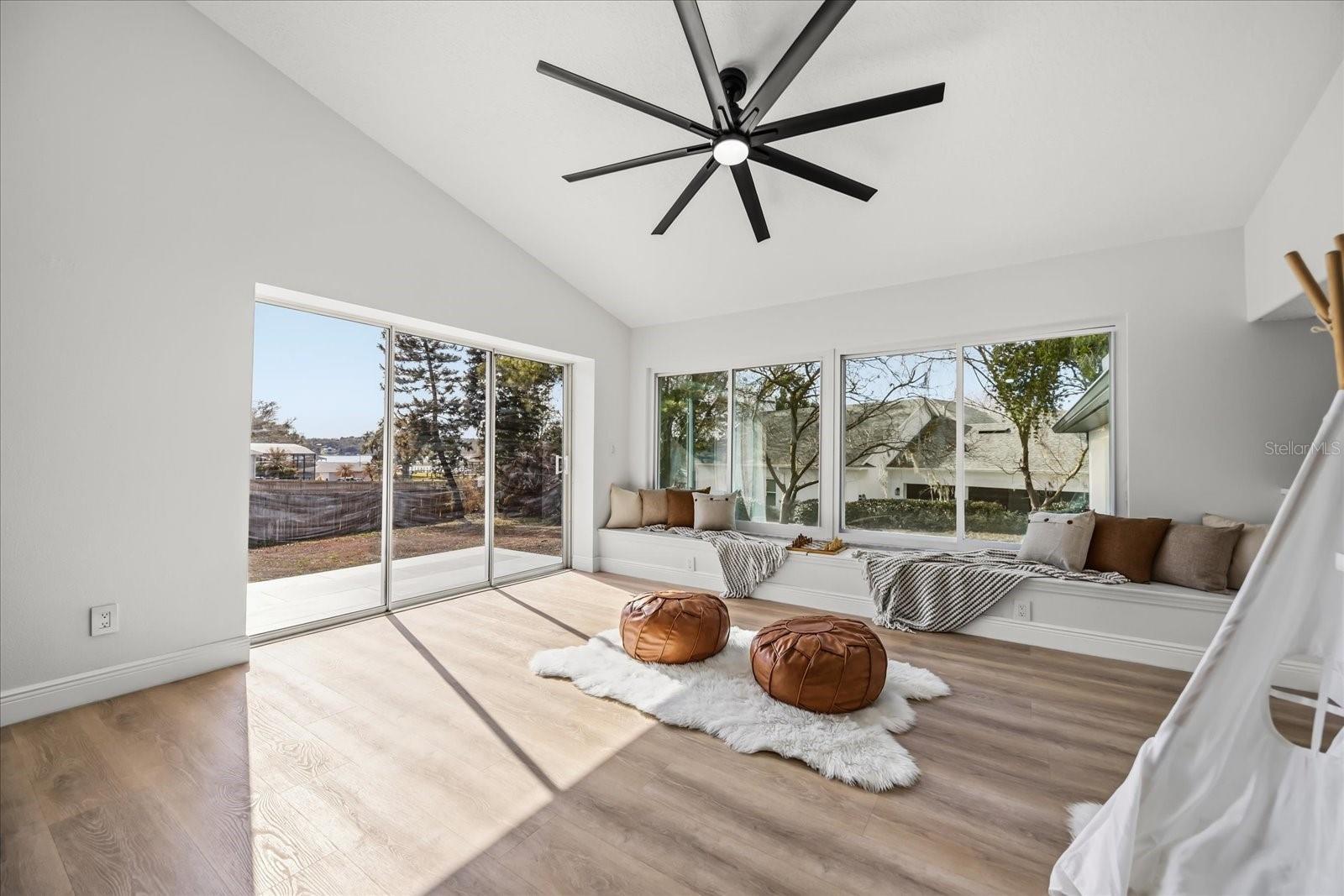 Set on an expansive .4-acre homesite with private boat ramp and dock access to Crescent Lake—part of Clermont’s coveted Chain of Lakes connecting to Lake Louisa, Lake Minnehaha, Lake Minneola, and Lake Susan—this refined residence captures the ease of waterfront living with thoughtful modern updates and timeless design. A double-door entry opens to vaulted ceilings and an airy open-concept layout filled with natural light, complemented by seamless LVP flooring throughout and an expansive great room designed for everyday comfort. Just beyond, a dedicated gathering room serves as the true heart of the home, anchored by a wood-burning fireplace and enhanced by a stylish wet bar with beverage refrigeration—an inviting setting for relaxed evenings and memorable entertaining. Full retractable sliding glass doors create a seamless transition to the spacious covered lanai, blending indoor and outdoor living with effortless flow. The chef’s kitchen is appointed with solid wood shaker cabinetry, striking waterfall quartz countertops, a porcelain farmhouse sink, brand-new stainless smart appliances, and a four-seat island that naturally draws conversation. A formal dining room adds elegance for hosted dinners, while the privately positioned primary suite offers a tray ceiling, dual closets, direct lanai access with a tranquil peek of the lake, and a luxurious en-suite featuring dual vanities, a curbless walk-in shower, and a soaking tub. Two guest bedrooms are thoughtfully arranged on a split floorplan and share a beautifully updated bath with a sage green vanity and sleek finishes, complemented by an adjacent laundry room with cabinetry and utility sink. Notable upgrades include a 2021 roof replacement, all new double-pane windows, complete repipe plumbing, a new water heater, rain gutters, lush landscaping, and a side-entry two-car garage, all enhanced by a sweeping U-shaped driveway that elevates the home’s exterior presence. Blending space, light, and private chain-of-lakes access, this property offers a rare opportunity to live immersed in Clermont’s rolling hills and waterfront lifestyle while remaining just minutes from major shopping, dining, and everyday conveniences that make life effortlessly accessible.