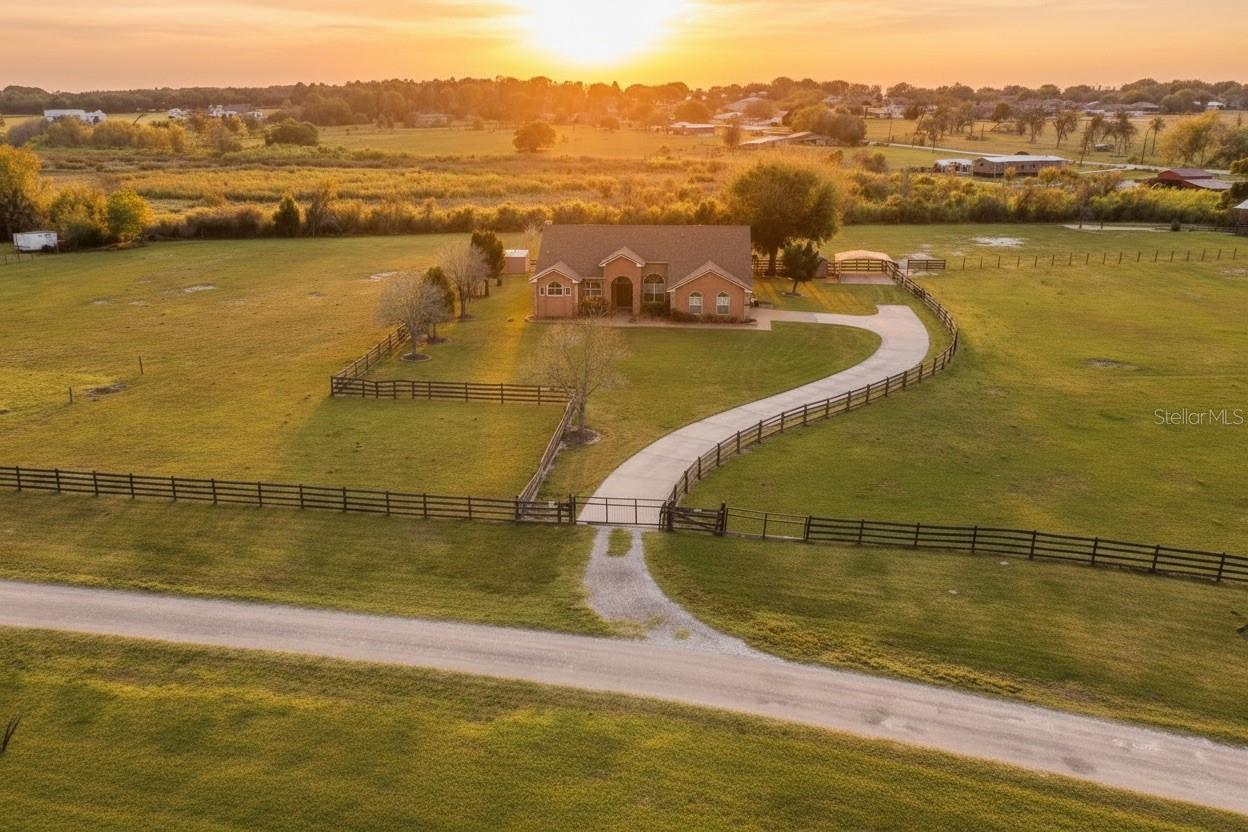 One or more photo(s) has been virtually staged. No HOA • Nearly 10 Acres • Horse or Livestock Property in Clermont Just 5 miles from HWY 50 in Clermont and Historic Downtown, and very close to Cypress Cove Marina and the Clermont Chain of Lakes. Land is 9.6 Acres total, 6 Acres of Agricultural including the homesite, and 3.5 Acres of Wetlands. Bring your horses, or keep the existing cattle, and enjoy the freedom of country living just minutes from town! This exceptional nearly 10-acre agricultural property in Clermont offers the perfect combination of privacy, usable pasture, and a well maintained custom home. The property features multiple acres of fenced pasture, a horse barn, gated entry, and a long private driveway leading to a side-entry two-car garage. With plenty of room for horses, equipment, and future improvements, this property is ready for your rural lifestyle. Also, a 2 Car Garage and 2 Car Carport. Zoned for Pine Ridge Elementary School. The custom concrete block home offers nearly 2,500 square feet of heated and cooled living space and is move-in ready. Inside, you'll find a desirable split-bedroom floor plan with 4 bedrooms and 2.5 bathrooms, providing comfort and privacy for family and guests alike. A welcoming double-door entry leads into the spacious living area where a stone façade wood-burning fireplace serves as the centerpiece of the great room. The centrally located kitchen features stainless steel appliances and connects easily to the main living spaces—perfect for everyday living and entertaining. The oversized primary suite offers plenty of space to relax, while the primary bathroom includes a soaking tub, separate shower, and private water closet. Step outside to the 30-foot-wide screened lanai that spans most of the back of the home—an ideal place to enjoy peaceful mornings or evening sunsets while overlooking open pasture and your own private wetlands behind the property. Opportunities like this are rare in Clermont—nearly 10 acres, horse-ready pasture, and a move-in-ready custom home with no HOA restrictions. Come experience the space, privacy, and lifestyle this property offers and make it your NextHome today.