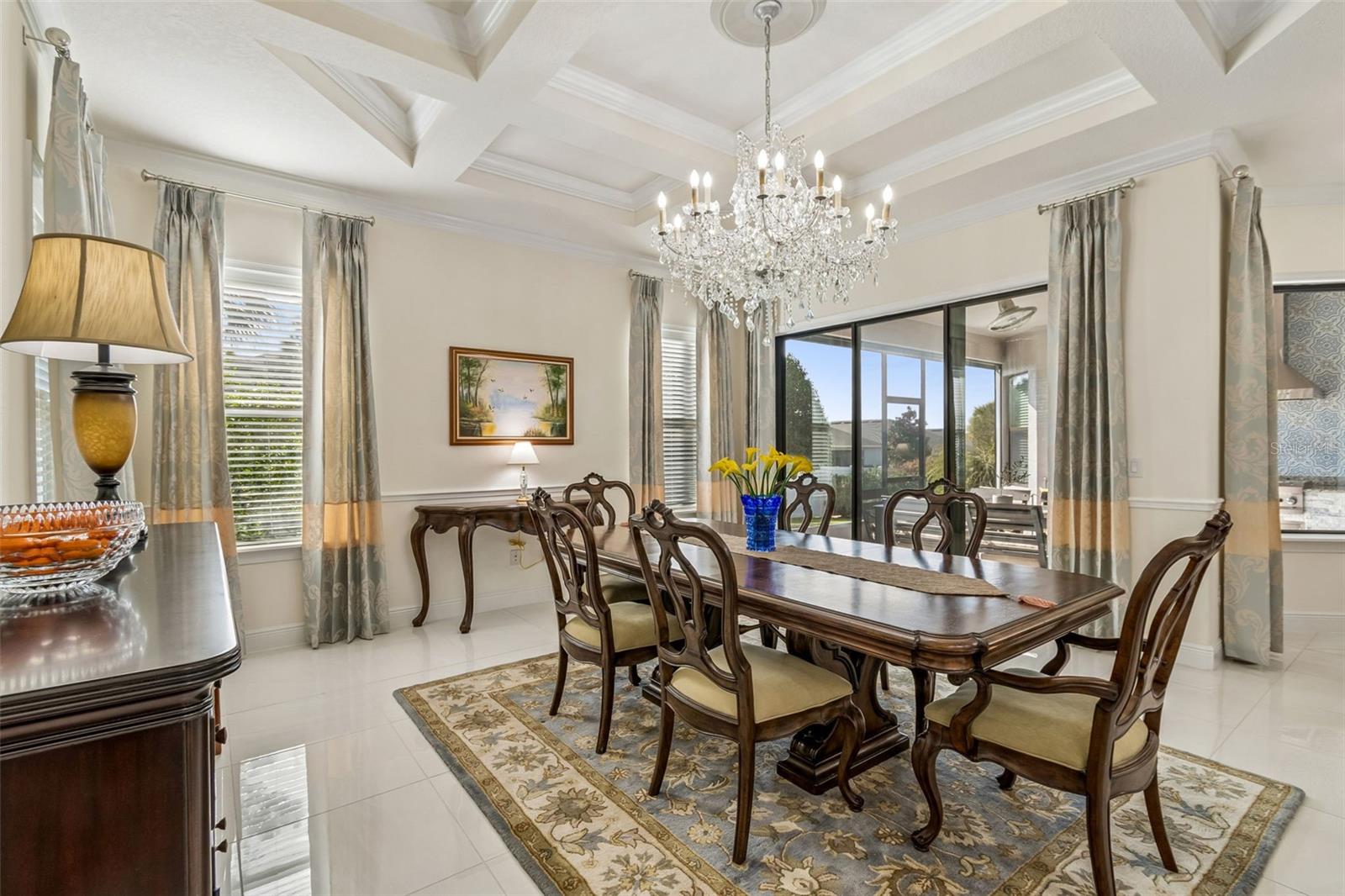 Prepare to be captivated by this meticulously upgraded masterpiece, where sophisticated luxury meets modern comfort at every turn. From the moment you arrive, the freshly painted exterior (2022), extended stonework, and charming gated courtyard set a tone of elegance that continues throughout the home. Inside, you are greeted by architectural grandeur featuring 8-foot doors, soaring coffered and tray ceilings, and an upgraded trim package with crown and chair molding that frames every room perfectly. The seamless flow of 20x20 porcelain tile leads you past a private office with elegant glass doors into the heart of the home: a gourmet kitchen boasting quartz countertops and an enhanced backsplash. No detail has been overlooked, from the sustainable bamboo floors in the bedrooms to the guest suite’s private ensuite with a walk-in shower. Your master retreat is a sanctuary of its own, featuring a sun-drenched bay window, a massive closet with custom built-ins, and a luxurious super shower. The mechanical integrity of the home is just as impressive as its design, anchored by a brand-new HVAC (2025) with a lifetime warranty, a tankless water heater, and a whole-house water softener system for ultimate peace of mind. Functional luxury continues in the 3-car tandem garage, which features high-durability epoxy floors and insulated doors, while a built-in Wi-Fi extender ensures seamless connectivity throughout the property. Beyond the interior, your private tropical oasis awaits; a screened lanai with a privacy screen opens to a lush landscape of palm and fruit trees. Whether you’re hosting at the upgraded outdoor kitchen or enjoying the added security of integrated floodlights and gutters, every inch of this home has been curated for a lifestyle of unparalleled quality. Life at Esplanade at Highland Ranch extends far beyond your front door, offering a resort-style experience centered around a well-appointed clubhouse designed for an active and social lifestyle. Residents enjoy access to a state-of-the-art fitness center, a multi-purpose room for gatherings, and dedicated spaces for cards and billiards. For relaxation, indulge in the on-site treatment room for massages or grab a morning cup of joe at the coffee bar. The outdoor amenities are equally spectacular, featuring a resort-style pool and spa, a resistance pool, and a cozy fire pit for evening conversations. Competitive spirits will thrive on the four pickleball courts, two bocce ball courts, and the tennis court, while those seeking serenity can explore the picturesque walking and biking trails, event lawn, and expansive park spaces that surround this premier active adult community.