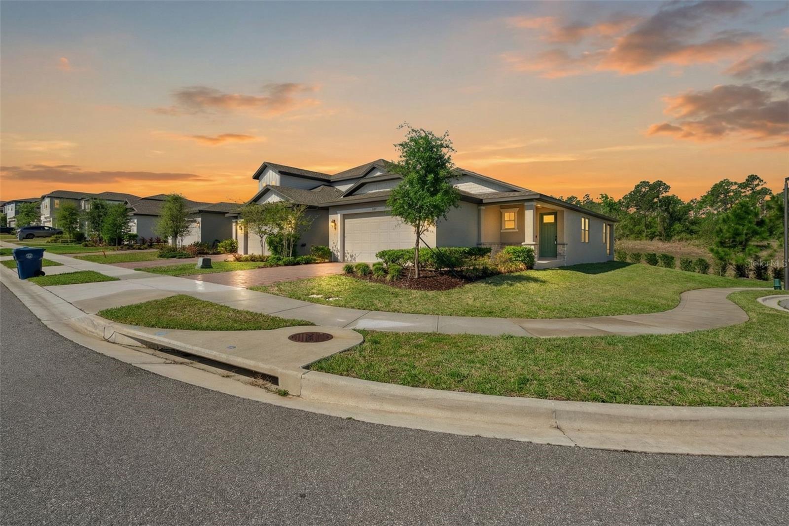 One or more photo(s) has been virtually staged. Set within the Hills of Minneola, this beautifully presented 3-bedroom, 2-bath home offers the combination of modern finishes, open living, and a homesite that feels larger and more open than many in the neighborhood. With its paver driveway, covered front porch, and clean architectural lines, the home delivers an immediate sense of quality and easy Florida living.Inside, the layout is bright, airy, and highly functional. The kitchen anchors the home with light cabinetry, stone countertops, stainless steel appliances, a decorative backsplash, and a large island that serves as both a natural gathering point and a practical workspace. It opens directly to the living and dining areas, creating the kind of connected floor plan buyers continue to seek. Wood-look tile flooring through the main living areas adds style and continuity, while the neutral palette makes the home feel fresh and move-in ready. The bedroom layout offers separation and flexibility, with comfortable secondary bedrooms and a well-finished bath positioned apart from the main living areas. The primary suite provides a private retreat, and the interior laundry room adds to the home’s everyday ease. Outside, the covered rear lanai overlooks a generous yard with additional breathing room created by the lot placement and surrounding open views. Whether you want room to unwind, entertain, or simply enjoy a less crowded feel, this homesite offers a real advantage. Beyond the property itself, the Hills of Minneola continues to attract attention for its growth, elevated topography, and convenience to major roadways, shopping, and dining. Community amenities include a clubhouse, community pool, parks, and playgrounds, with a nearby K-8 school and easy access to medical facilities, the Florida Turnpike, Clermont, Winter Garden, and greater Central Florida.