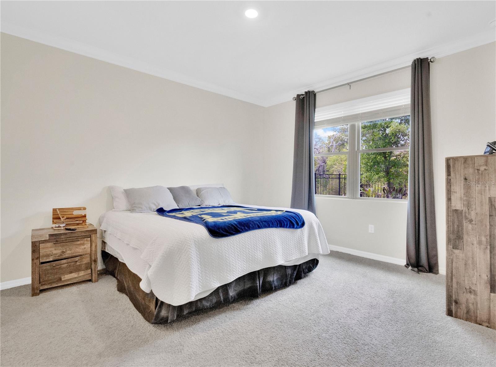 Welcome to Serenoa Lakes, a gated 55+ community in Clermont, where refined design meets effortless, turnkey living. Ideally positioned near the cul-de-sac, this nearly new, turnkey furnished 2-bedroom, 2-bath residence with a versatile office/den offers both privacy and a thoughtfully designed layout. Inside, a light-filled open-concept floor plan creates a seamless flow between the living, dining, and kitchen spaces. The kitchen is intentionally designed for efficiency and ease of movement, featuring stainless steel appliances, a designer backsplash, an expansive center island with seating, and a dedicated dining area—ideal for everyday living and hosting alike. Crown molding throughout adds a subtle architectural elegance. The primary suite serves as a private retreat, overlooking peaceful conservation views, and features two walk-in closets and a spa-inspired en-suite bath with dual vanities and a spacious walk-in shower. Outdoor living is equally inviting, with a screened lanai finished in pavers—perfect for relaxed mornings or quiet evenings. The fully fenced backyard is enclosed with wrought iron fencing, offering both visual openness and defined privacy, all complemented by maintained landscaping. Serenoa Lakes delivers a true resort-style lifestyle, featuring a zero-entry pool heated year-round to 80 degrees, tennis courts, pickleball and racquetball courts, a clubhouse, fire pit, and dog park. Residents also enjoy a curated social calendar with events such as Food Truck Thursdays, hobby and craft groups, and community gatherings. The HOA enhances ease of ownership by including cable and internet, lawn mowing and care, exterior painting every 5 years, and reroofing every 15 years—supporting a true lock-and-leave lifestyle. Conveniently located near Walt Disney World, Lake Louisa State Park, and an array of shopping and dining, this residence offers a rare balance of convenience, natural beauty, and elevated living. See Realtor Remarks: some furniture not included.