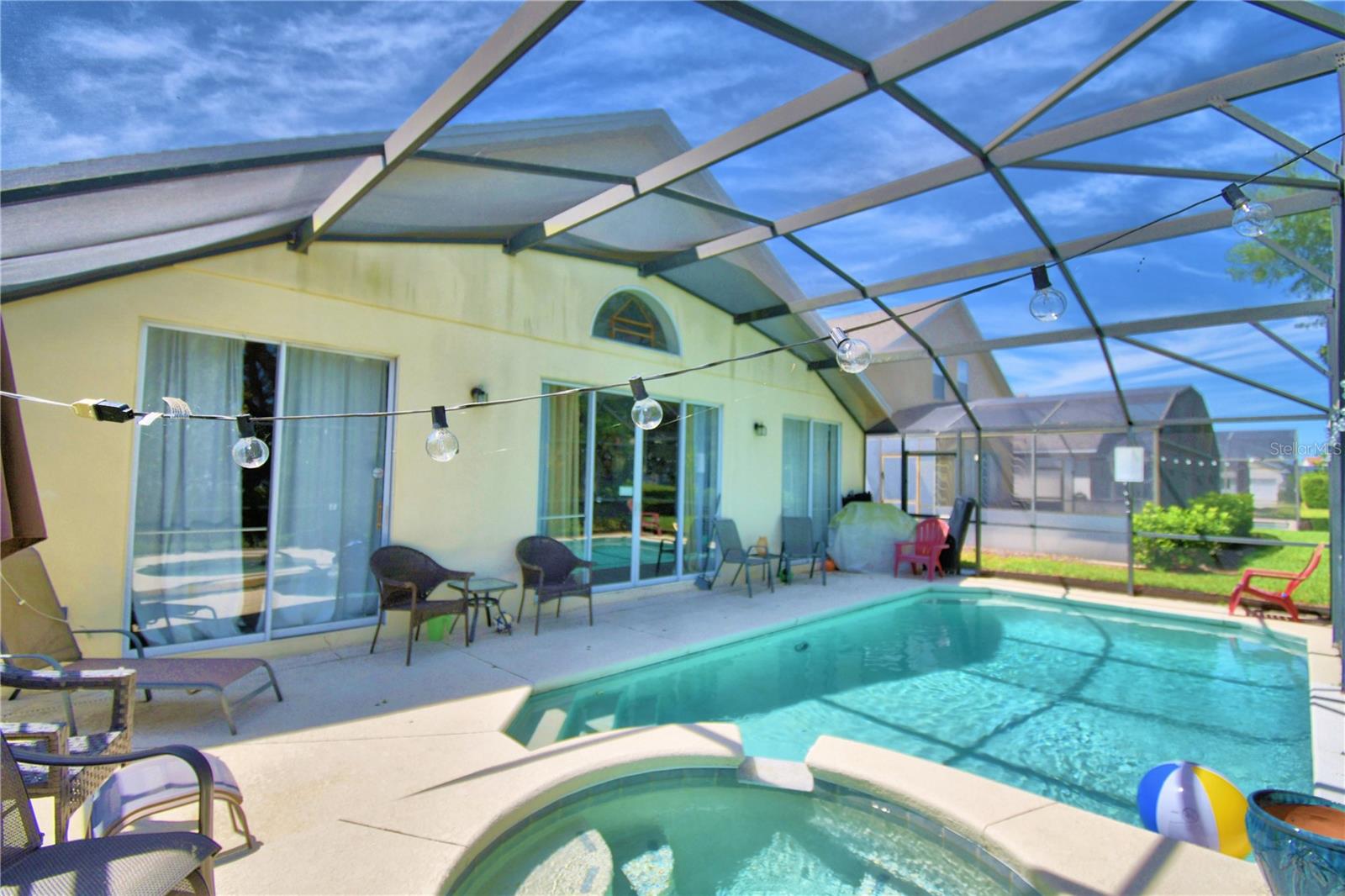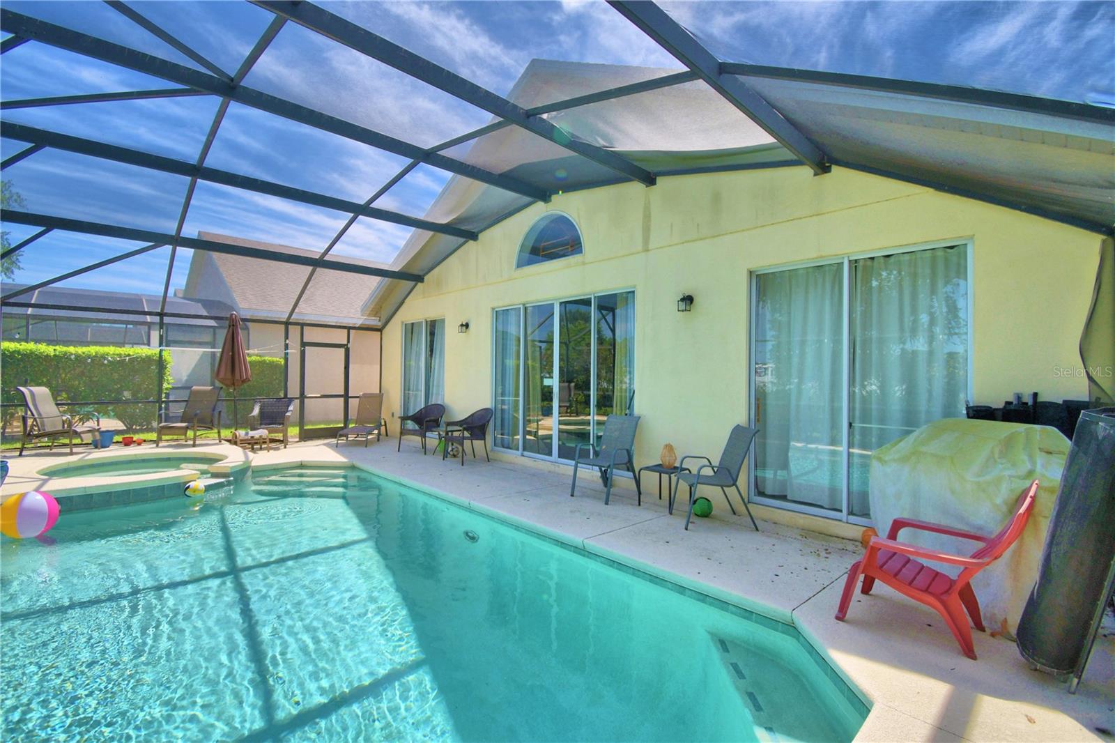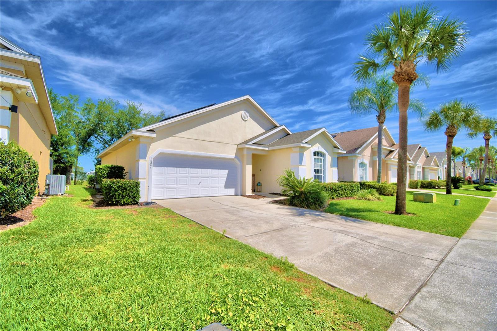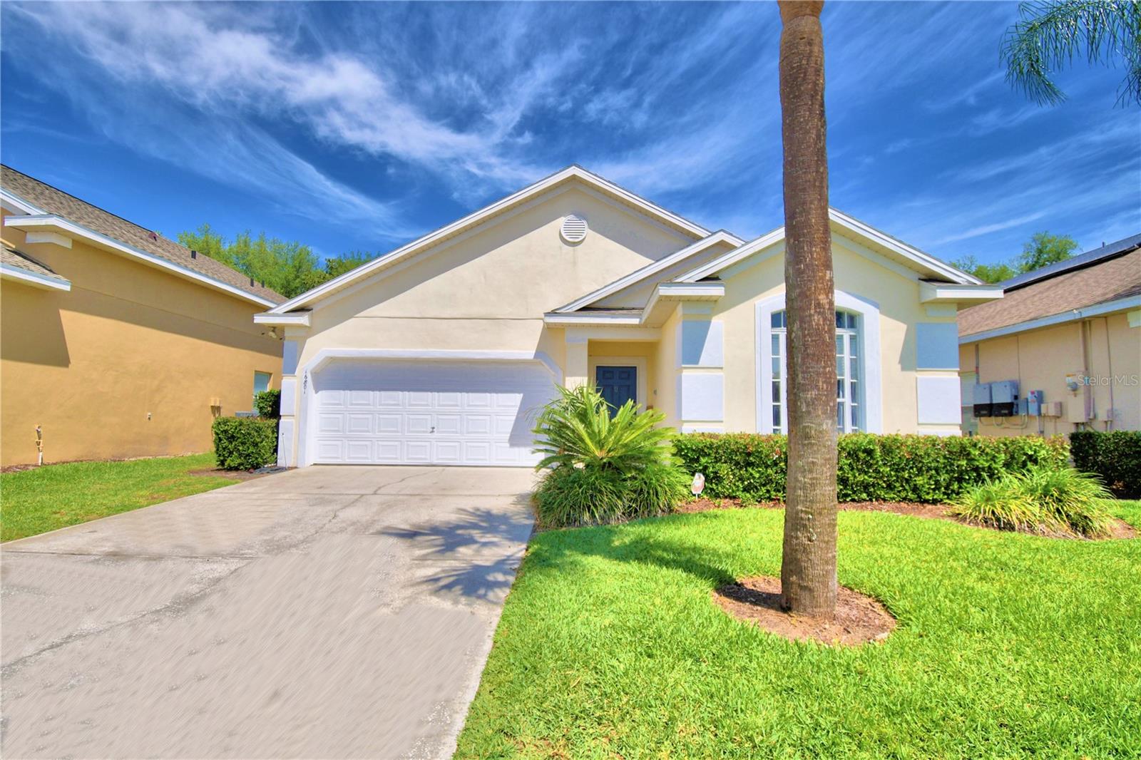 Located on the main boulevard close to the clubhouse is this beautiful 3 bedroom pool home in the popular Glenbrook community. A nice open floor plan with lots of natural light positions two of the bedrooms towards the front of the house and the master bedroom (with ensuite bathroom and direct access to the pool deck) towards the rear. The floors of the home are upgraded and the Master bath is upgraded as well with a gorgeous walk in shower. This home also comes with a new roof accompanied by solar panels that will cut the cost of your normal utility bill. The AC unit is only 3 years old . Also, At the center of the home the great room with 4 panel sliding doors has wonderful views of the pool area and provides access into the kitchen and the breakfast area. With an in-ground heated pool and spa you have plenty of space to relax in the Florida sunshine or entertain and no rear neighbors ensures maximum privacy. Easy access to 192 and surrounding major cities this home would make a great vacation rental, second home or primary residence. This home is move in ready ! AIR BNB Friendly ! Also The Hoa fee includes, internet, Cable , a gym and community pool ! Solar panels are $193 flat rate and duke energy ranging from 0-$80 depending on usage.