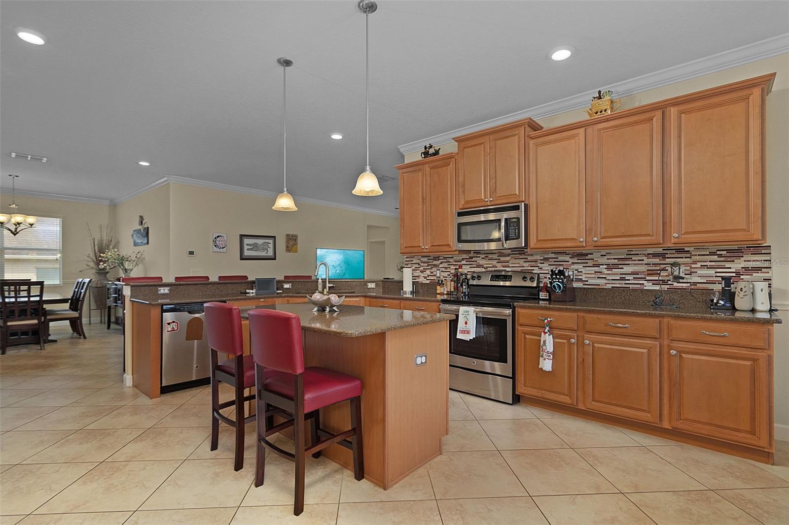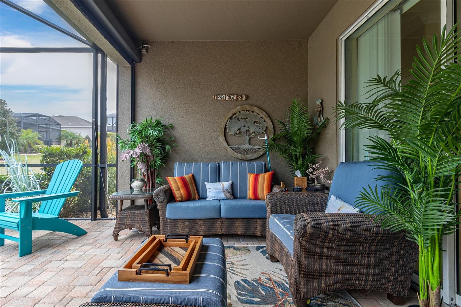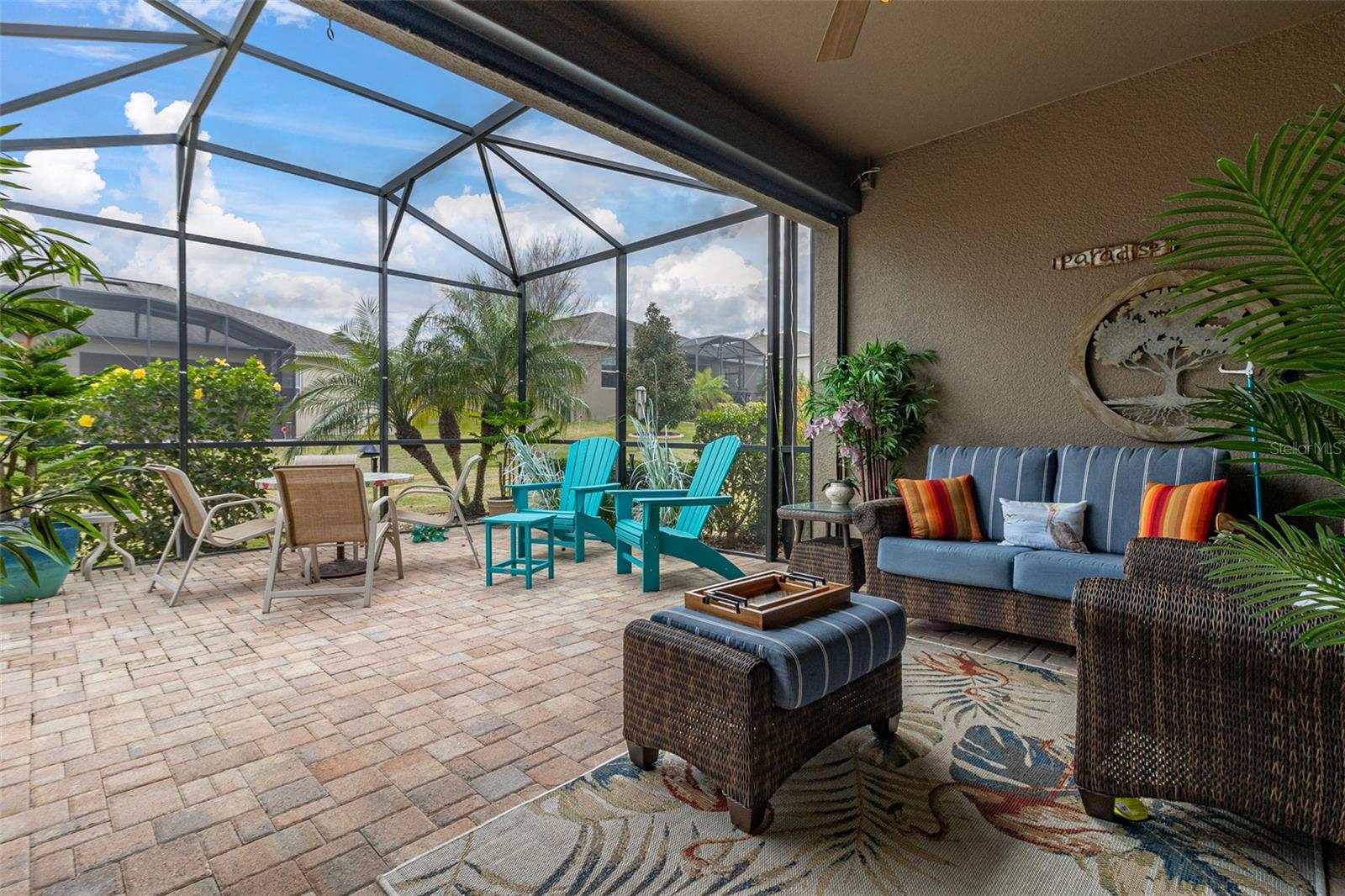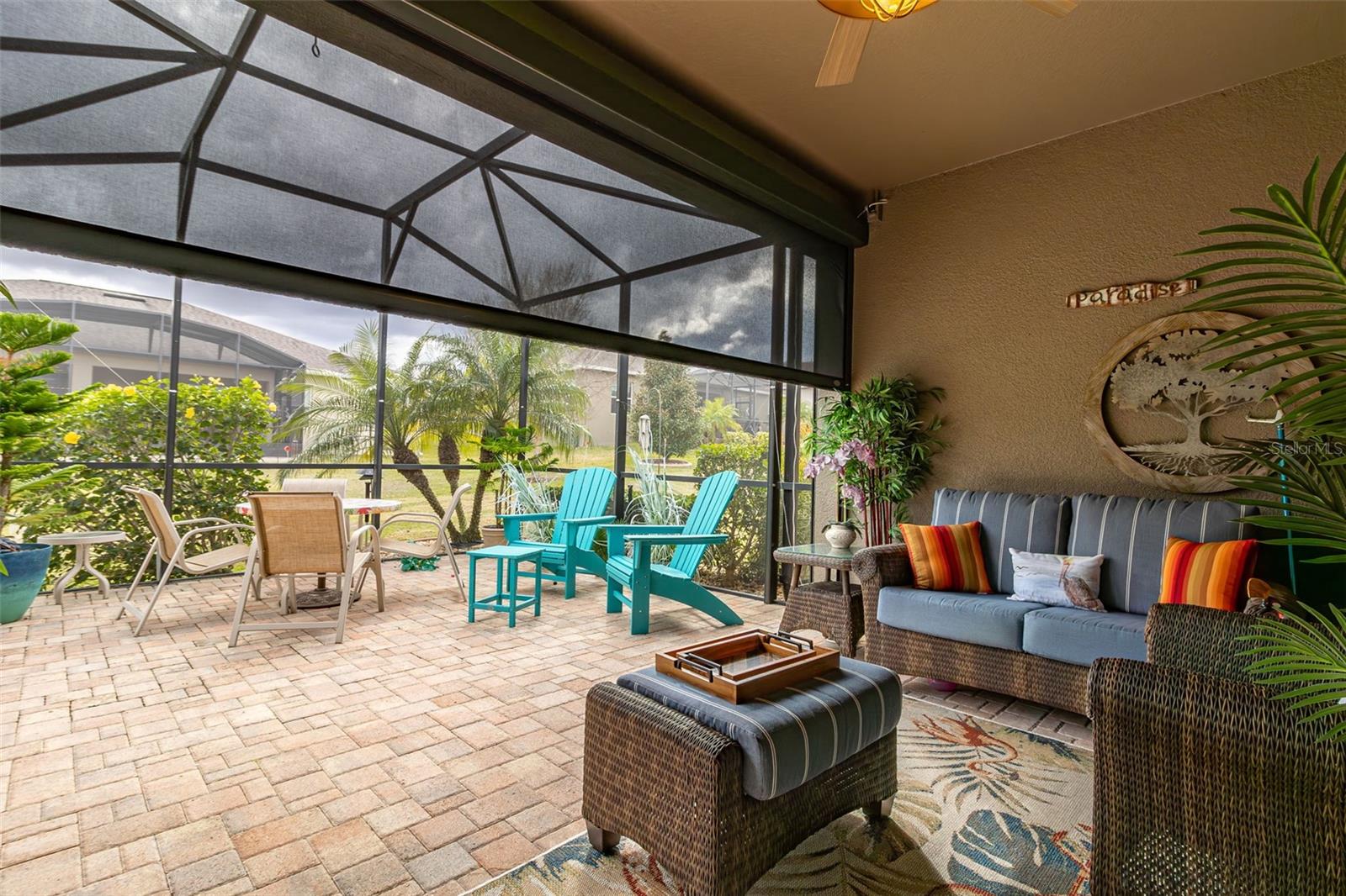 Fantastic opportunity to own this exceptional UPGRADED HOME in the well-known 55+ GUARD GATED Heritage Hills community with luxurious RESORT STYLE amenities! This tropical Paradise EXECUTIVE HOME is located on the PREMIUM 75' wide ELEVATED LOT in the lovely Tripoli offering great space between the neighbors. Sought after SINGLE STORY "Kennedy II" FLOOR PLAN built by Lennar Homes is featuring an impressive 3-WAY SPLIT FLOOR PLAN, a desirable 3-CAR GARAGE and south facing COVERED LANAI with spacious SCREENED IN PATIO and PAVED DECK where the best outdoor gatherings are guaranteed! QUALITY UPGRADES include: NEW Carrier HVAC (2022), GENERAC GUARDIAN 22KW GENERATOR powered by underground propane tank, remotely controlled METAL HURRICANE SHUTTERS operated by a click of the button, MOTORIZED SCREENS on the garage doors and lanai for added privacy, screened-in front porch; professionally installed (Closets by Design) garage WORKSHOP and CUSTOM STORAGE CABINETS; GARAGE FLOORING finished WITH RUBBER TILES and top STORAGE METAL RACKS in place; ENHANCED LANDSCAPING (2023) with custom designed flower bed edging and ROCK ACCENTS all around the house. This home is ideally designed for family entertainment & relaxing living and showcases outstanding layout featuring spacious OWNER'S SUITE, private GUEST SUITE and 2 additional guest bedrooms. Fall in love with expansive fully equipped KITCHEN featuring ample space to enjoy cooking experience: LARGE ISLAND with extra storage, huge BREAKFAST BAR, GRANITE COUNTERTOPS, roomy 42" upper CABINETS with crown molding, elegant TILE BACKSPLASH, stainless steel GE appliances, an oversized closet pantry, pendant lights, multiple recessed lights and a cozy BREAKFAST NOOK for a pleasant casual dining experience. The kitchen opens up into a FORMAL DINING ROOM to enjoy special occasions with friends and family. Diagonal laid ceramic TILE FLOORS in ALL LIVING AREAS and NEW beautiful LVP FLOORS (2023) in all bedrooms - NO carpet. UPGRADED CEILING FANS throughout and all come with REMOTES; elegant CROWN MOLDING in the kitchen, dining room, family room and the main bedroom; rounded drywall corners throughout. SPACIOUS DELUXE MASTER SUITE is featuring a large OWNER BATHROOM with GARDEN TUB, SUPER SIZED SHOWER enclosure, DUAL SINKS with GRANITE COUNTERTOPS, private water closet and a separate EXTRA LARGE walk in CLOSET. Enjoy the convenience of designated LAUNDRY ROOM with LG WASHER and DRYER included in the Sale; built in upper storage cabinets with designated hanger rack are wonderful extras to have! Heritage Hills is a spectacular age-restricted community (55+) and has NO CDD. The HOA fees cover access to state-of-the art CLUBHOUSE with heated POOL & HOT TUB, 24-Hour Fitness Center, Tennis Courts etc.; personalized lifestyle with Concierge and Activities Director available at your service. The current HOA assessment also includes lawn care and paint reserves (allowing repainting of your home every 6 years). This is a lovely home for new owners to make their own - we welcome you to schedule a private showing and check it out!