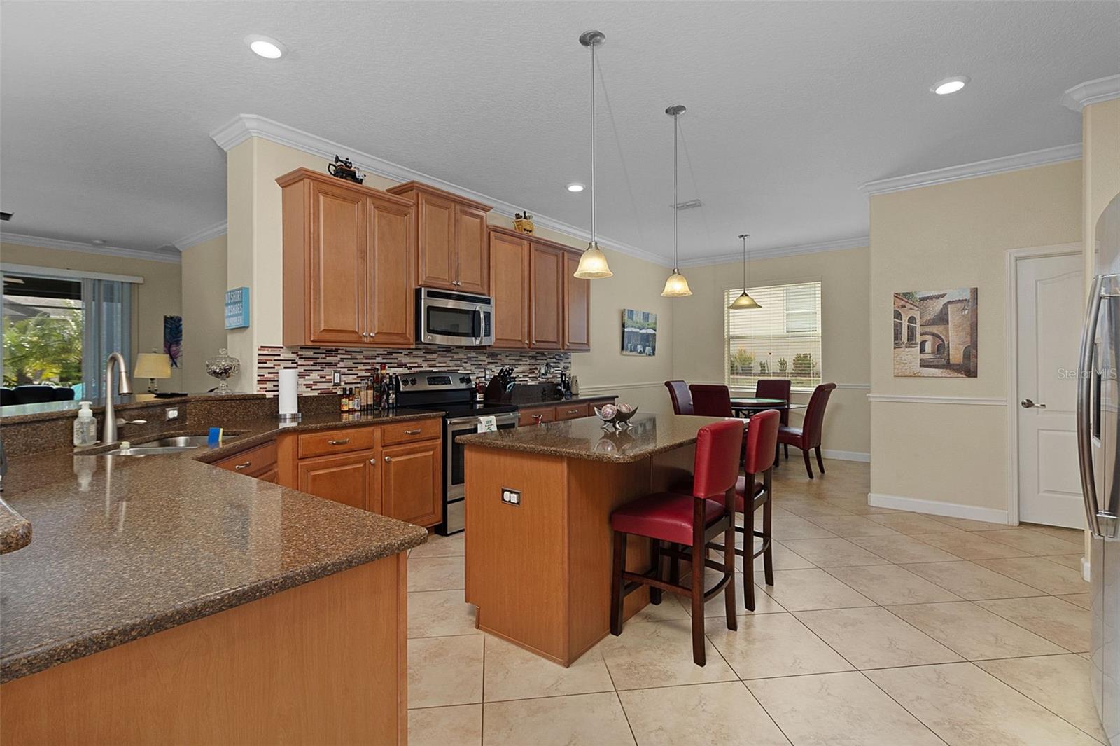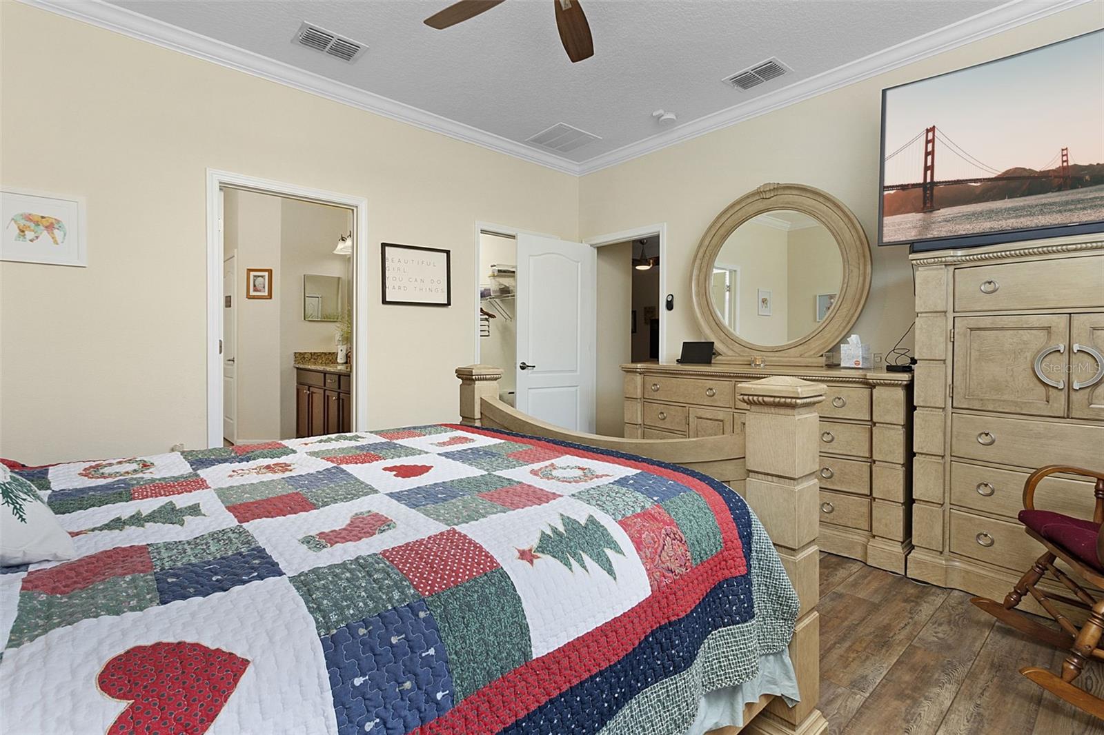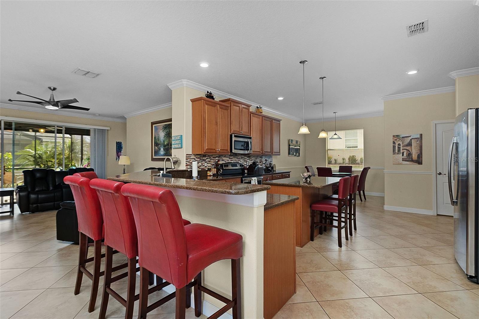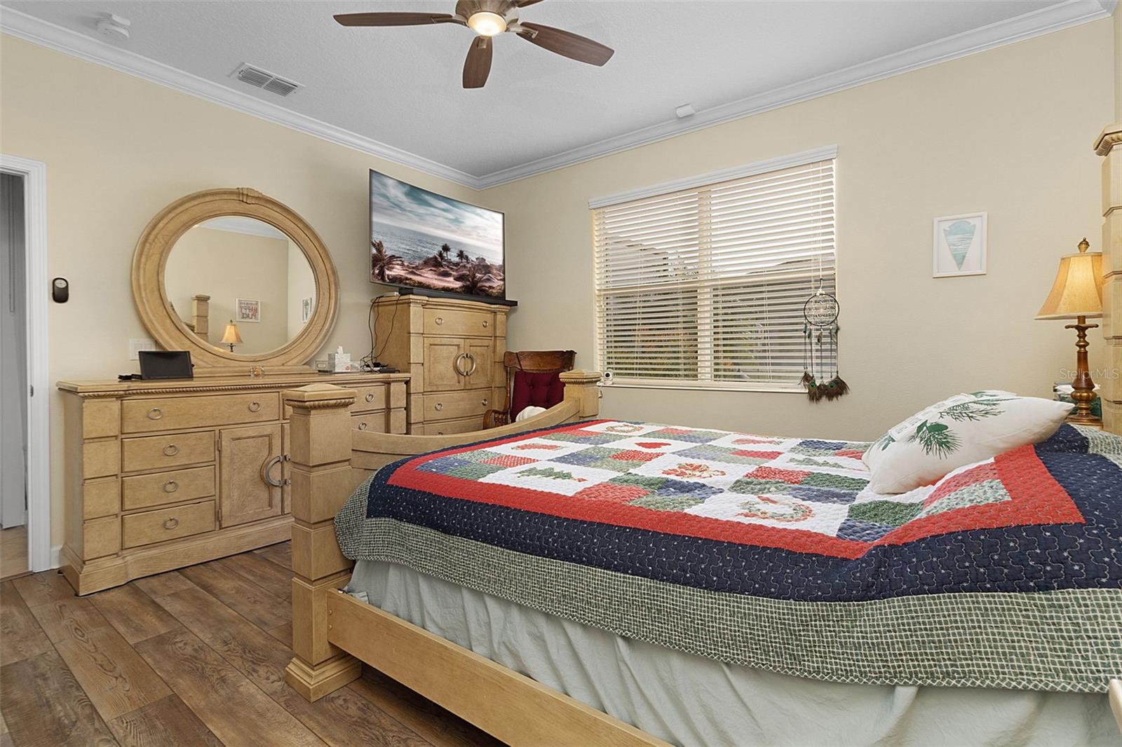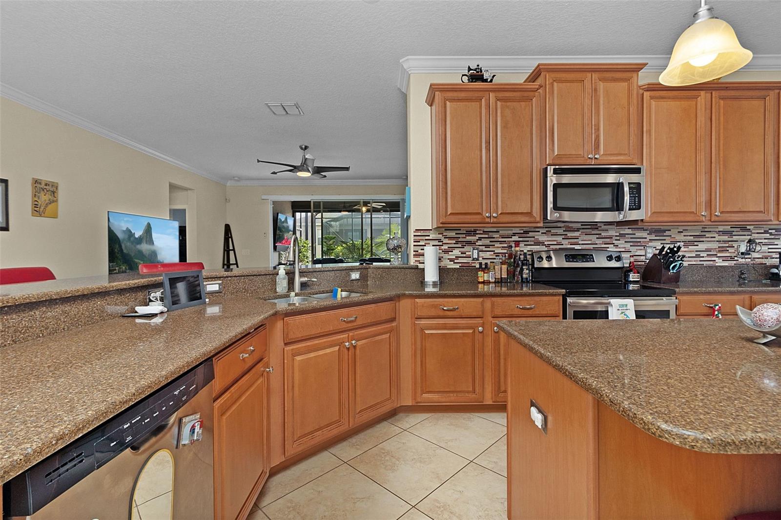 Fantastic opportunity to own this exceptional UPGRADED HOME in the well-known 55+ GUARD GATED Heritage Hills community with luxurious RESORT STYLE amenities! This tropical Paradise EXECUTIVE HOME is located on the PREMIUM 75' wide ELEVATED LOT in the lovely Tripoli offering great space between the neighbors. Sought after SINGLE STORY "Kennedy II" FLOOR PLAN built by Lennar Homes is featuring an impressive 3-WAY SPLIT FLOOR PLAN, a desirable 3-CAR GARAGE and south facing COVERED LANAI with spacious SCREENED IN PATIO and PAVED DECK where the best outdoor gatherings are guaranteed! QUALITY UPGRADES include: NEW Carrier HVAC (2022), GENERAC GUARDIAN 22KW GENERATOR powered by underground propane tank, remotely controlled METAL HURRICANE SHUTTERS operated by a click of the button, MOTORIZED SCREENS on the garage doors and lanai for added privacy, screened-in front porch; professionally installed (Closets by Design) garage WORKSHOP and CUSTOM STORAGE CABINETS; GARAGE FLOORING finished WITH RUBBER TILES and top STORAGE METAL RACKS in place; ENHANCED LANDSCAPING (2023) with custom designed flower bed edging and ROCK ACCENTS all around the house. This home is ideally designed for family entertainment & relaxing living and showcases outstanding layout featuring spacious OWNER'S SUITE, private GUEST SUITE and 2 additional guest bedrooms. Fall in love with expansive fully equipped KITCHEN featuring ample space to enjoy cooking experience: LARGE ISLAND with extra storage, huge BREAKFAST BAR, GRANITE COUNTERTOPS, roomy 42" upper CABINETS with crown molding, elegant TILE BACKSPLASH, stainless steel GE appliances, an oversized closet pantry, pendant lights, multiple recessed lights and a cozy BREAKFAST NOOK for a pleasant casual dining experience. The kitchen opens up into a FORMAL DINING ROOM to enjoy special occasions with friends and family. Diagonal laid ceramic TILE FLOORS in ALL LIVING AREAS and NEW beautiful LVP FLOORS (2023) in all bedrooms - NO carpet. UPGRADED CEILING FANS throughout and all come with REMOTES; elegant CROWN MOLDING in the kitchen, dining room, family room and the main bedroom; rounded drywall corners throughout. SPACIOUS DELUXE MASTER SUITE is featuring a large OWNER BATHROOM with GARDEN TUB, SUPER SIZED SHOWER enclosure, DUAL SINKS with GRANITE COUNTERTOPS, private water closet and a separate EXTRA LARGE walk in CLOSET. Enjoy the convenience of designated LAUNDRY ROOM with LG WASHER and DRYER included in the Sale; built in upper storage cabinets with designated hanger rack are wonderful extras to have! Heritage Hills is a spectacular age-restricted community (55+) and has NO CDD. The HOA fees cover access to state-of-the art CLUBHOUSE with heated POOL & HOT TUB, 24-Hour Fitness Center, Tennis Courts etc.; personalized lifestyle with Concierge and Activities Director available at your service. The current HOA assessment also includes lawn care and paint reserves (allowing repainting of your home every 6 years). This is a lovely home for new owners to make their own - we welcome you to schedule a private showing and check it out!