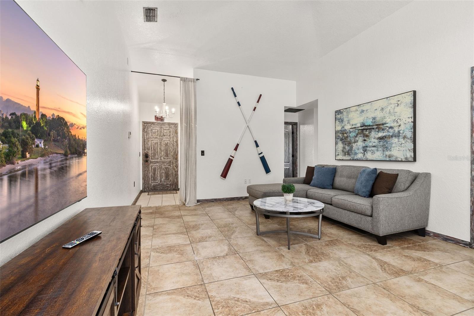 Welcome to tropical Paradise in this UPGRADED TURNKEY POOL HOME located on the PREMIUM OVERSIZED LOT (0.24 Acres) with LUSH CONSERVATION VIEWS! This home is ideally designed for family entertainment & relaxing living and showcases fantastic spacious POOL DECK with SCREENED ENCLOSURE and COVERED LANAI where family and friends come together to enjoy the outdoors. Sought after SINGLE STORY floor plan features beautiful CUSTOM DESIGNED RENOVATIONS as seen in the best home design magazines! QUALITY HOME IMPROVEMENTS include: NEWER ROOF (2021) with GUTTERS (2021), highly efficient variable speed 20 Seer Carrier HVAC SYSTEM (2019) for guaranteed comfort and the most savings. This favored layout features deep VAULTED CEILINGS and CERAMIC TILE FLOORING throughout (no carpet!); desirable OPEN FLOOR PLAN. Fall in love with impressive DESIGNER KITCHEN featuring beautiful custom pull out cabinetry complimented by stylish tile backsplash, upgraded STAINLESS STEEL APPLIANCES, RANGE HOOD venting outside for pleasant cooking experience, upgraded custom made countertops. The cozy BREAKFAST NOOK overlooks a sparkling pool area and opens up into a bright and roomy family room. TWO PRIVATE DELUXE MASTER SUITES featuring OWNER BATHROOMS - both recently remodeled. Guest bedroom with separate full bathroom featuring recent renovations as well. Custom painted door frames and doors with matching upgraded hinges & door handles; replaced ceiling grille covers, upgraded light fixtures and custom tile accent walls in the bathrooms and the lanai. Pie shaped lot allows extra space between the neighbors; privacy hedges planted outside complementing peaceful views. One car garage features custom shelving for extra storage, WASHER & DRYER included in the sale; 2-car tandem driveway. The Silver Creek HOA fees include cable TV, internet and lawn care; exterior re-paint every 5 years and NO CDD! Desirable location in the well established yet still growing Four Corners area conveniently located within only a short drive to the Town Center at Cagan Crossings, Disney parks, premium shopping & dining, minutes away from a beautiful Lake Louisa State Park, close to the best Florida beaches and all major roads. This is a lovely home perfect for a first-time home Buyer or a small family primary residency, second home or a profitable investment property. Zoning allows the flexibility of short term vacation rentals or long term leases. We welcome you to schedule a private showing and check it out! UNBRANDED PROPERTY VIDEO https://hm-media-orlando.aryeo.com/videos/0190acde-c6f7-7324-be9e-9696878aa502