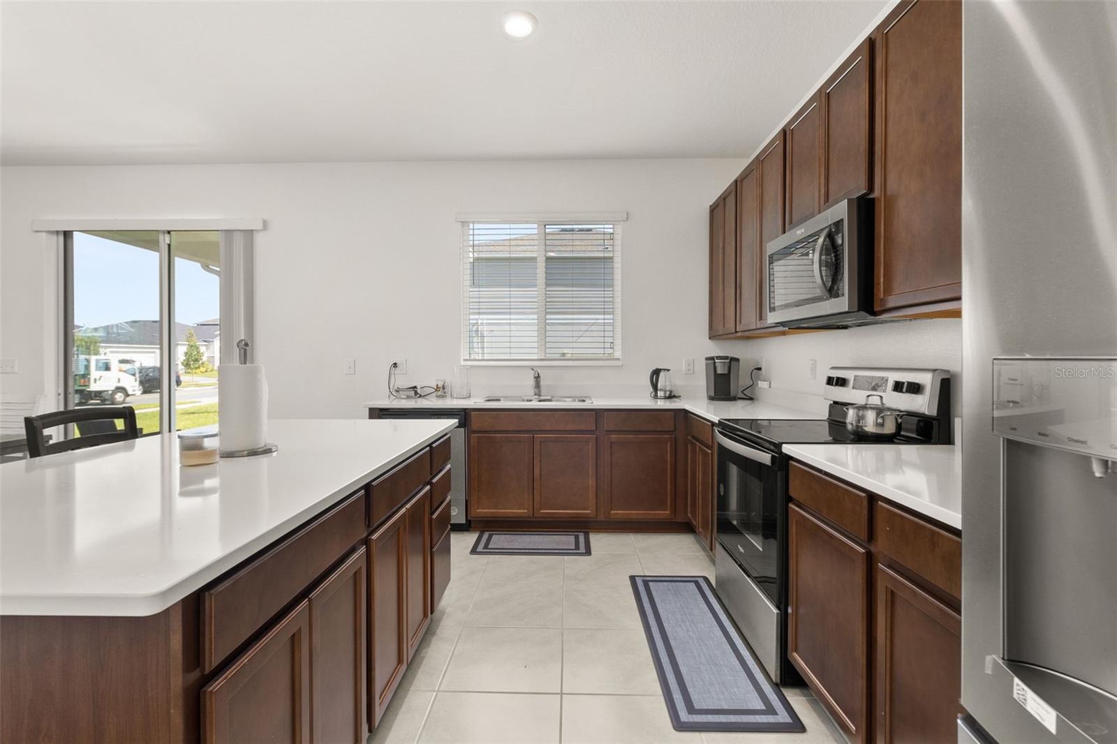 **HUGE PRICE REDUCTION**MOVE-IN READY! Welcome to your Dream Home! This 5 Bedroom, 3 Bath house, built by KB Homes just last year, offers an abundance of space, modern features, and a prime location. Situated on a desirable corner lot, this property boast tall ceilings and brand-new fixtures, providing a luxurious and comfortable living experience. The home's spacious open floor plan creates a seamless flow between the living, dining and kitchen areas, perfect for entertaining or enjoying family time. The tall ceilings enhance the sense of space and light throughout the house. The kitchen is equipped with state of the art appliances and ample cabinet space. The large island provides additional seating and workspace, making it the heart of the home for cooking and gatherings. Each of the 5 bedrooms are generously sized, with large windows that allow natural light to flood in. The master suite includes a walk-in closet and en-suite bathroom with dual sinks, and very nice shower. All 3 bathrooms feature modern fixtures and finishes. The master bathroom is a true retreat. Being on the corner lot offers additional outdoor space. The yard is perfect for outdoor activities, gardening or simply relaxing in the fresh air on the patio. This home includes a contemporary and worry-free living experience. From the lighting to the hardware, every detail has been carefully selected for functionality and style. Don't miss the opportunity to own this stunning, move-in ready 5-bedroom, 3-bath home in this new community of KB Homes. With its spacious layout, modern amenities, and prime corner lot location, it offers everything you need for a comfortable and stylish living experience. This home is very close to Disney (this community now joins Sawgrass Bay in the back, going all the way to Western Way, Hwy 429 and Disney), Hwy 192, Hwy 27 and Hwy 429. Convenient to restaurants and shopping as well. Contact us today to schedule a viewing and make this beautiful house your new home.
