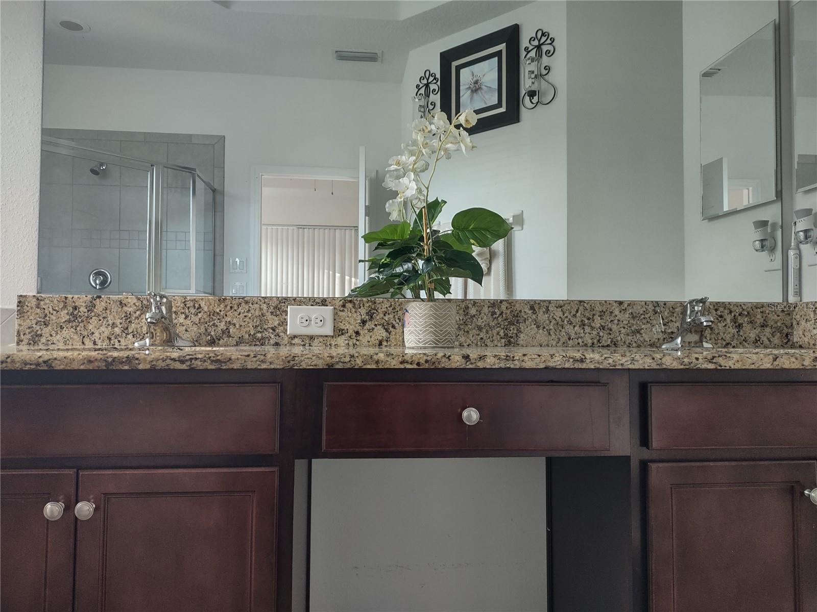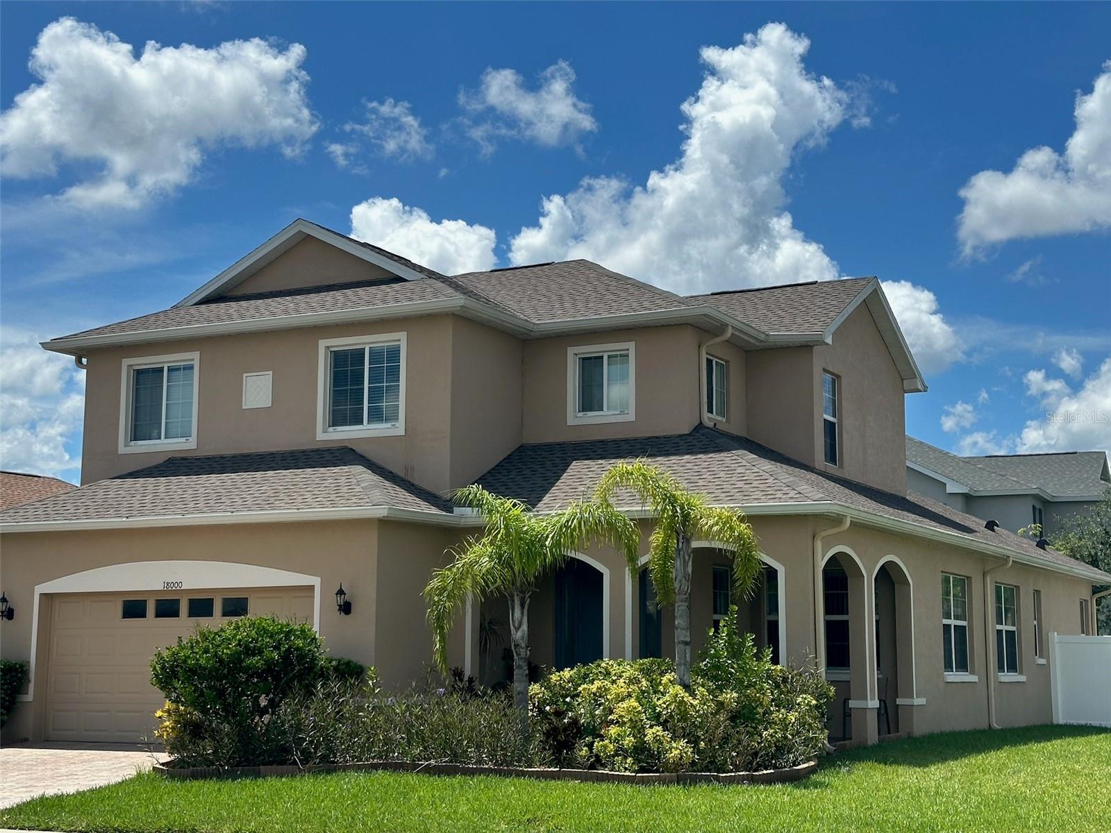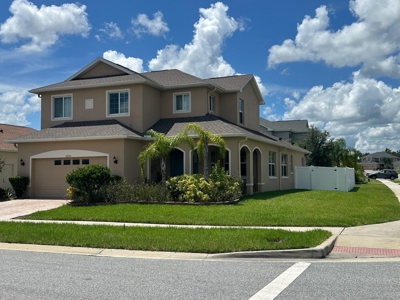 Just reduced. Now $10,000 price improvement from original listing price. Welcome to 18000 Placid Pl. A beautiful, well maintained corner lot, two story home located in the well sort out community of Sawgrass Bay. This residence is where beauty meets charm and functionality. This must see home adorned with so much natural light, beautiful tray ceilings, and ample windows and sliding glass doors, boasts 4 beds, 2 1/2 baths, living/dining combo and eat-in kitchen/great room combo. The kitchen has solid granite counters, center island and cherry 42' cabinets for storing all your kitchen needs. Need a pantry? the kitchen has one and a laundry room with utility sink right off the kitchen hall as well. Enter the beautifully lit master suite located on the main level with sliding glass door access to the patio as well; along with it's peaceful en-suite bath , shower, spacious walk in closet and luxurious garden tub for soaking after a long hard day. The second level hosts three more large bedrooms, beautiful cherry wood flooring and a large bathroom with a granite vanity and double sinks. Need a place for the young ones or guests? Enjoy the 2nd floor loft for additional entertainment. Outside the home you'll find a two car garage, paved driveway, walkway, and covered porch for relaxing in the evenings. The well manicured garden and spacious fenced yard, large enough for a pool and spa off your back patio awaits you for those great family gatherings. You can even have your guests catch those spectacular Disney fireworks right from your own driveway each night! If that is not enough, the community has its own features too! With amenities such as a pool, clubhouse, playground, volleyball and horseshoe pit as well as luscious greenery, walking trails and ponds for you to peacefully enjoy on those early morning or late evening walks. What is stopping you? Come visit this gem of a home and community. You will be truly delighted! Call Barbara today for your private tour. Let's make this your dream home. New roof 2023. Owner to verify all measurements and HOA documents. Please submit all offers in writing on Fl FarBar AS IS contract for Sale and Purchase.