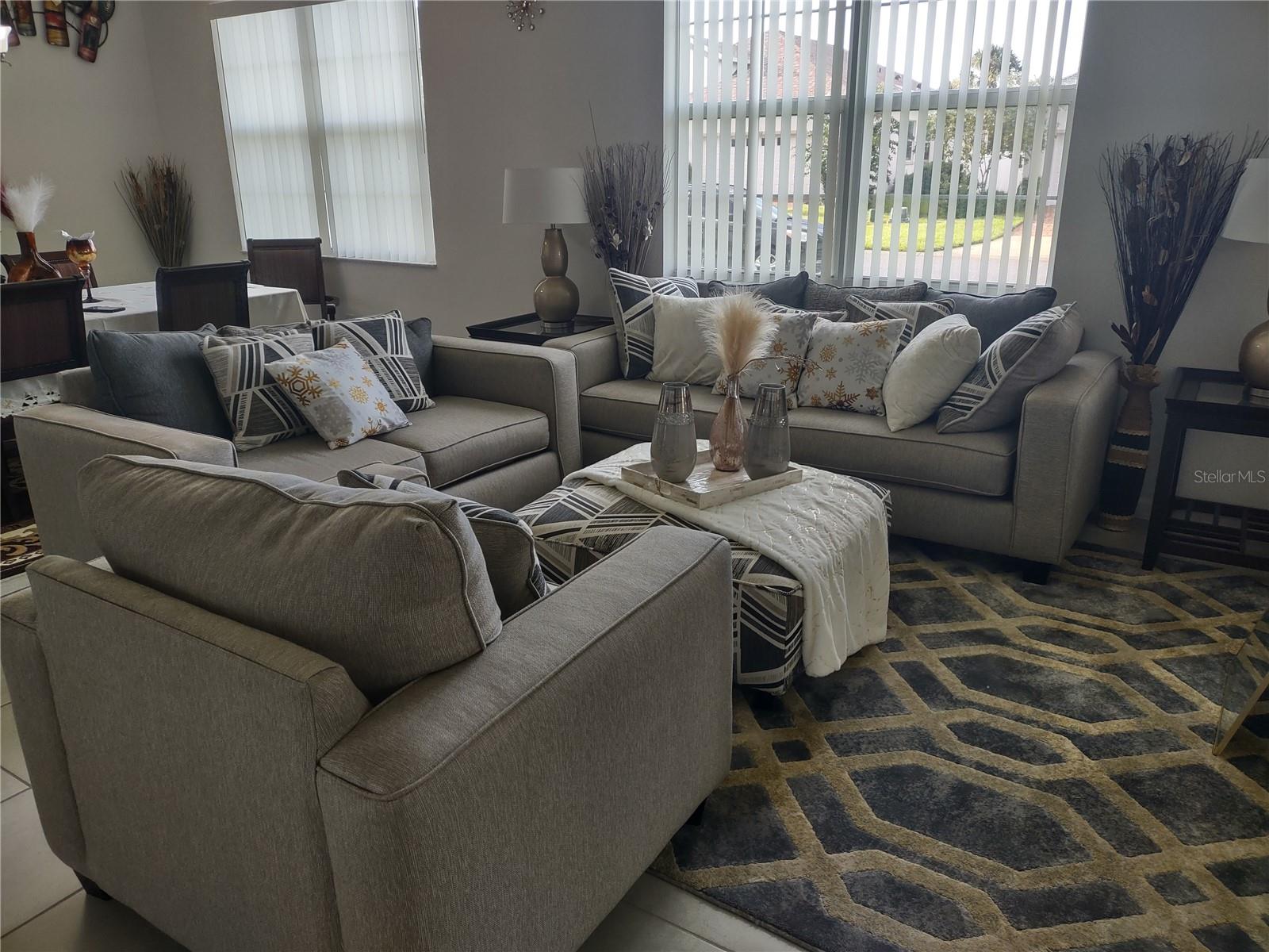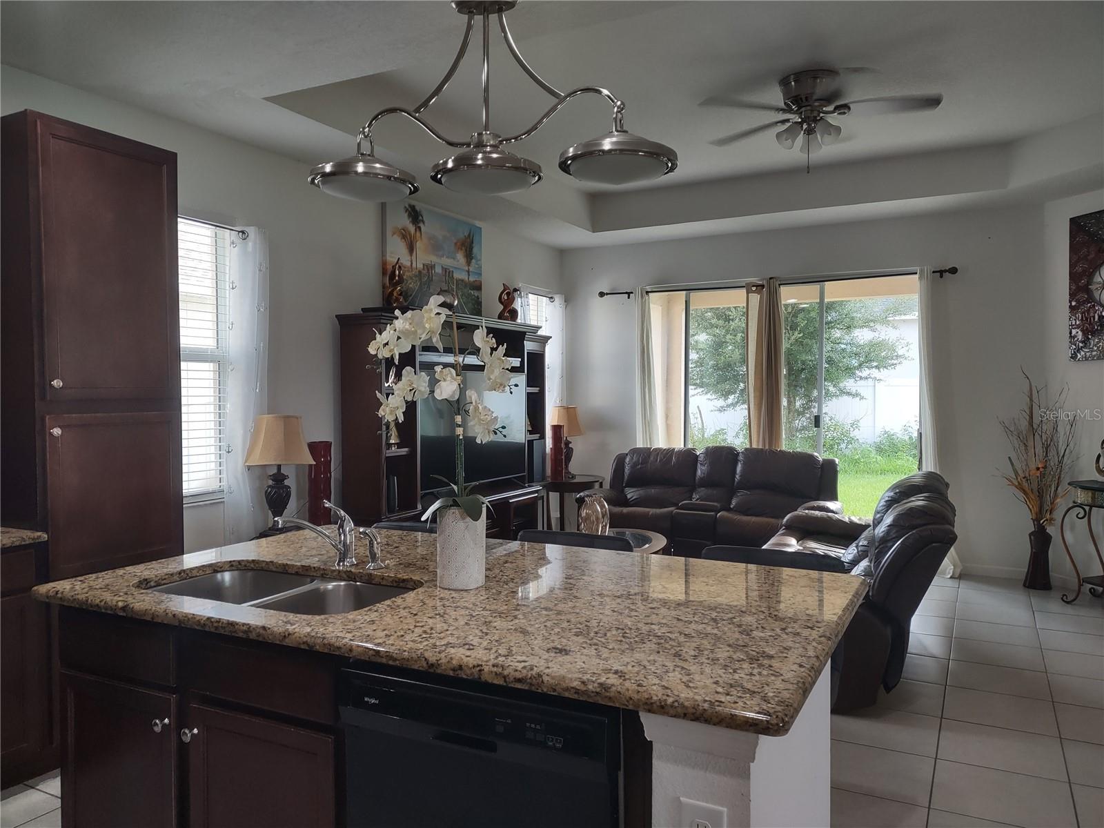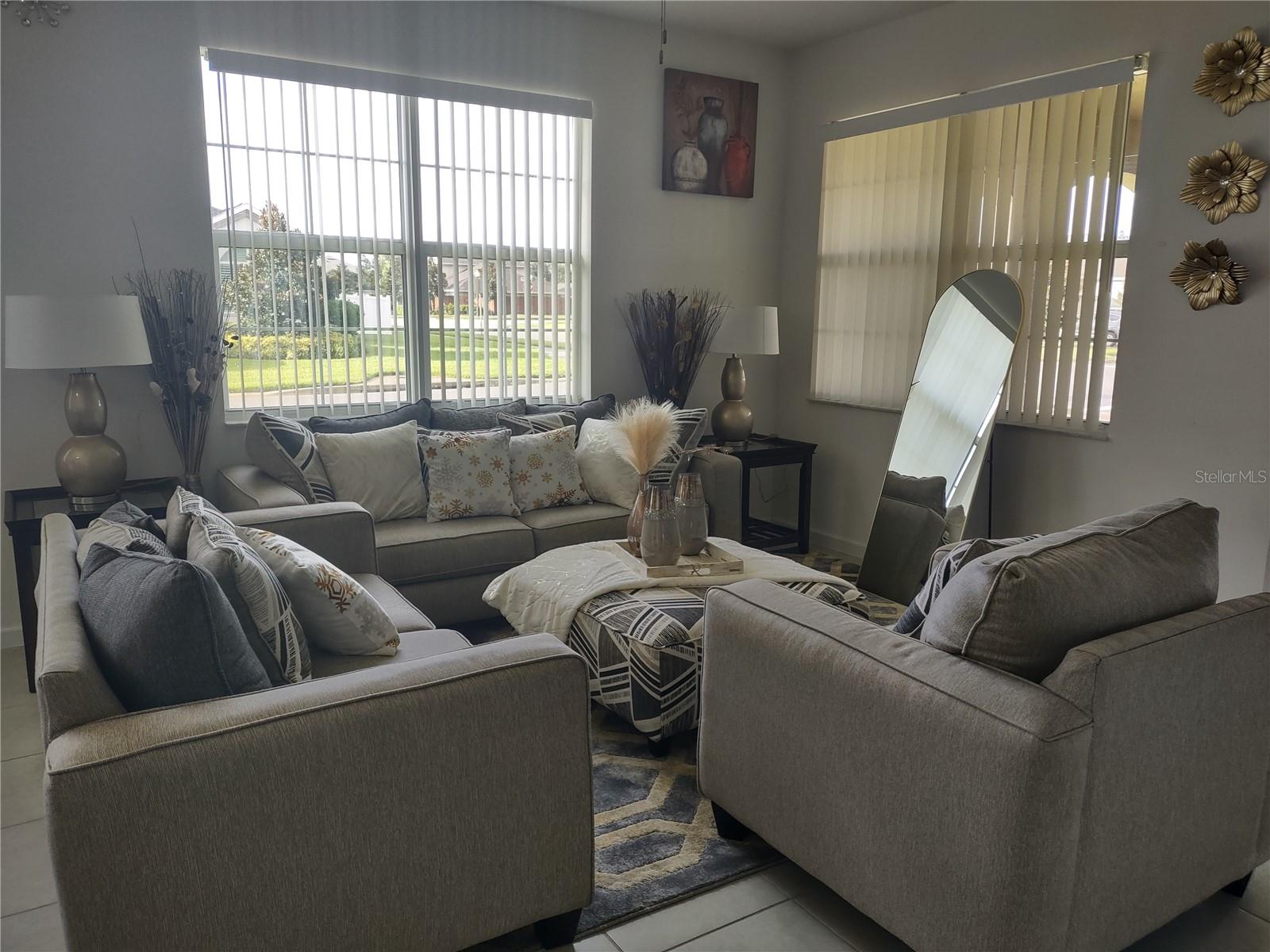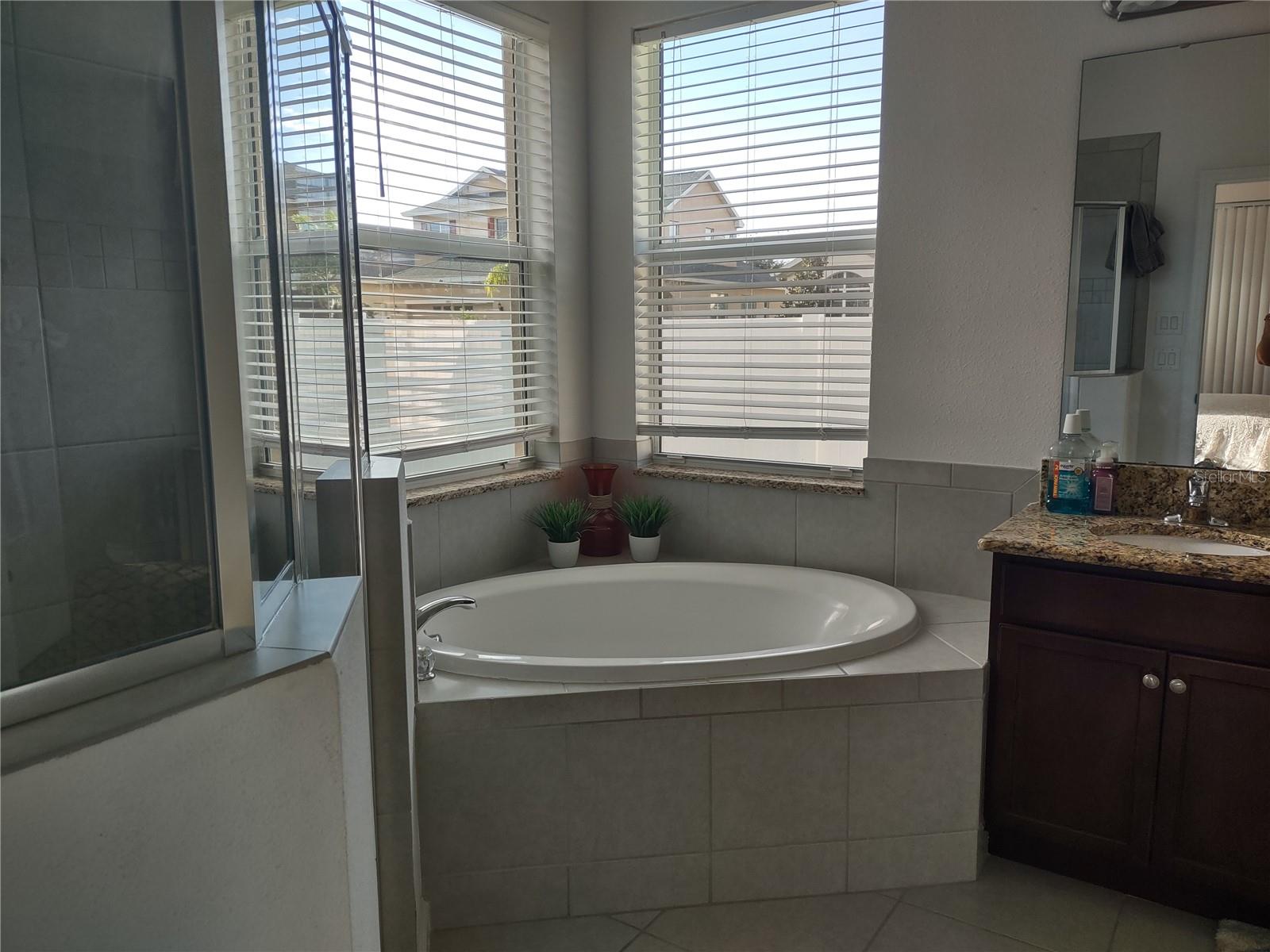 Just reduced. Now $10,000 price improvement from original listing price. Welcome to 18000 Placid Pl. A beautiful, well maintained corner lot, two story home located in the well sort out community of Sawgrass Bay. This residence is where beauty meets charm and functionality. This must see home adorned with so much natural light, beautiful tray ceilings, and ample windows and sliding glass doors, boasts 4 beds, 2 1/2 baths, living/dining combo and eat-in kitchen/great room combo. The kitchen has solid granite counters, center island and cherry 42' cabinets for storing all your kitchen needs. Need a pantry? the kitchen has one and a laundry room with utility sink right off the kitchen hall as well. Enter the beautifully lit master suite located on the main level with sliding glass door access to the patio as well; along with it's peaceful en-suite bath , shower, spacious walk in closet and luxurious garden tub for soaking after a long hard day. The second level hosts three more large bedrooms, beautiful cherry wood flooring and a large bathroom with a granite vanity and double sinks. Need a place for the young ones or guests? Enjoy the 2nd floor loft for additional entertainment. Outside the home you'll find a two car garage, paved driveway, walkway, and covered porch for relaxing in the evenings. The well manicured garden and spacious fenced yard, large enough for a pool and spa off your back patio awaits you for those great family gatherings. You can even have your guests catch those spectacular Disney fireworks right from your own driveway each night! If that is not enough, the community has its own features too! With amenities such as a pool, clubhouse, playground, volleyball and horseshoe pit as well as luscious greenery, walking trails and ponds for you to peacefully enjoy on those early morning or late evening walks. What is stopping you? Come visit this gem of a home and community. You will be truly delighted! Call Barbara today for your private tour. Let's make this your dream home. New roof 2023. Owner to verify all measurements and HOA documents. Please submit all offers in writing on Fl FarBar AS IS contract for Sale and Purchase.