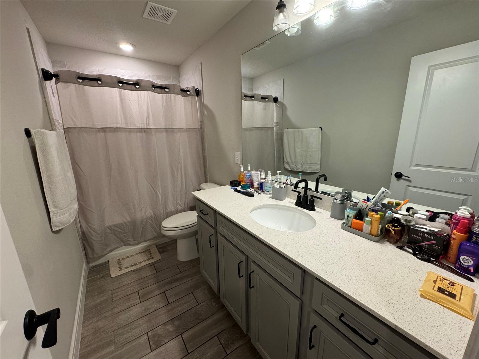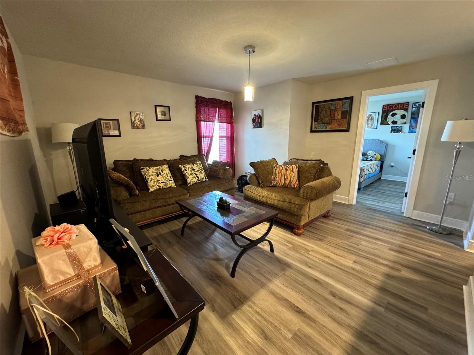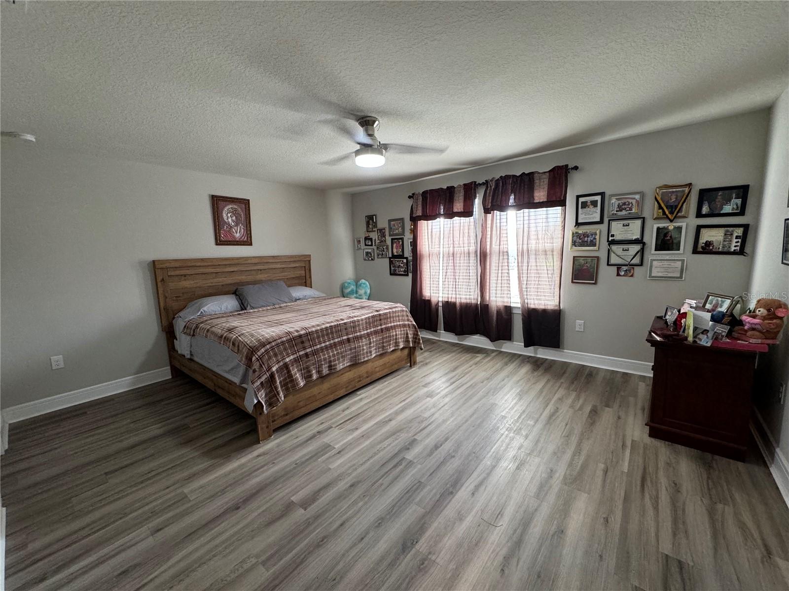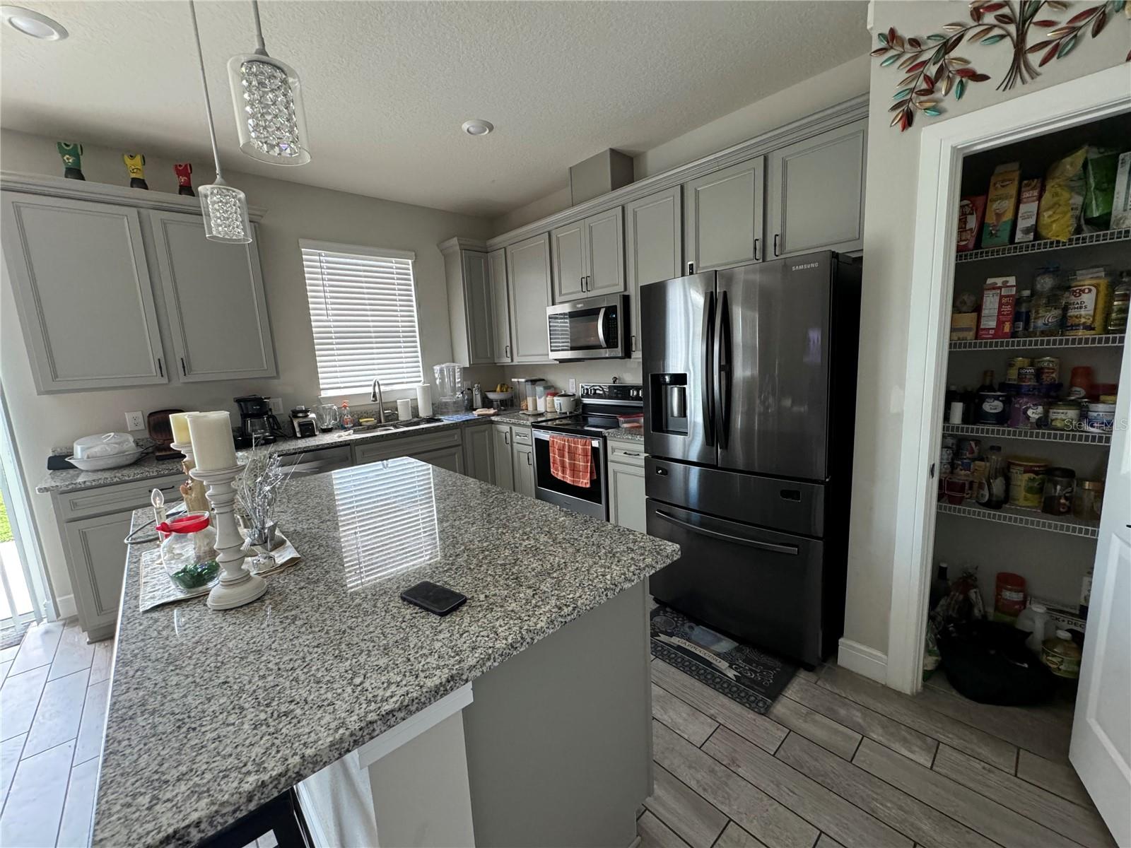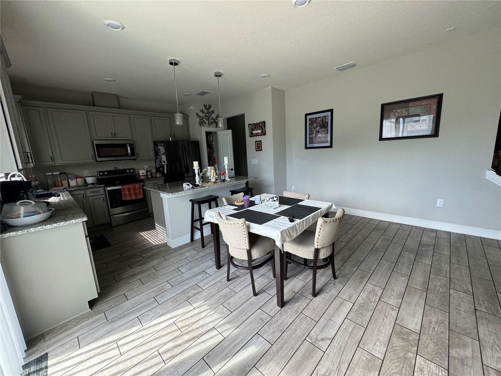 MOVE-IN READY in the Desirable Community of RIDGEVIEW! 5BDR - 3 BATH. The entire open-concept first floor has been finished with gorgeous luxury vinyl plank flooring. The kitchen features new stainless steel appliances, quartz countertops, and a generously sized center island, ideal for hosting gatherings. On Bedroom and a full bath complete the first floor. The second floor has the Primary bedroom with a spacious walk in closet and ensuite bathroom! There is a large loft area and two more bedrooms and the thoughtful plan includes an upstairs laundry room! The Ridgeview community offers a resort-style pool and playground, LOW MONTHLY HOA FEES and NO CDD!