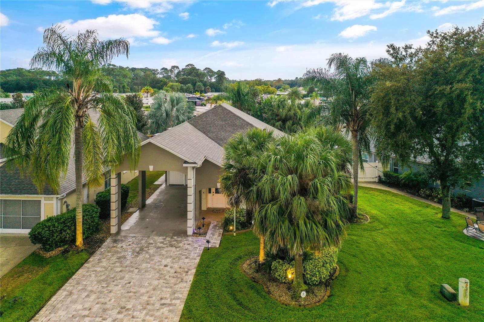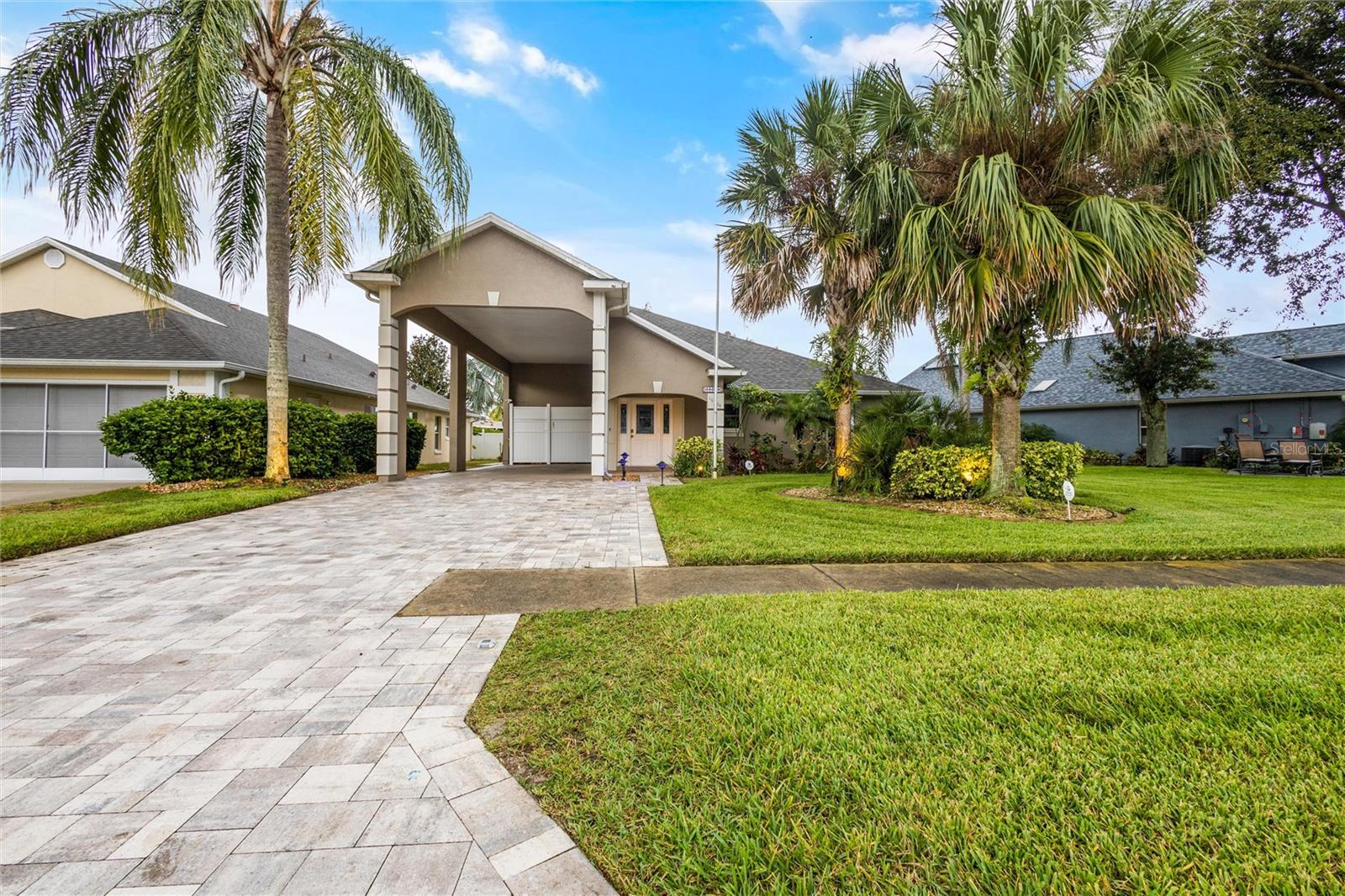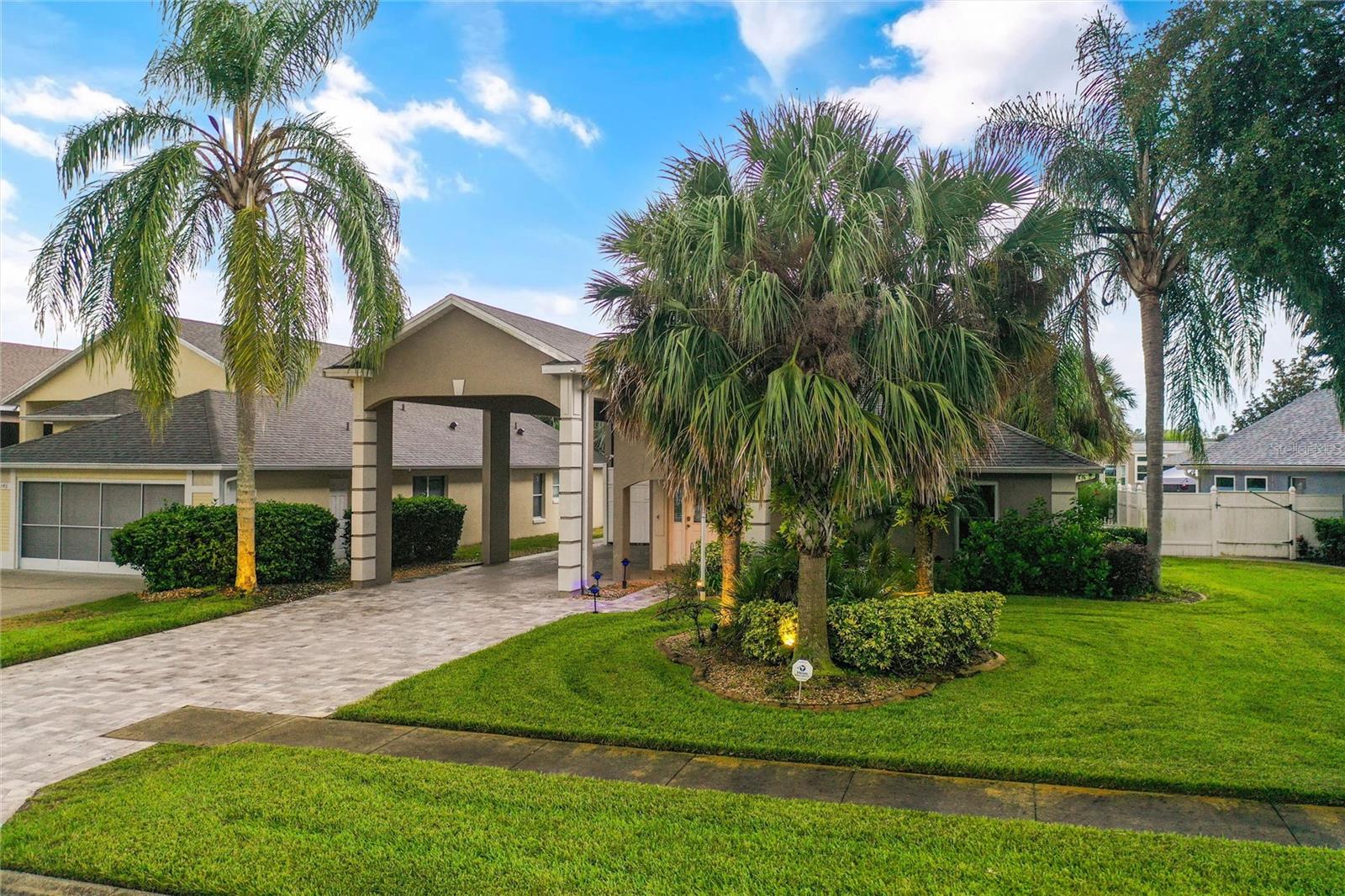 One or more photo(s) has been virtually staged. PARK your RV AT HOME in the coveted Citrus Highlands! DON’T MISS OUT on this RV Port Home. Five feet of port is currently used for private storage – this can stay or be removed. Expand your capacity to entertain by keeping a few guests in this 3 bed and 2 bath home and few in your RV/coach! A perfectly sized Florida Sunroom with separate AC Unit overlooks a well-manicured backyard with Pergola and corner Fountain. Other features include ceramic tile in wet areas, laminate in living & dining rooms, Kitchen with Solid Surface Counters, SS Appliances, and Tile Backsplash. Master Suite with 2 Closets, Ensuite Bath, and small private in-wall safe. Open concept Living with High Vaulted Ceilings. Inside Laundry, Tankless Hot Water Heater, Security System and Smart Home Features Throughout. COMMUNITY POOL and mailboxes are just two doors down! GOLF CART FRIENDLY community! Don’t Miss This One!
