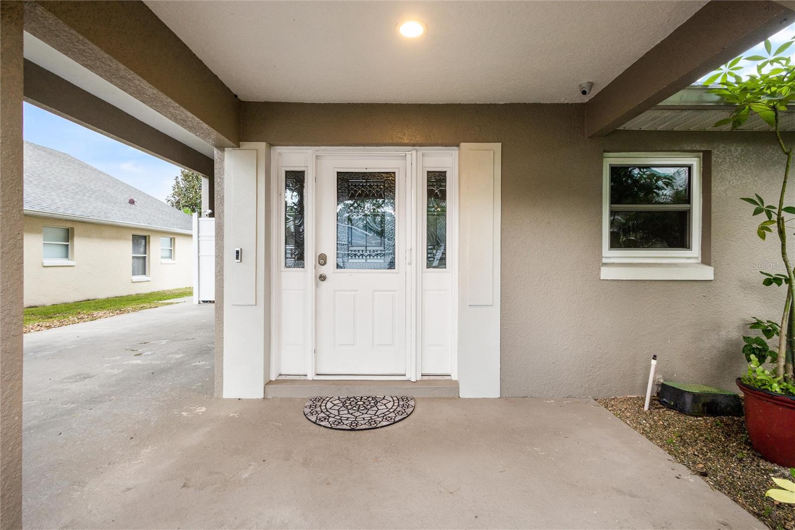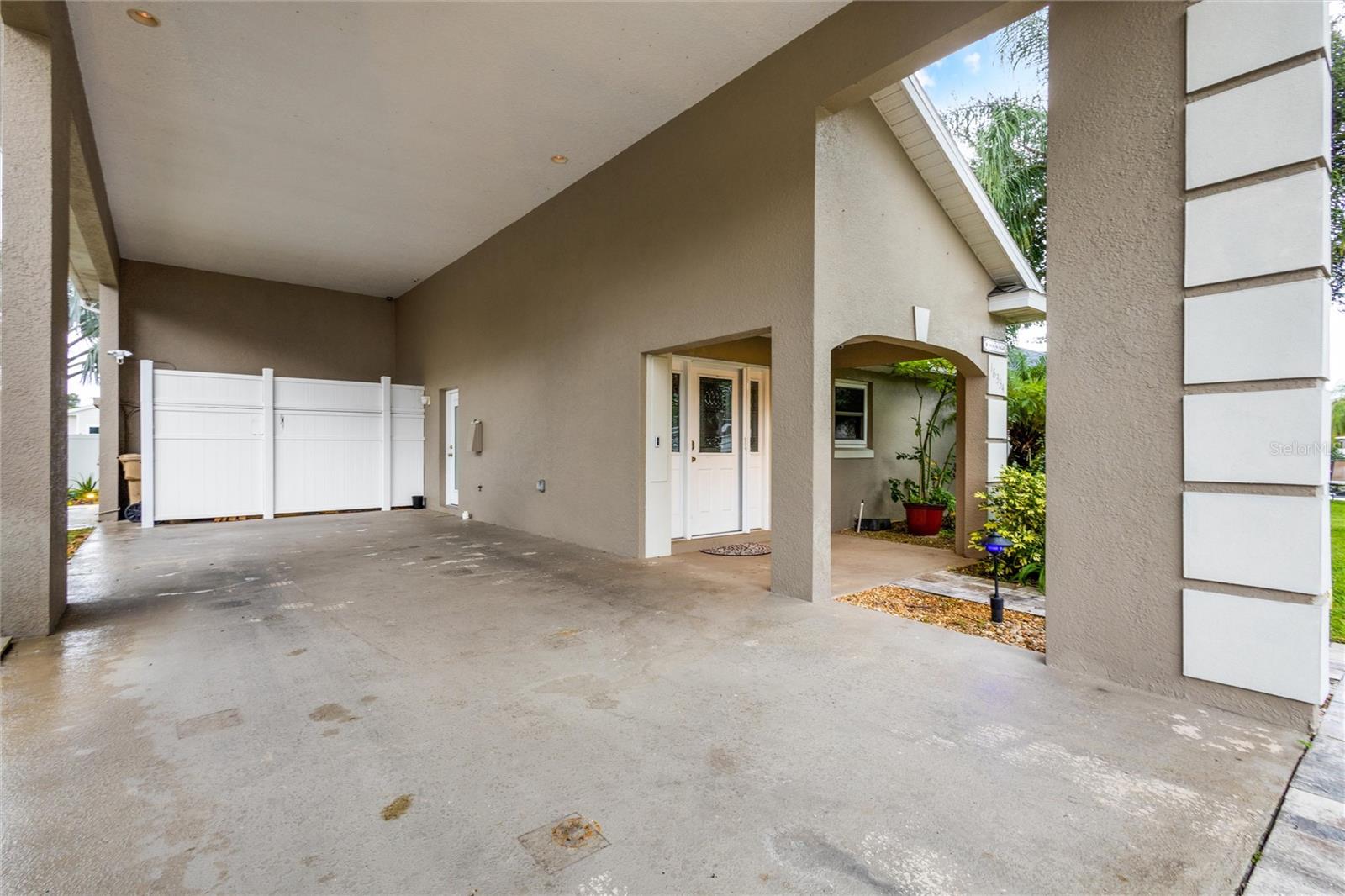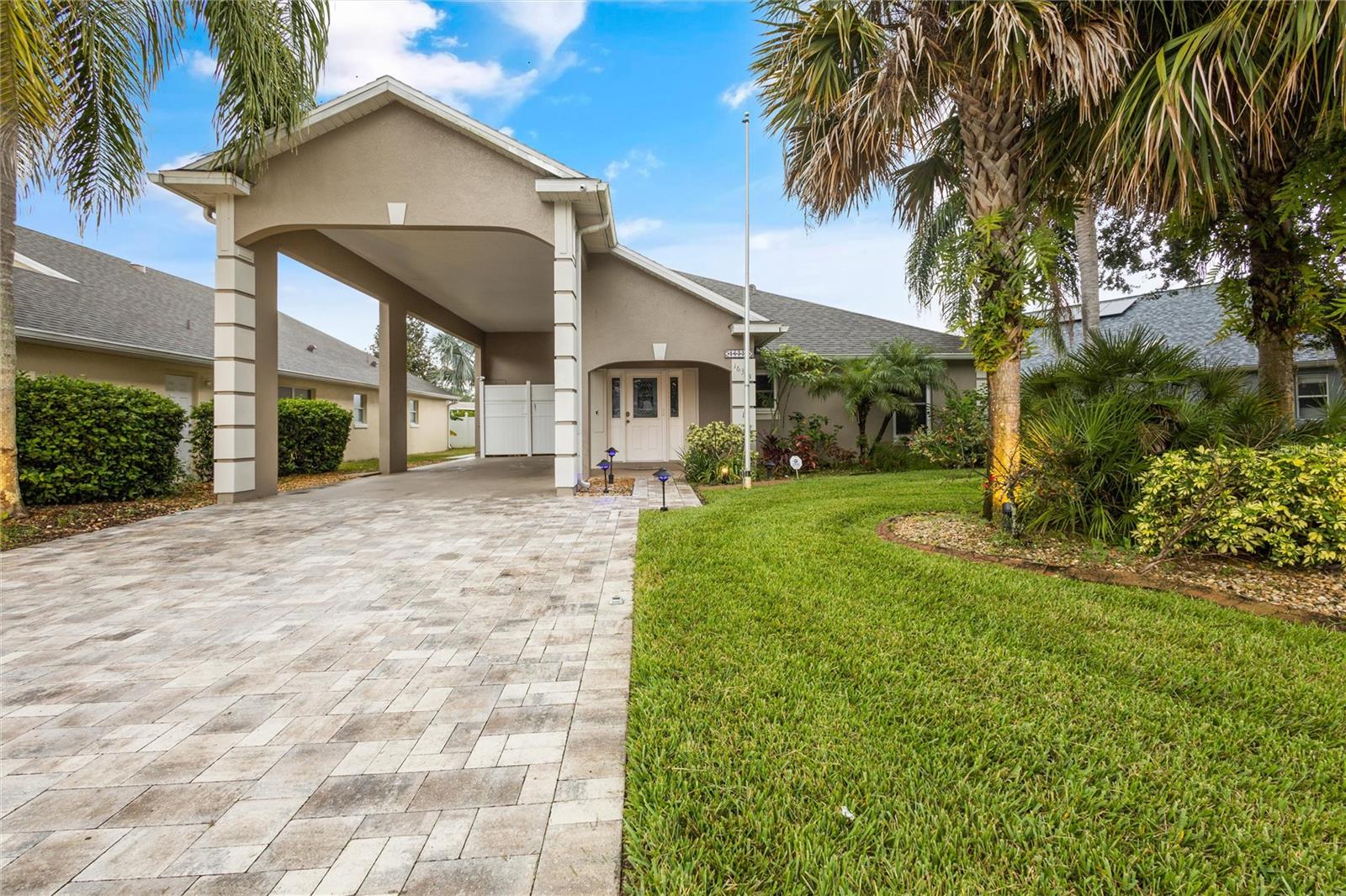 One or more photo(s) has been virtually staged. PARK your RV AT HOME in the coveted Citrus Highlands! DON’T MISS OUT on this RV Port Home. Five feet of port is currently used for private storage – this can stay or be removed. Expand your capacity to entertain by keeping a few guests in this 3 bed and 2 bath home and few in your RV/coach! A perfectly sized Florida Sunroom with separate AC Unit overlooks a well-manicured backyard with Pergola and corner Fountain. Other features include ceramic tile in wet areas, laminate in living & dining rooms, Kitchen with Solid Surface Counters, SS Appliances, and Tile Backsplash. Master Suite with 2 Closets, Ensuite Bath, and small private in-wall safe. Open concept Living with High Vaulted Ceilings. Inside Laundry, Tankless Hot Water Heater, Security System and Smart Home Features Throughout. COMMUNITY POOL and mailboxes are just two doors down! GOLF CART FRIENDLY community! Don’t Miss This One!