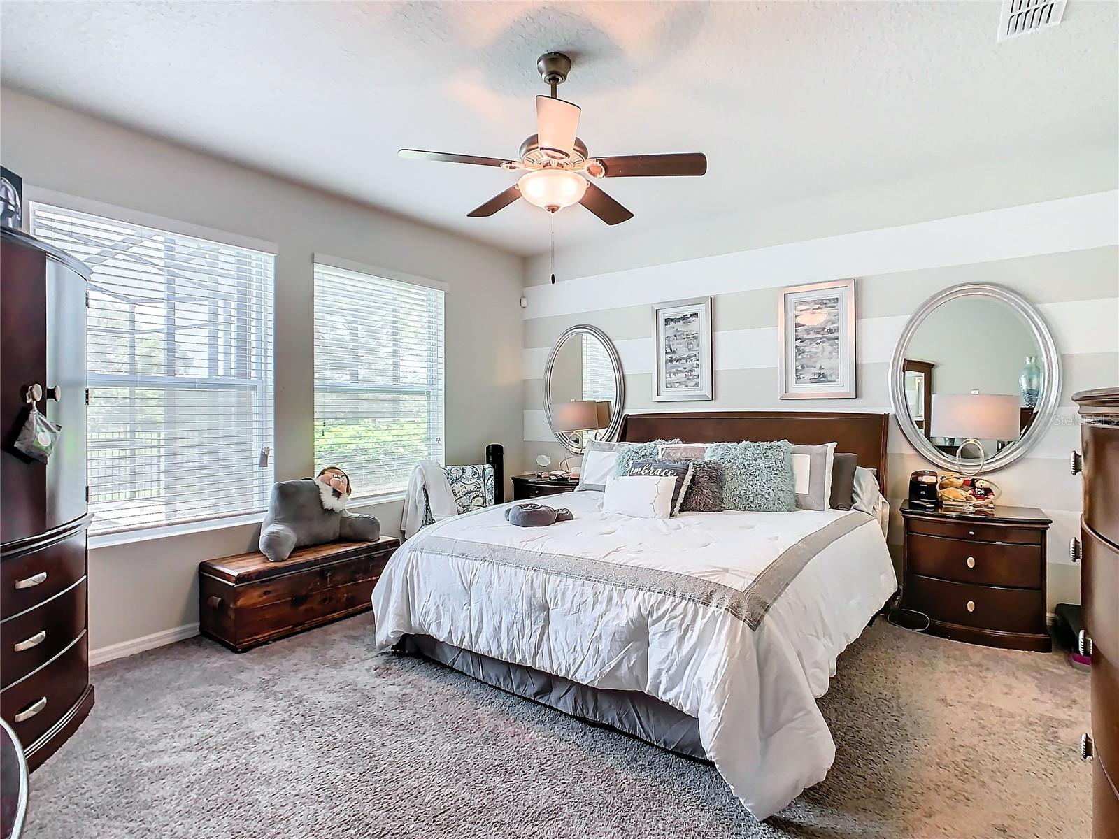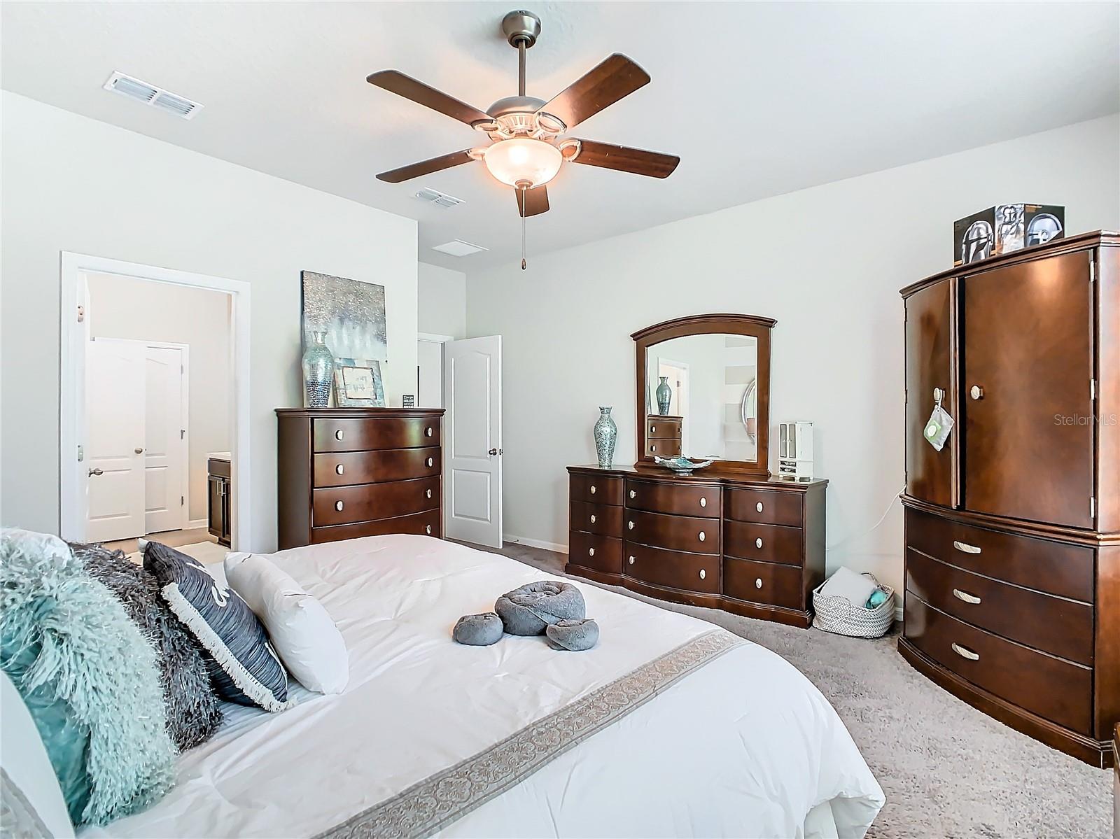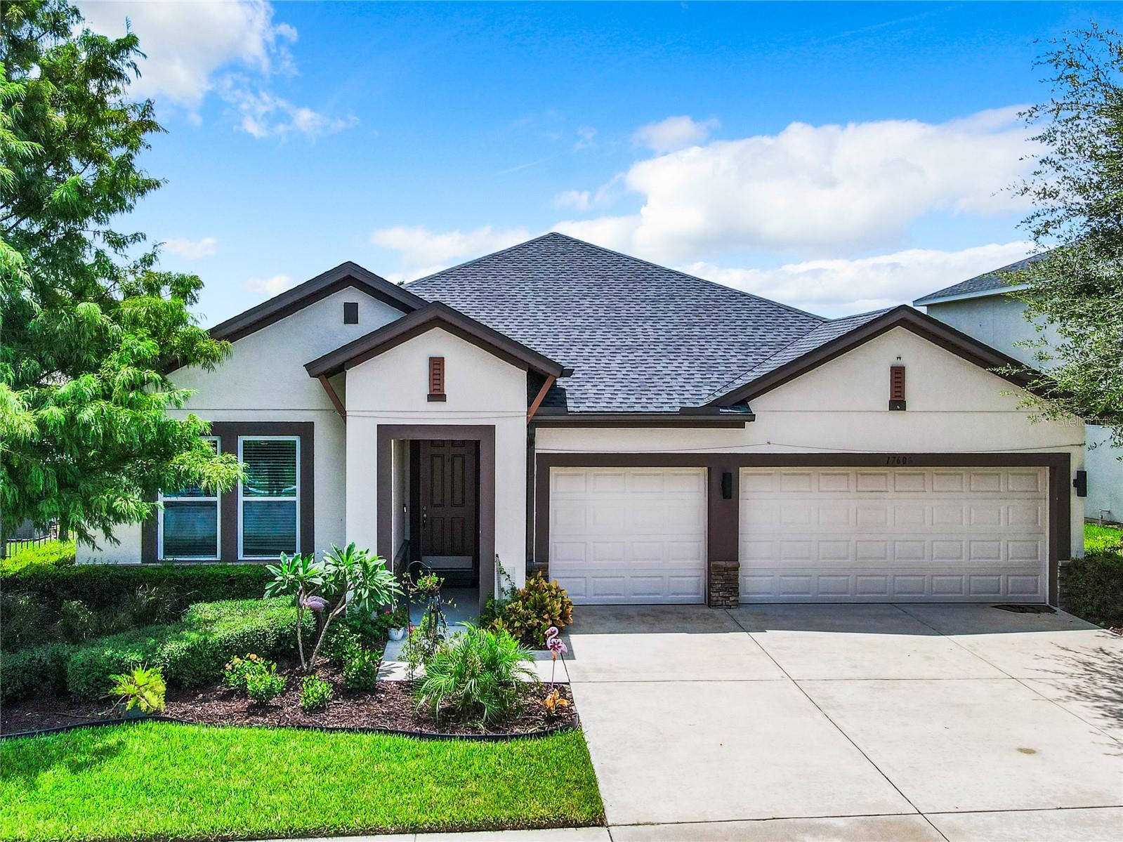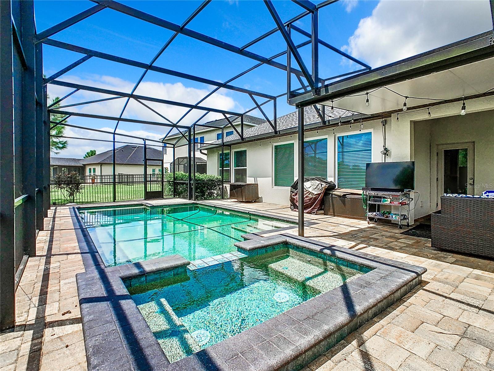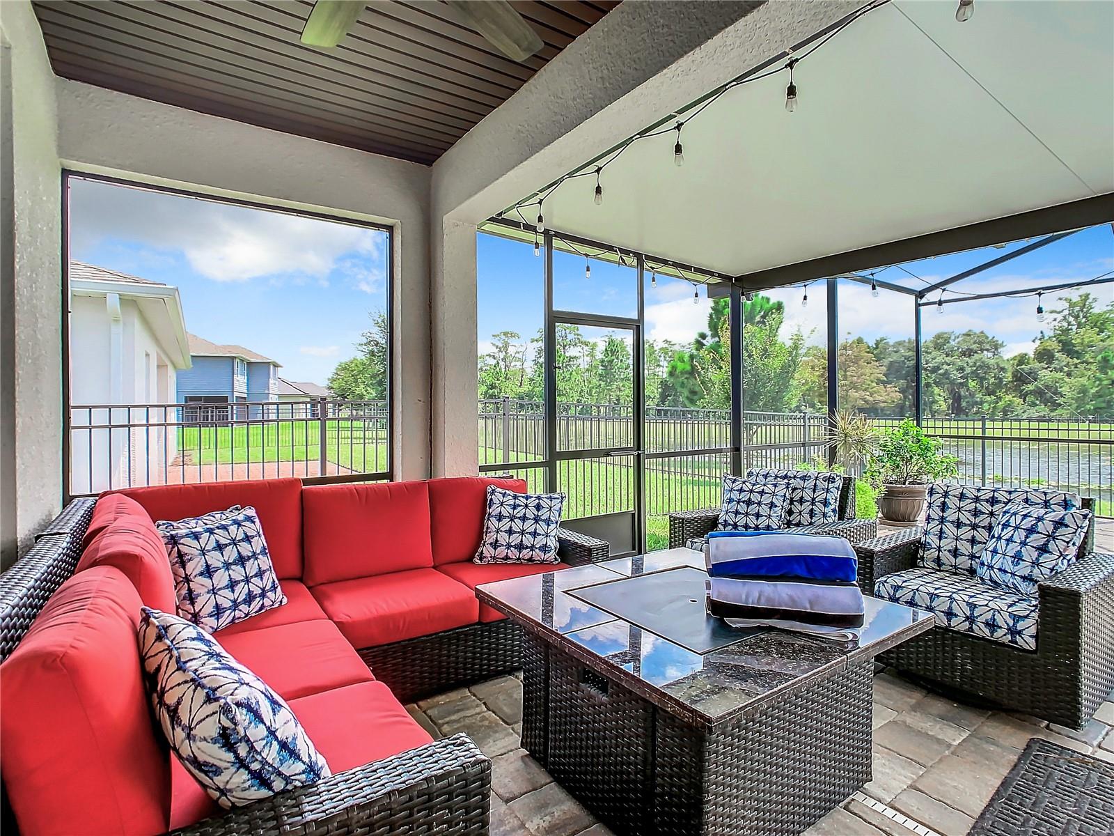 Florida living at its best—everything you could want. Four bedrooms, three bathrooms, a three-car garage, a private pool/spa overlooking a pond, no rear neighbors, and a fully fenced yard in the Gated Village 2 of Serenoa. Built in 2018, new roof in 2023 (due to 2023 hailstorm). Walk into your designer entry hall, with bedroom 4 and its ensuite bath 3 on the left (now used as an office). You will pass the formal dining room/flex room across from the mud entrance from the garage. Down their separate hallway are bathroom 2, bedrooms 2 and 3, and the inside laundry room. The large island is great for everyday meals and entertaining and opens up to your extensive family area, which overlooks your relaxing pool area. The saltwater pool/spa is heated with your private propane tank. Pool surround pavers have been recently sealed for low maintenance and enjoyment. Just sit back and enjoy the view and quiet of the pond and trees and no rear neighbors. The primary suite has a large walk-in shower, tons of cabinet and c