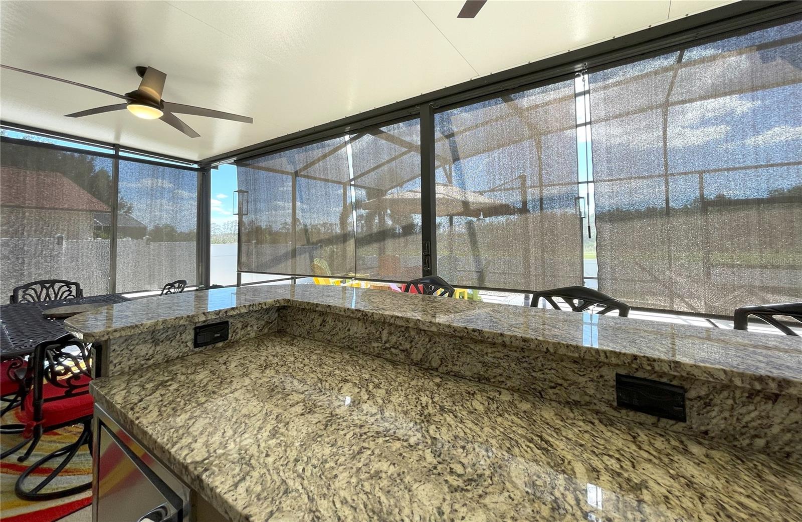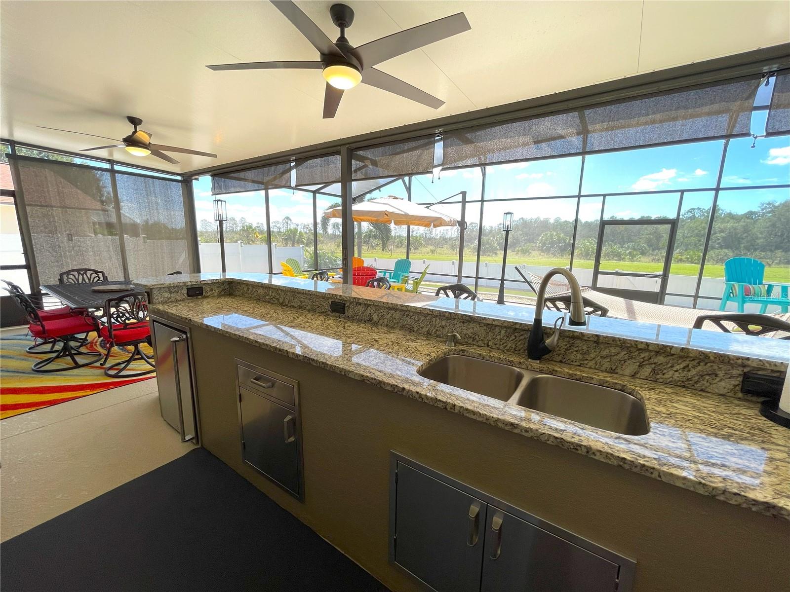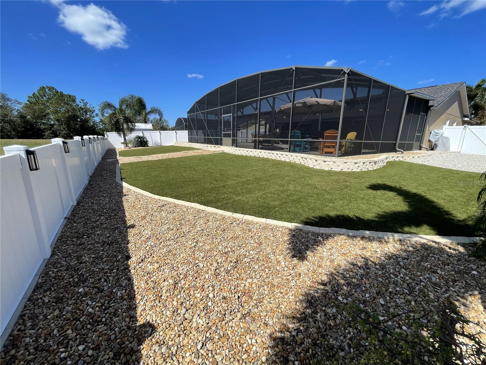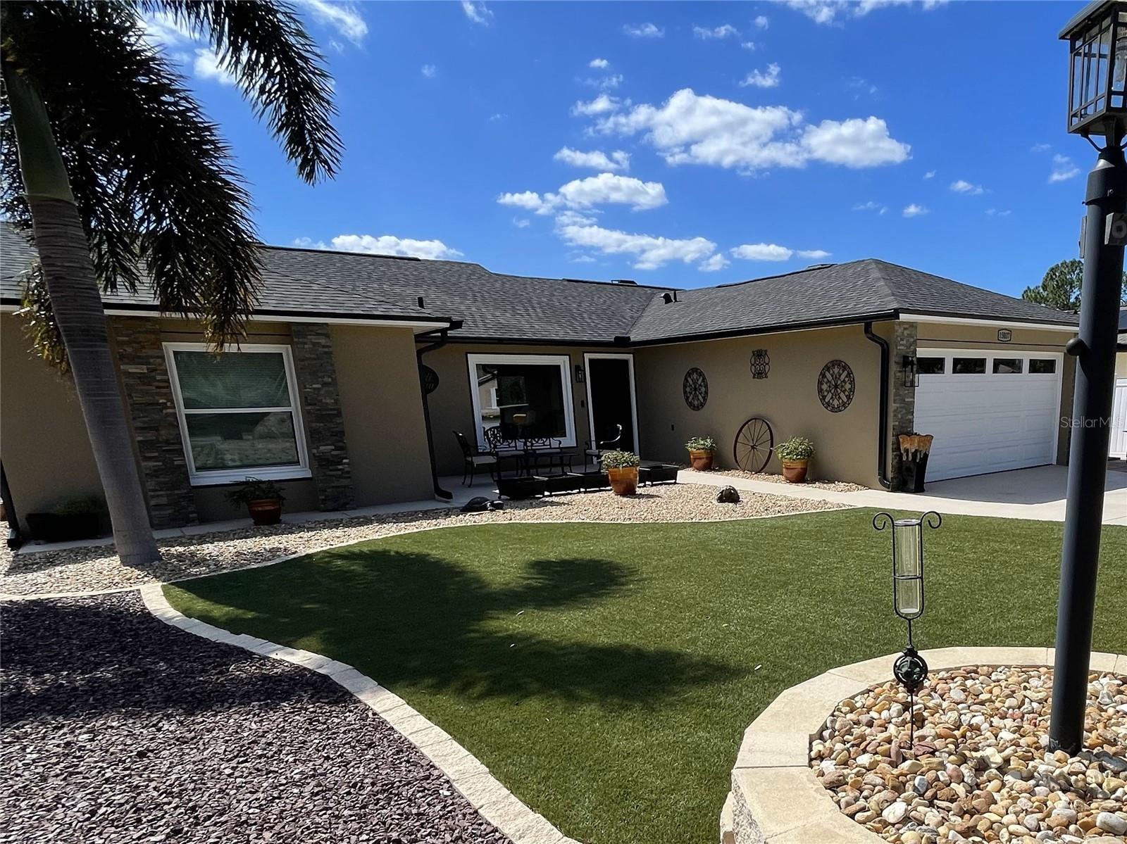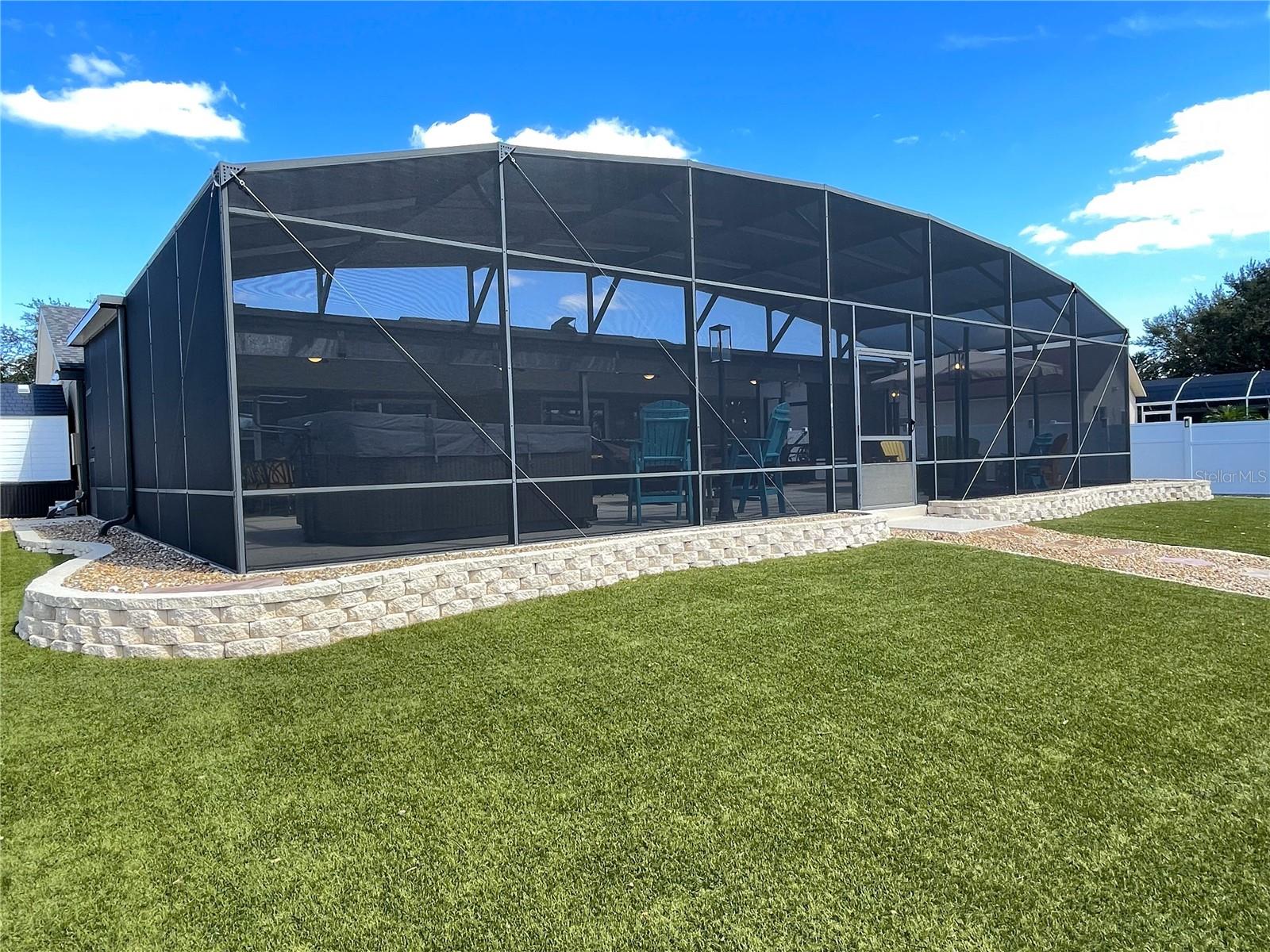 Don't miss out - ONLY ON THE MARKET THROUGH JANUARY 31, 2025! PRICE REDUCED! SELLER WILL CONTRIBUTE $5,000 towards buyer's closing costs! Never water or mow the lawn again - perfect for SNOWBIRDS! Enjoy the privacy and "elbow room" of a large QUARTER-ACRE LOT that sets Siena Ridge apart. Entertain guests on the spacious 1,560 SQ FT LANAI with conservation views and no rear neighbors. And that's just the beginning! This immaculate home with high-end upgrades throughout will be the last stop on your home-hunting journey. It features quartz countertops in the kitchen and baths, custom cabinetry throughout with under-cabinet lighting in the kitchen, a Rainsoft whole-house water filtration system, custom stacked-stone finished walls in the dining and primary BR, a finished garage that is any man's dream, a super-insulated garage door, and solar attic roof vents. One of the guest bedrooms features a murphy bed so that it can double as an office or craft room when not in use. The partially-covered lanai almost doubles the living space and offers an elegant outdoor kitchen with 2 refrigerators, grill and cooktop, granite countertops, two natural gas fire pits, a Jacuzzi spa that seats 8, a huge 70" TV for watching your favorite team, crank shades that lower for coolness and privacy, plenty of dining space, ceiling fans and beautiful bar lighting. The fully-fenced back yard features a 10' side gate and a 4x8 storage shed. The home is wired for a 9,000 watt-capacity generator hookup for peace of mind. NEW ROOF 2023! Vinyl double-pane windows for energy efficiency are found throughout. And you'll love the artificial turf in the front and back yards that keep your property looking pristine year-round with little to no maintenance. Indoor and outdoor furniture, art and some decor also available separately. Easy access to Disney parks, just 4 miles from Lake Louisa State Park and the up-and-coming Wellness Way, and 5 miles from Orlando Health South Lake Hospital. Groceries are just one traffic light away. Come make this your ultimate Florida retreat!