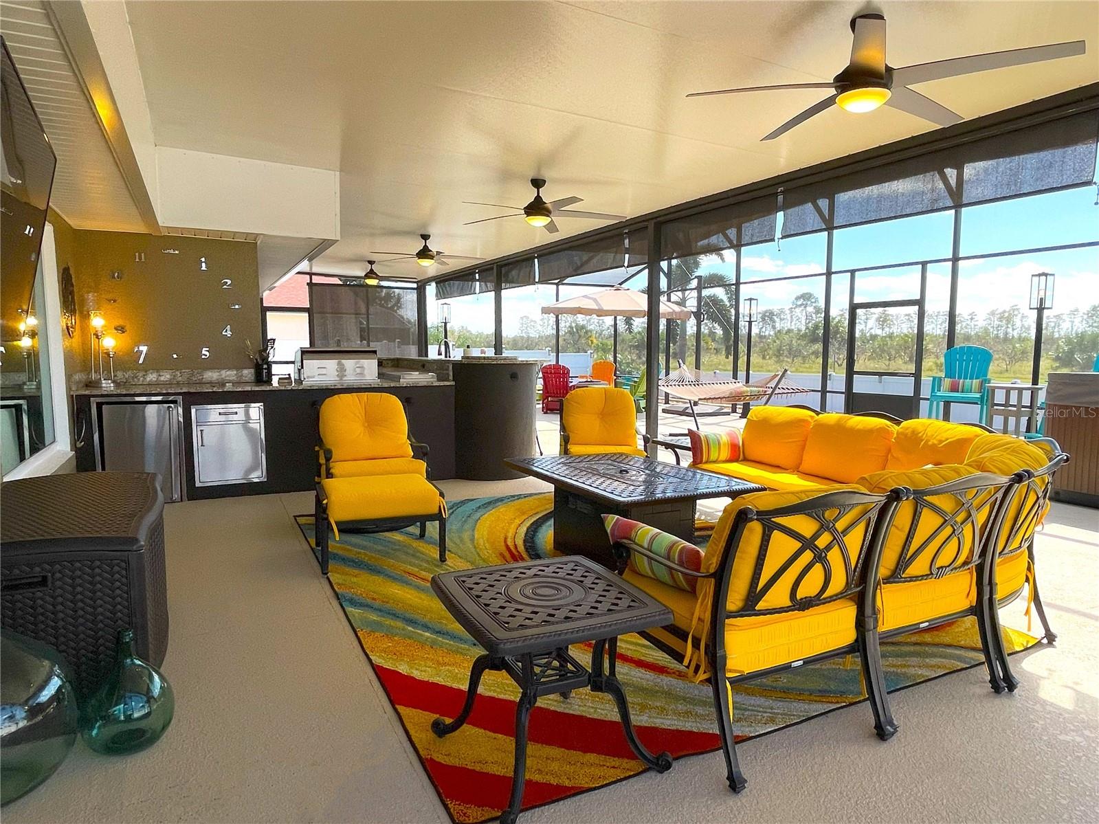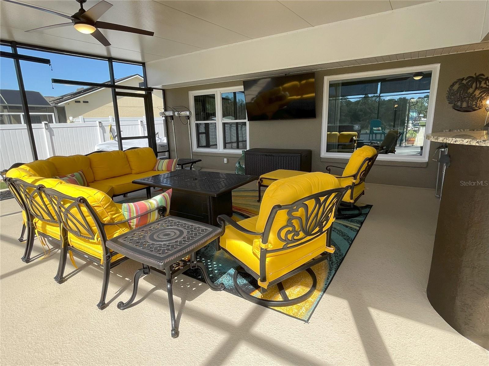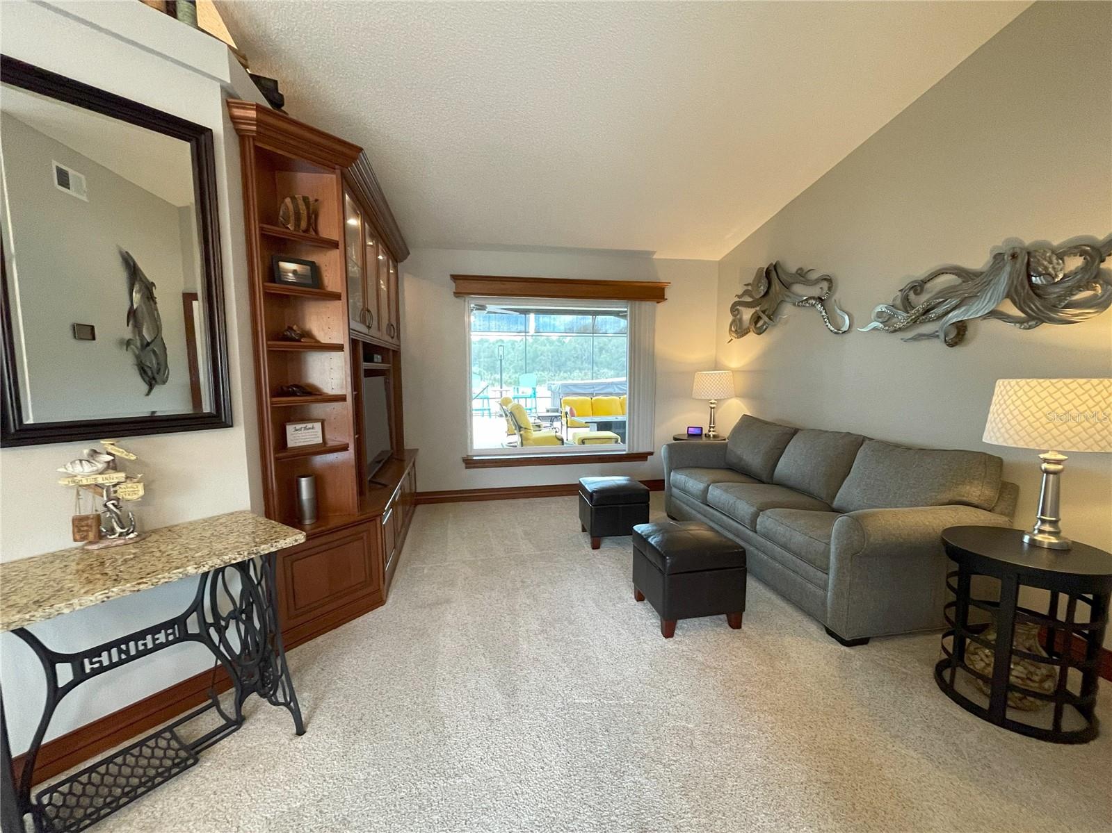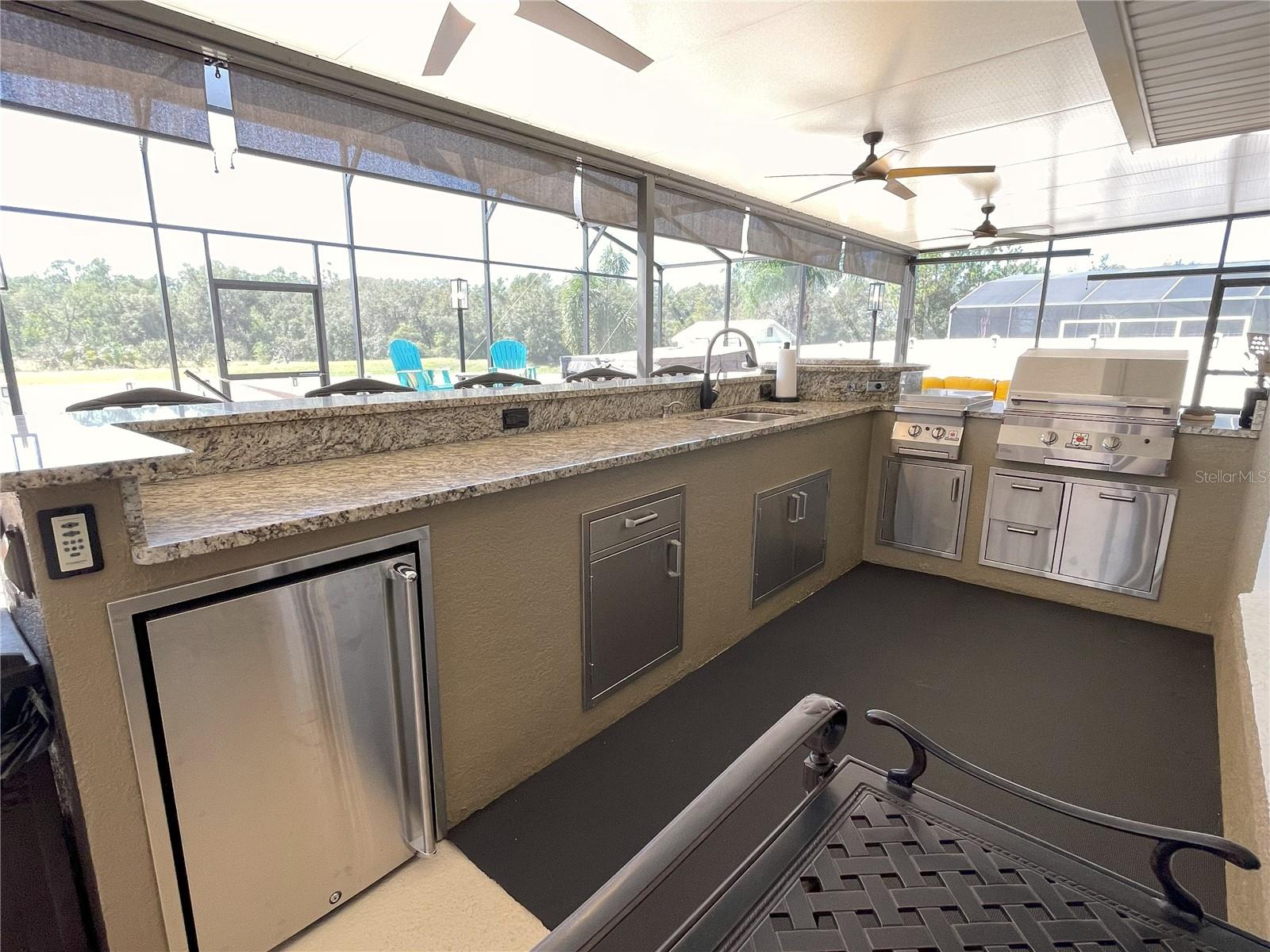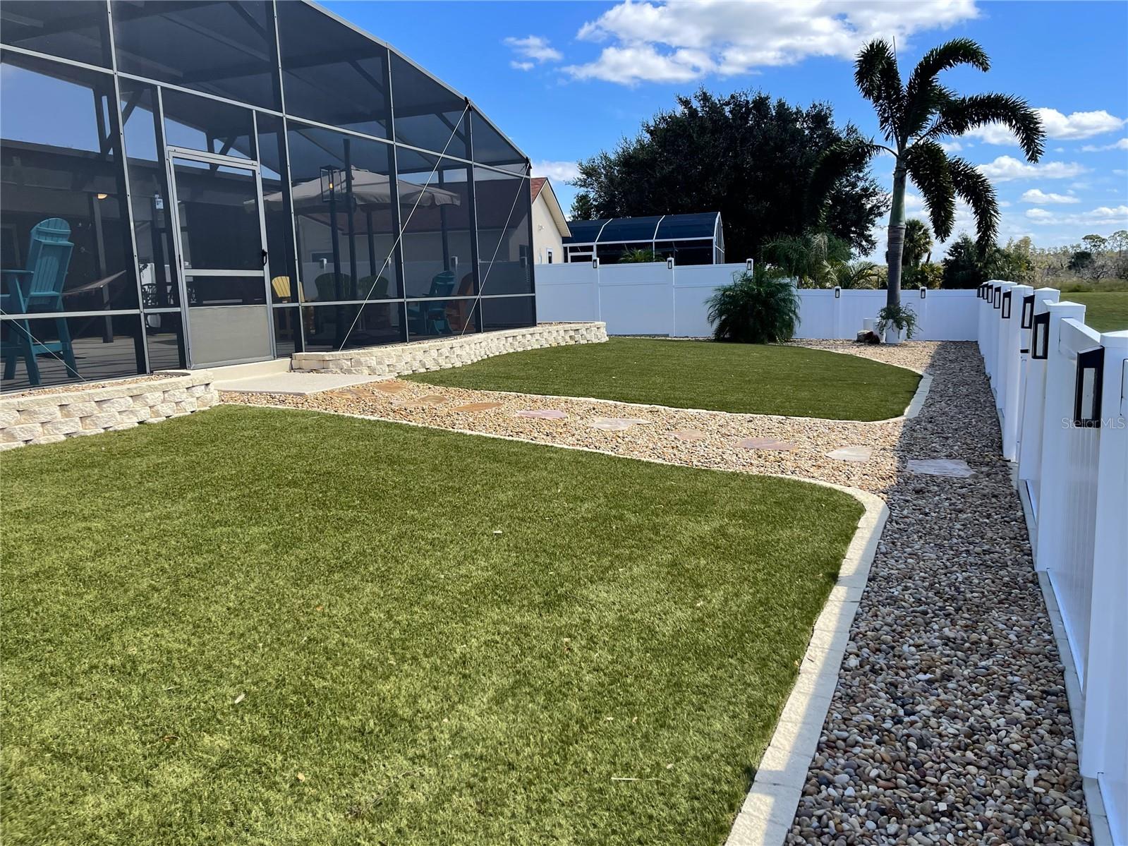 Don't miss out - ONLY ON THE MARKET THROUGH JANUARY 31, 2025! PRICE REDUCED! SELLER WILL CONTRIBUTE $5,000 towards buyer's closing costs! Never water or mow the lawn again - perfect for SNOWBIRDS! Enjoy the privacy and "elbow room" of a large QUARTER-ACRE LOT that sets Siena Ridge apart. Entertain guests on the spacious 1,560 SQ FT LANAI with conservation views and no rear neighbors. And that's just the beginning! This immaculate home with high-end upgrades throughout will be the last stop on your home-hunting journey. It features quartz countertops in the kitchen and baths, custom cabinetry throughout with under-cabinet lighting in the kitchen, a Rainsoft whole-house water filtration system, custom stacked-stone finished walls in the dining and primary BR, a finished garage that is any man's dream, a super-insulated garage door, and solar attic roof vents. One of the guest bedrooms features a murphy bed so that it can double as an office or craft room when not in use. The partially-covered lanai almost doubles the living space and offers an elegant outdoor kitchen with 2 refrigerators, grill and cooktop, granite countertops, two natural gas fire pits, a Jacuzzi spa that seats 8, a huge 70" TV for watching your favorite team, crank shades that lower for coolness and privacy, plenty of dining space, ceiling fans and beautiful bar lighting. The fully-fenced back yard features a 10' side gate and a 4x8 storage shed. The home is wired for a 9,000 watt-capacity generator hookup for peace of mind. NEW ROOF 2023! Vinyl double-pane windows for energy efficiency are found throughout. And you'll love the artificial turf in the front and back yards that keep your property looking pristine year-round with little to no maintenance. Indoor and outdoor furniture, art and some decor also available separately. Easy access to Disney parks, just 4 miles from Lake Louisa State Park and the up-and-coming Wellness Way, and 5 miles from Orlando Health South Lake Hospital. Groceries are just one traffic light away. Come make this your ultimate Florida retreat!