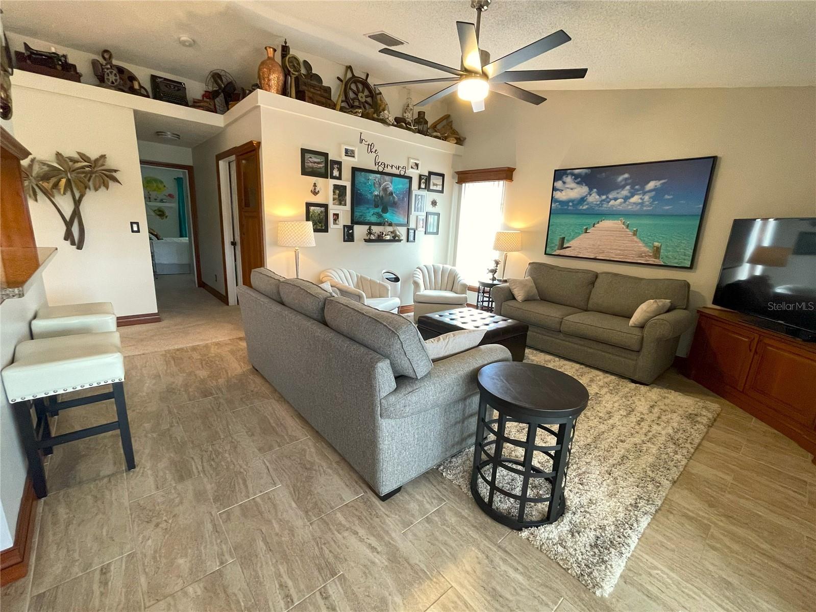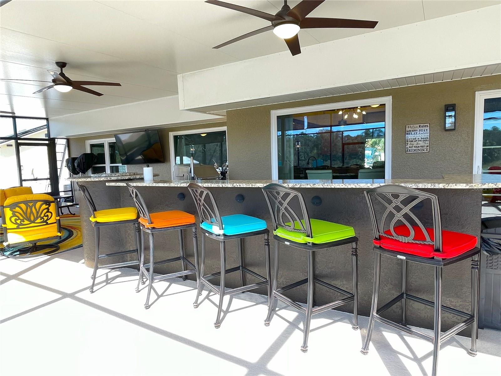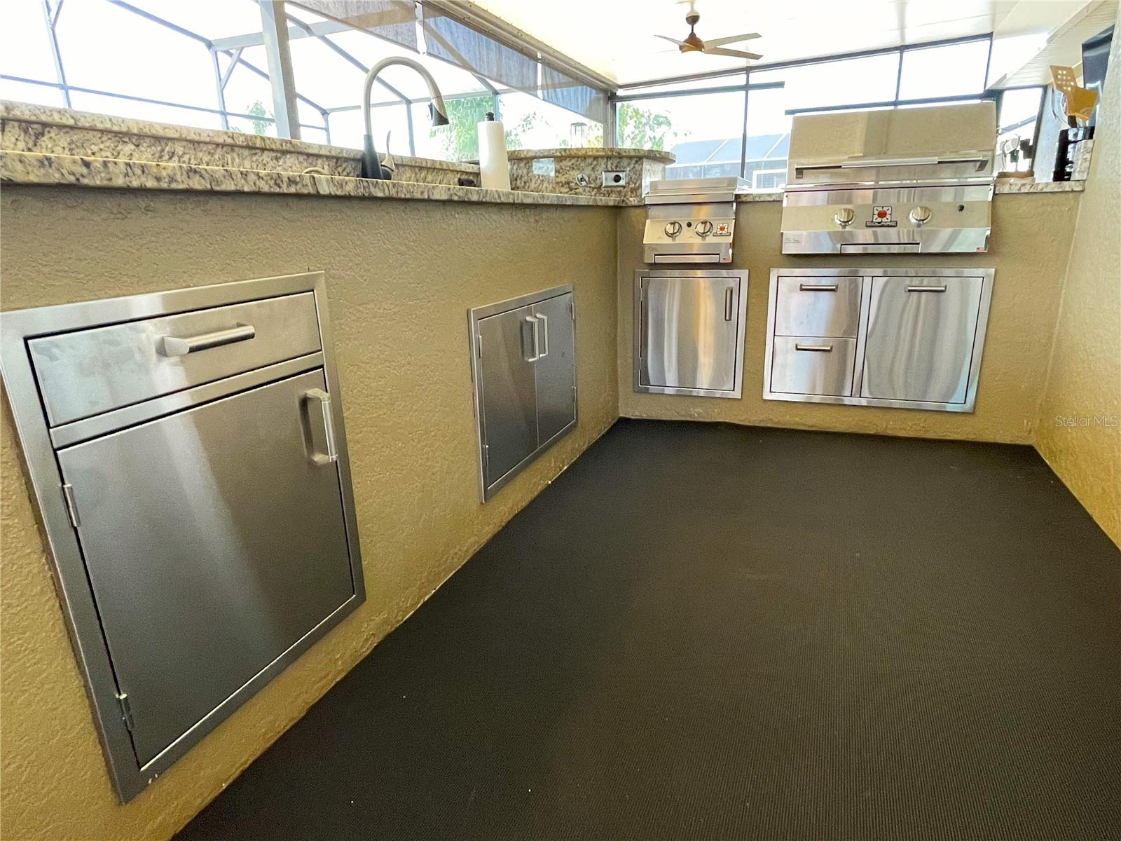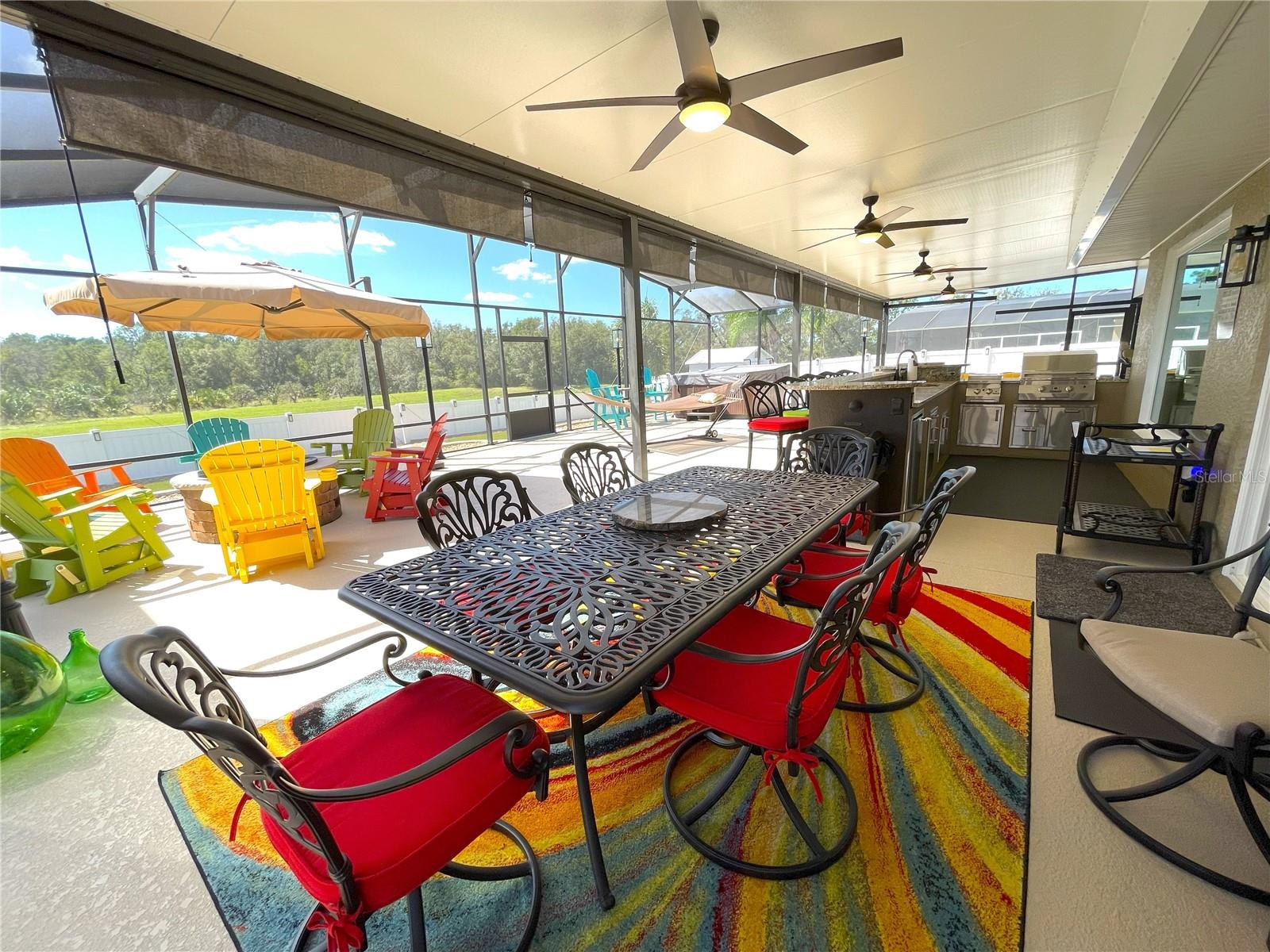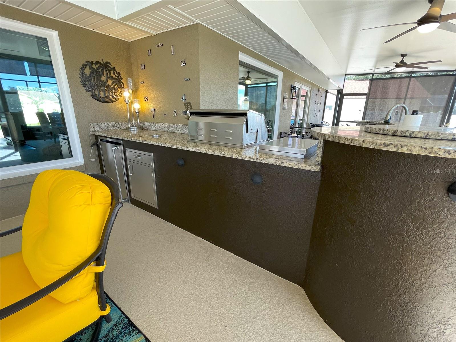 Don't miss out - ONLY ON THE MARKET THROUGH JANUARY 31, 2025! PRICE REDUCED! SELLER WILL CONTRIBUTE $5,000 towards buyer's closing costs! Never water or mow the lawn again - perfect for SNOWBIRDS! Enjoy the privacy and "elbow room" of a large QUARTER-ACRE LOT that sets Siena Ridge apart. Entertain guests on the spacious 1,560 SQ FT LANAI with conservation views and no rear neighbors. And that's just the beginning! This immaculate home with high-end upgrades throughout will be the last stop on your home-hunting journey. It features quartz countertops in the kitchen and baths, custom cabinetry throughout with under-cabinet lighting in the kitchen, a Rainsoft whole-house water filtration system, custom stacked-stone finished walls in the dining and primary BR, a finished garage that is any man's dream, a super-insulated garage door, and solar attic roof vents. One of the guest bedrooms features a murphy bed so that it can double as an office or craft room when not in use. The partially-covered lanai almost doubles the living space and offers an elegant outdoor kitchen with 2 refrigerators, grill and cooktop, granite countertops, two natural gas fire pits, a Jacuzzi spa that seats 8, a huge 70" TV for watching your favorite team, crank shades that lower for coolness and privacy, plenty of dining space, ceiling fans and beautiful bar lighting. The fully-fenced back yard features a 10' side gate and a 4x8 storage shed. The home is wired for a 9,000 watt-capacity generator hookup for peace of mind. NEW ROOF 2023! Vinyl double-pane windows for energy efficiency are found throughout. And you'll love the artificial turf in the front and back yards that keep your property looking pristine year-round with little to no maintenance. Indoor and outdoor furniture, art and some decor also available separately. Easy access to Disney parks, just 4 miles from Lake Louisa State Park and the up-and-coming Wellness Way, and 5 miles from Orlando Health South Lake Hospital. Groceries are just one traffic light away. Come make this your ultimate Florida retreat!