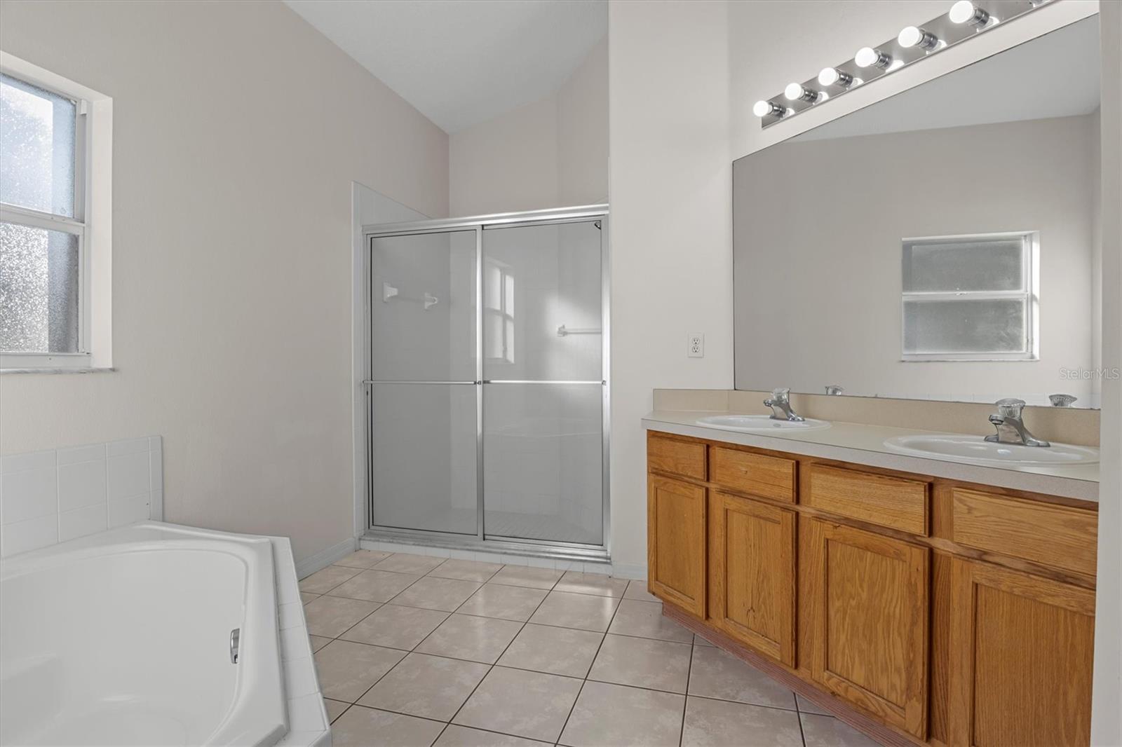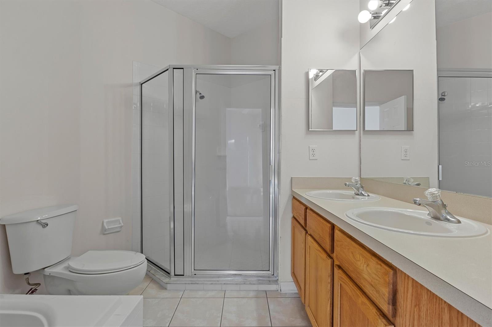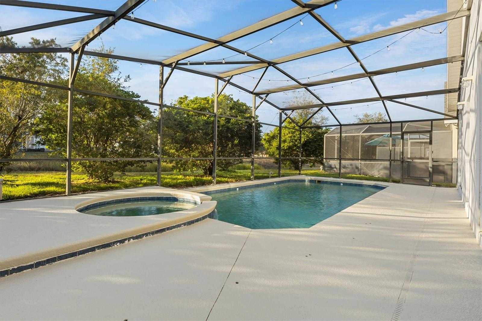 One or more photo(s) has been virtually staged. Nestled in the sought-after Glenbrook community, this spacious 4-bedroom, 3.5-bathroom single-family home is ideal for residential living, vacation getaways, or as a second home. Located just a short drive from Disney, it offers the perfect balance of comfort, convenience, and Florida charm. This home features two full primary suites, each with an en-suite bathroom designed for relaxation and convenience. Both include a luxurious tub, a separate shower, double sinks, and walk-in closets. The great room opens seamlessly to the outdoors through double slider patio doors, leading to a private backyard oasis with an in-ground pool and spa. For added convenience, a dedicated pool bathroom can be accessed directly from the pool deck. The fully equipped kitchen is well-appointed with a breakfast bar and island, providing a central space for cooking, dining, and entertaining. Built-in cabinets in the great room add both functionality and style, making it a perfect spot for family gatherings or relaxing evenings. HOA takes care of essential services such as lawn maintenance, internet, and cable TV, allowing homeowners to focus on enjoying life. The community also features a clubhouse with additional amenities, making it a hub for social and recreational activities. Conveniently located just minutes from Disney and other popular attractions, this home is perfectly positioned to serve as a primary residence, vacation retreat, or second home. Experience the charm and convenience of Glenbrook living—schedule a showing today!