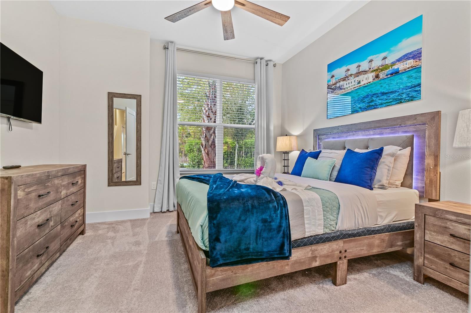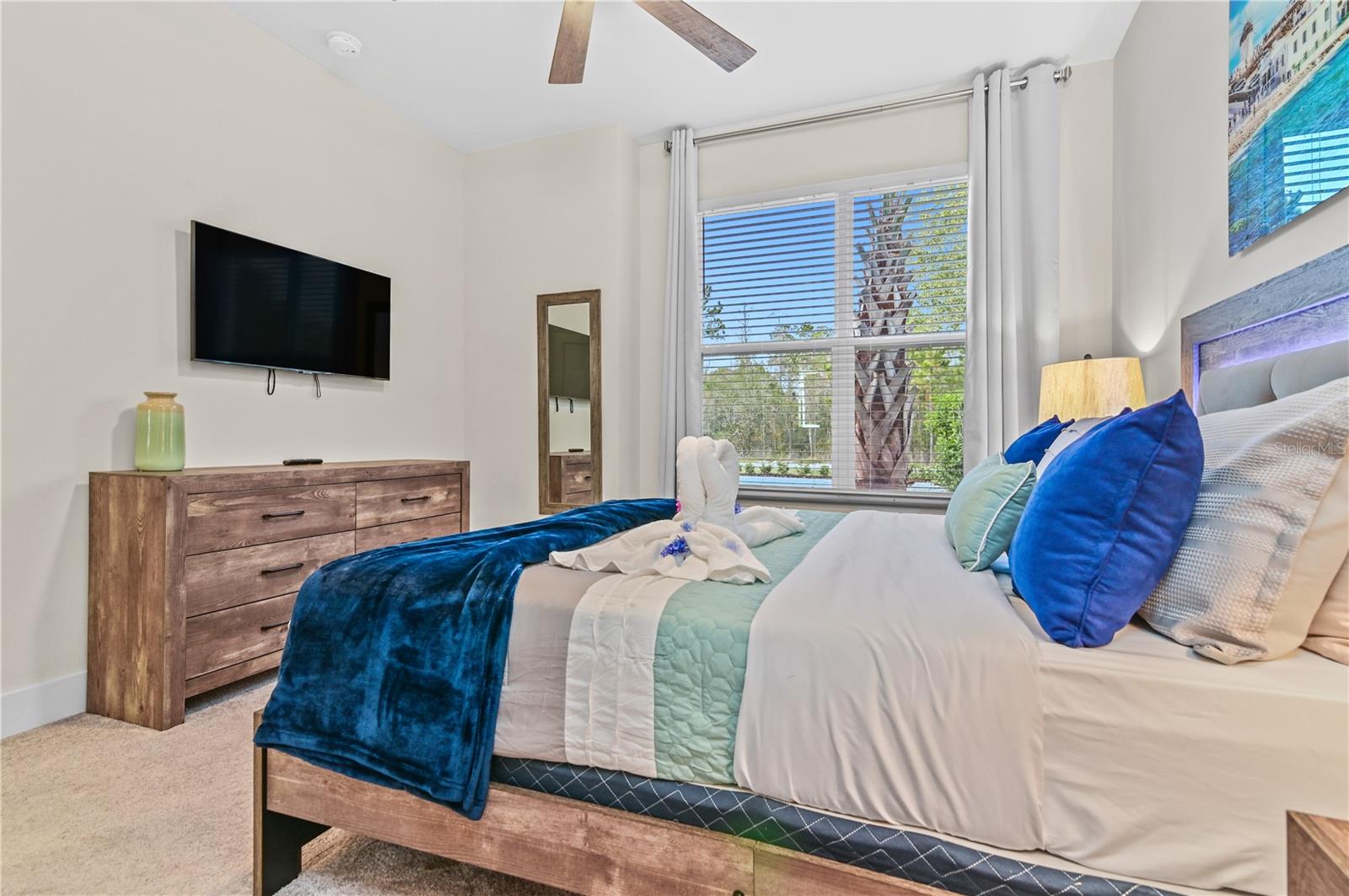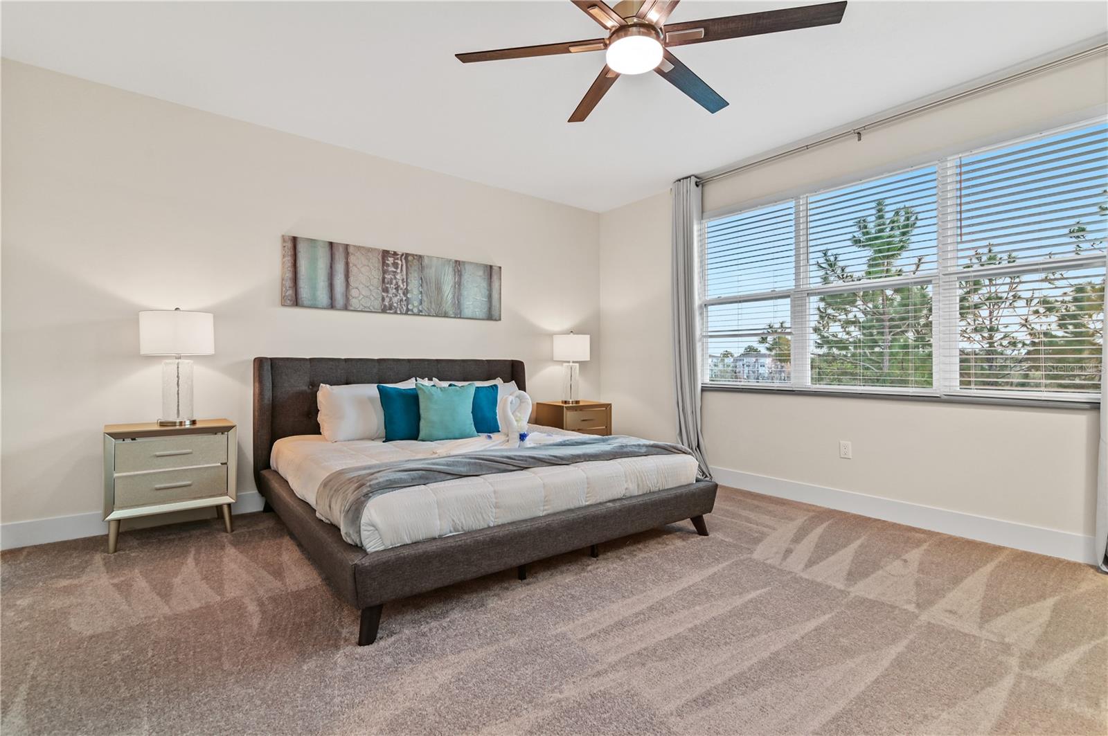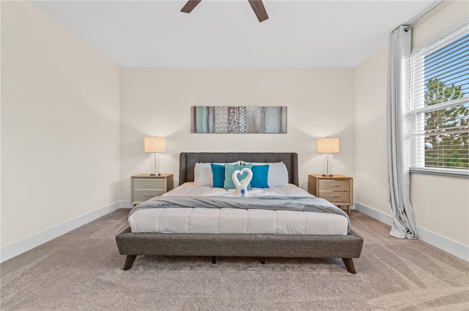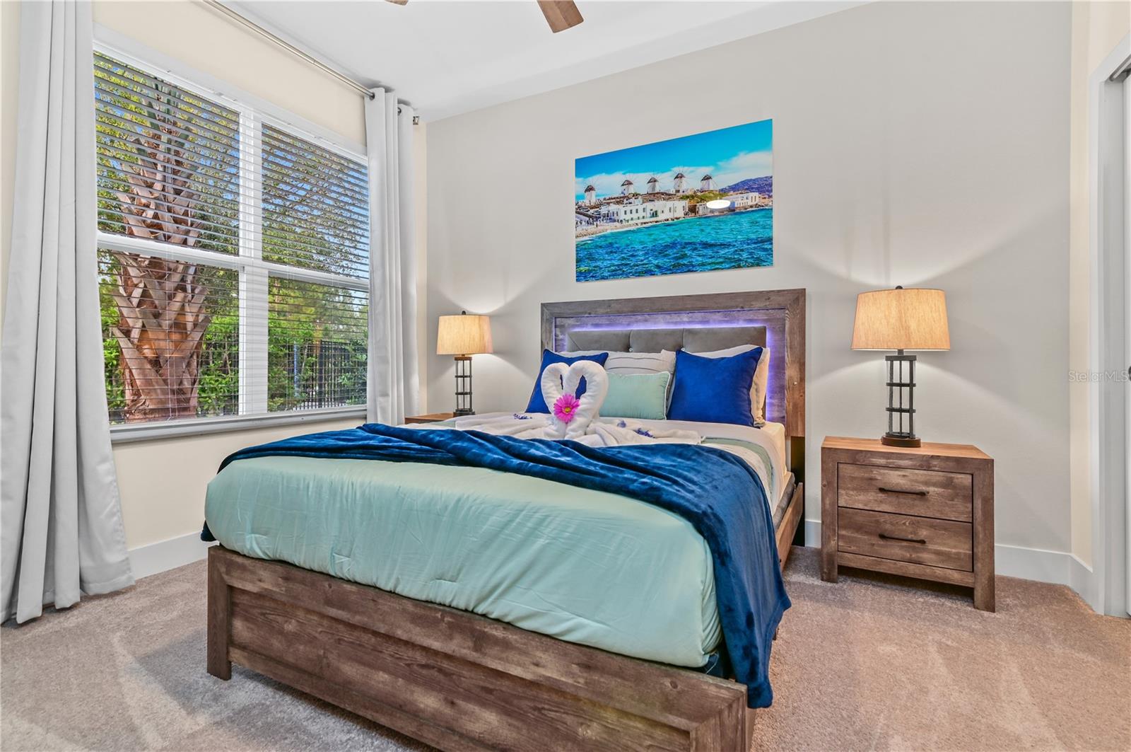 Welcome to this exceptional townhouse featuring a splash pool and stunning lake views on a premium lot. SELLER OFFERING UP TO $10,000.00 TOWARDS BUYERS' CLOSING COSTS !! This property is ideal for families seeking a comfortable residence, individuals seeking a vacation retreat, or investors seeking a lucrative opportunity. It is a turnkey home that comes fully furnished and can be occupied immediately. Upon entering, one is greeted by an elegantly designed open-concept living area characterized by an abundance of natural light, exquisite porcelain tile, European cabinetry, and quartz waterfall countertops. The ceilings rise to 9 feet 4 inches, enhancing the spaciousness of the modern finishes. The residence also includes a conveniently located ensuite bedroom on the ground floor. The private splash pool provides an inviting space for relaxation and leisure, ideally suited for enjoying the Florida sunshine in the comfort of one's backyard. Key features of this property include: - A premium corner lot with unobstructed lake views. - A private splash pool ideal for both relaxation and entertainment. - A spacious open floor plan adorned with refined finishes. - Surroundings that include lush greenery and tranquil nature trails. - A prime location near shopping, dining establishments, and top attractions. This fully equipped townhome has an impressive layout comprising four bedrooms, three bathrooms, and a charming Mickey Mouse-themed room. It offers a valuable lifestyle change, with the advantage of no rear neighbors. This residence is situated within a well-maintained community with amenities such as a clubhouse, gym, and communal pool. It boasts breathtaking lake vistas and is only nine miles from Disney World. We invite you to schedule a private showing today and seize the opportunity to make this serene retreat your own.