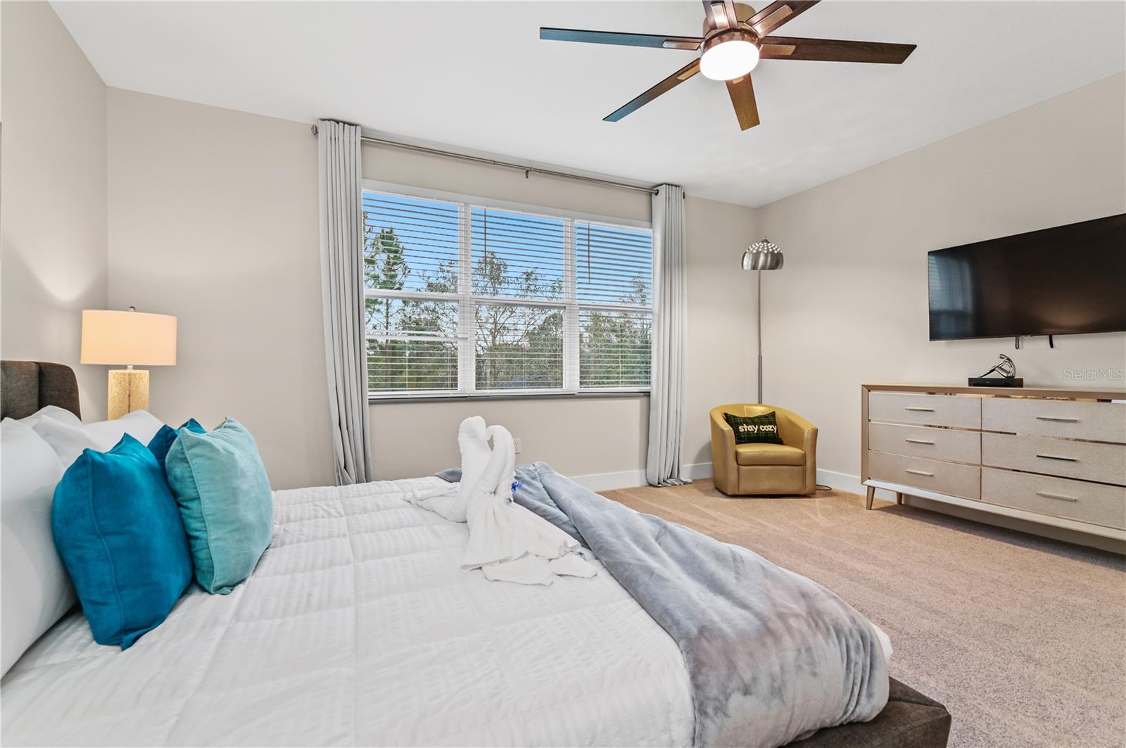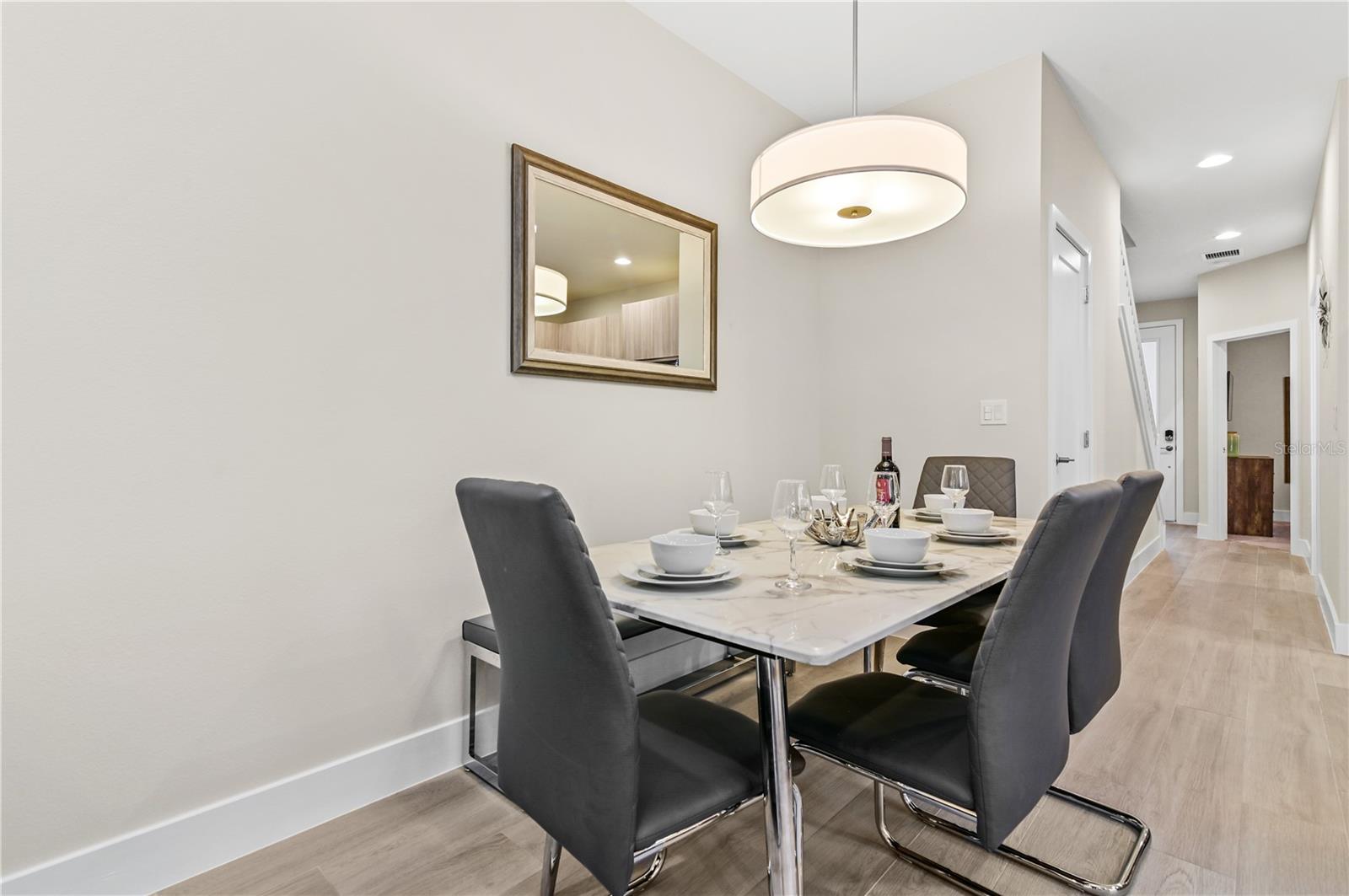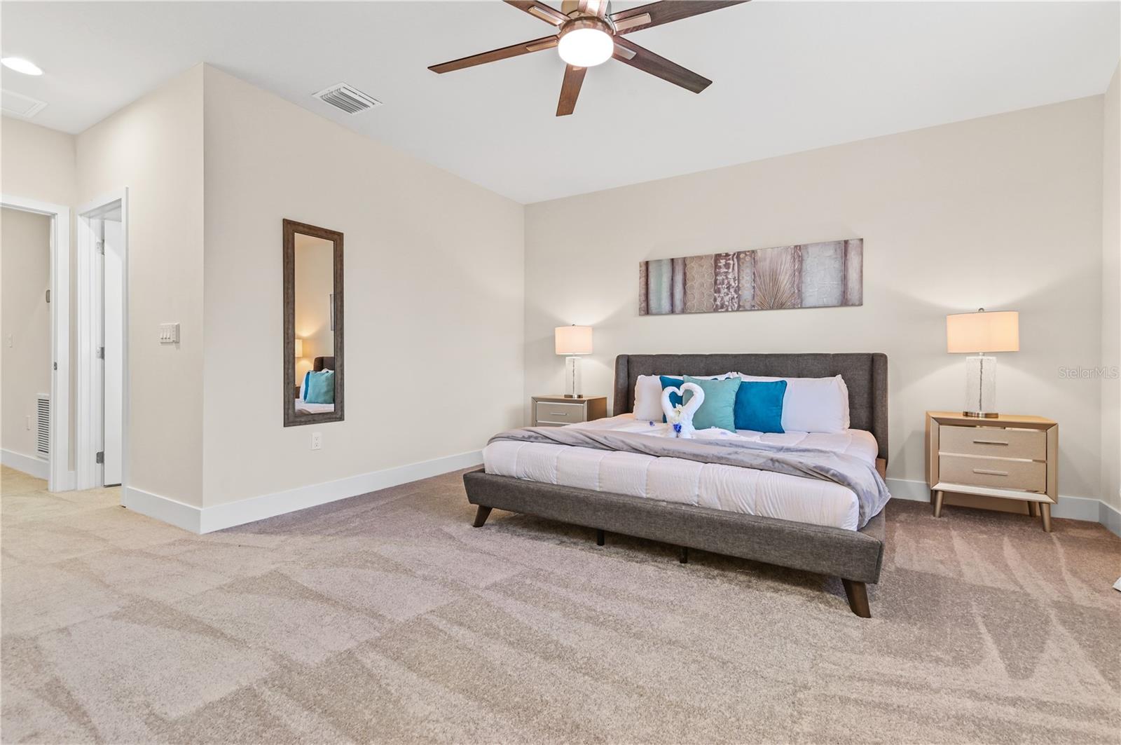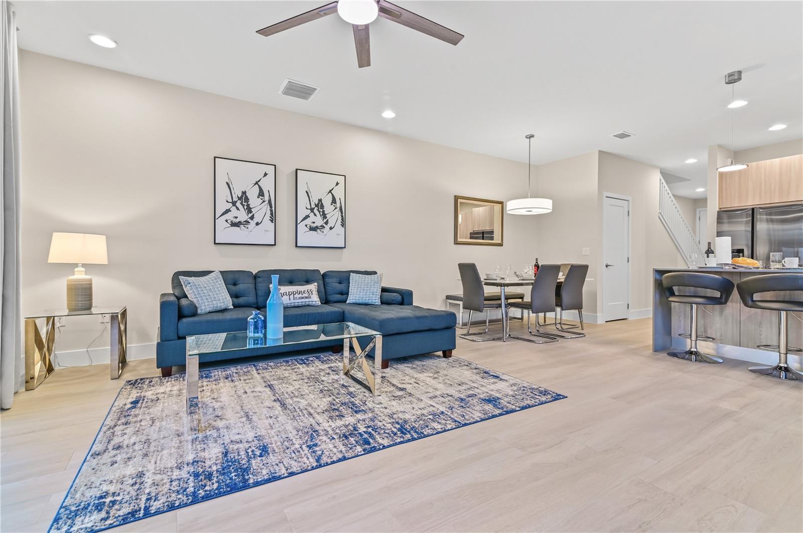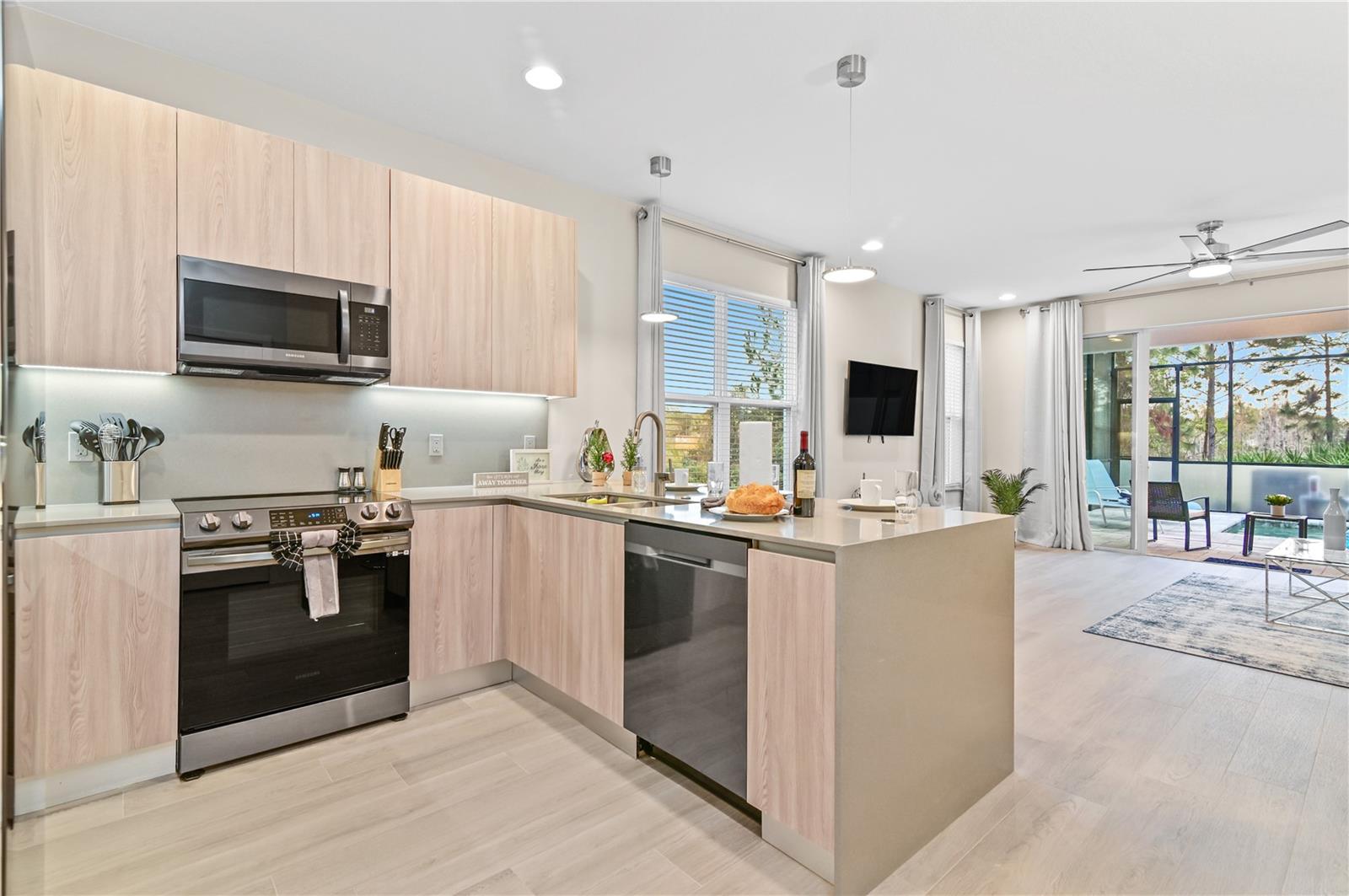 Welcome to this exceptional townhouse featuring a splash pool and stunning lake views on a premium lot. SELLER OFFERING UP TO $10,000.00 TOWARDS BUYERS' CLOSING COSTS !! This property is ideal for families seeking a comfortable residence, individuals seeking a vacation retreat, or investors seeking a lucrative opportunity. It is a turnkey home that comes fully furnished and can be occupied immediately. Upon entering, one is greeted by an elegantly designed open-concept living area characterized by an abundance of natural light, exquisite porcelain tile, European cabinetry, and quartz waterfall countertops. The ceilings rise to 9 feet 4 inches, enhancing the spaciousness of the modern finishes. The residence also includes a conveniently located ensuite bedroom on the ground floor. The private splash pool provides an inviting space for relaxation and leisure, ideally suited for enjoying the Florida sunshine in the comfort of one's backyard. Key features of this property include: - A premium corner lot with unobstructed lake views. - A private splash pool ideal for both relaxation and entertainment. - A spacious open floor plan adorned with refined finishes. - Surroundings that include lush greenery and tranquil nature trails. - A prime location near shopping, dining establishments, and top attractions. This fully equipped townhome has an impressive layout comprising four bedrooms, three bathrooms, and a charming Mickey Mouse-themed room. It offers a valuable lifestyle change, with the advantage of no rear neighbors. This residence is situated within a well-maintained community with amenities such as a clubhouse, gym, and communal pool. It boasts breathtaking lake vistas and is only nine miles from Disney World. We invite you to schedule a private showing today and seize the opportunity to make this serene retreat your own.