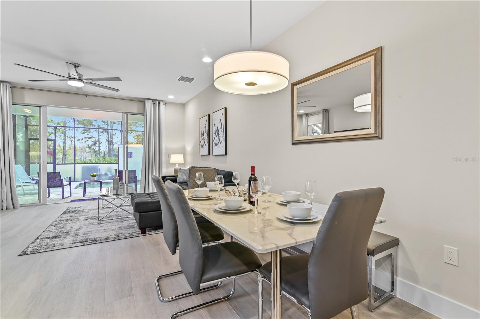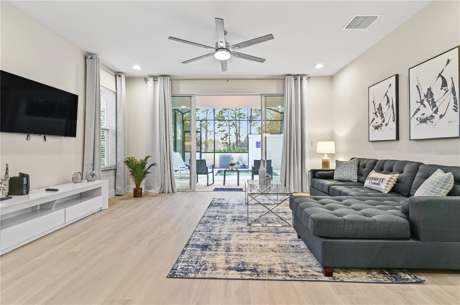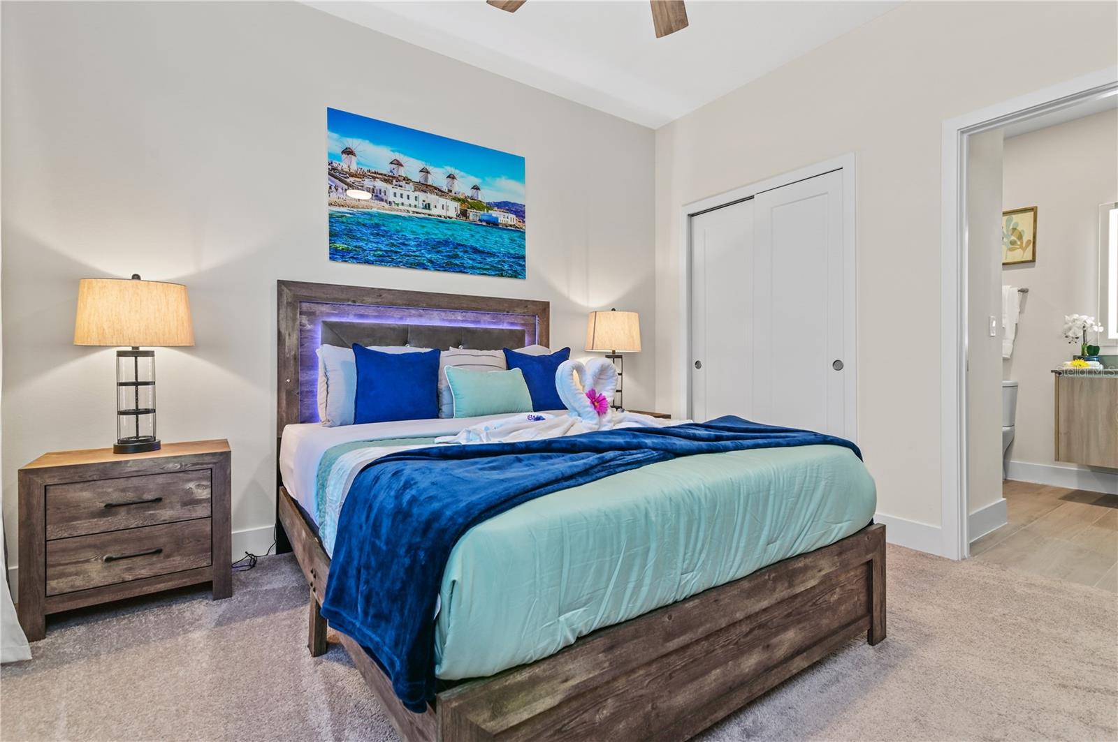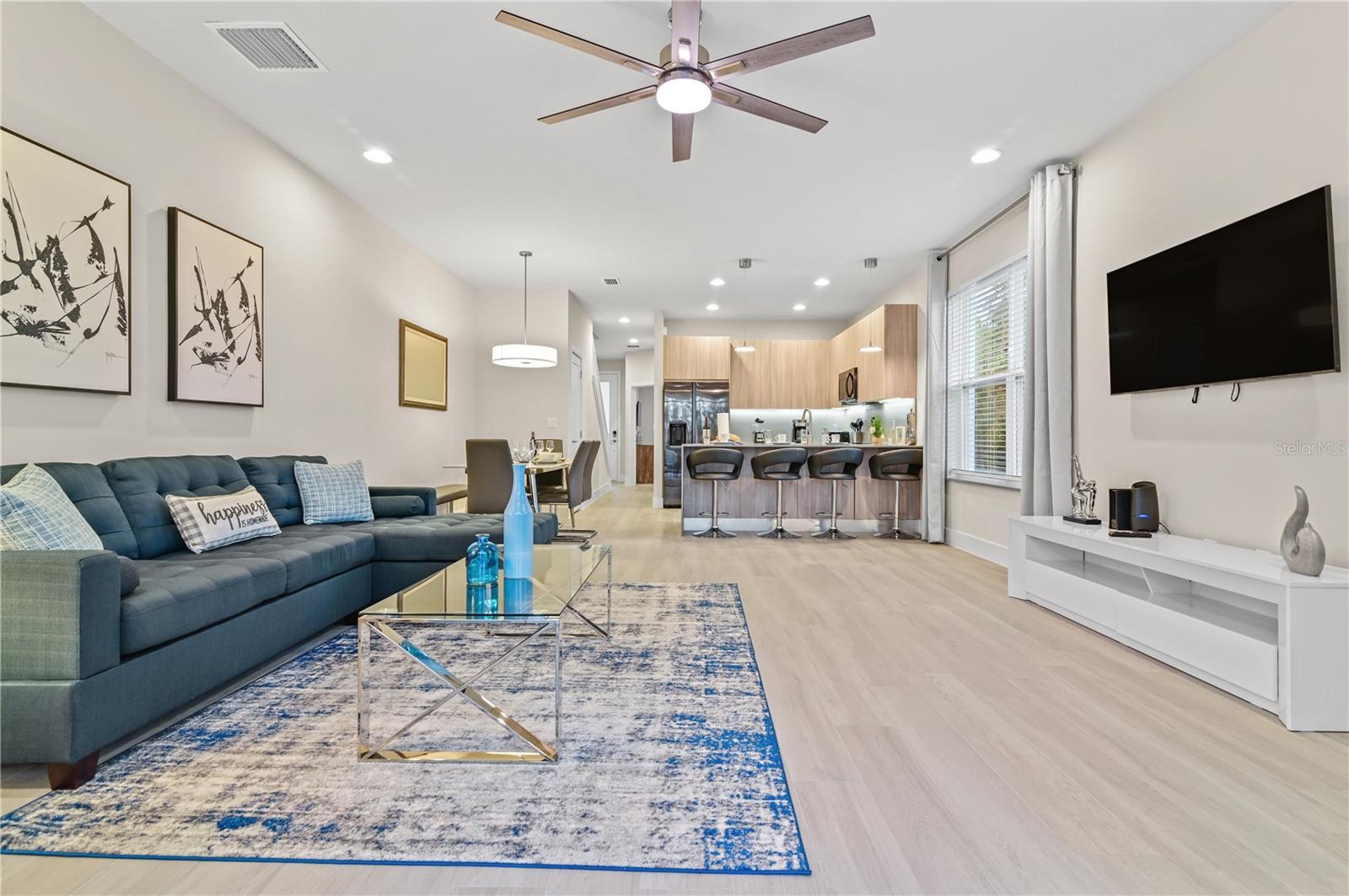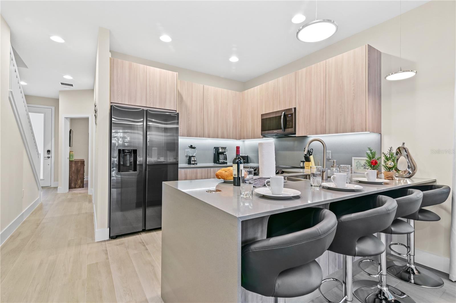 Welcome to this exceptional townhouse featuring a splash pool and stunning lake views on a premium lot. SELLER OFFERING UP TO $10,000.00 TOWARDS BUYERS' CLOSING COSTS !! This property is ideal for families seeking a comfortable residence, individuals seeking a vacation retreat, or investors seeking a lucrative opportunity. It is a turnkey home that comes fully furnished and can be occupied immediately. Upon entering, one is greeted by an elegantly designed open-concept living area characterized by an abundance of natural light, exquisite porcelain tile, European cabinetry, and quartz waterfall countertops. The ceilings rise to 9 feet 4 inches, enhancing the spaciousness of the modern finishes. The residence also includes a conveniently located ensuite bedroom on the ground floor. The private splash pool provides an inviting space for relaxation and leisure, ideally suited for enjoying the Florida sunshine in the comfort of one's backyard. Key features of this property include: - A premium corner lot with unobstructed lake views. - A private splash pool ideal for both relaxation and entertainment. - A spacious open floor plan adorned with refined finishes. - Surroundings that include lush greenery and tranquil nature trails. - A prime location near shopping, dining establishments, and top attractions. This fully equipped townhome has an impressive layout comprising four bedrooms, three bathrooms, and a charming Mickey Mouse-themed room. It offers a valuable lifestyle change, with the advantage of no rear neighbors. This residence is situated within a well-maintained community with amenities such as a clubhouse, gym, and communal pool. It boasts breathtaking lake vistas and is only nine miles from Disney World. We invite you to schedule a private showing today and seize the opportunity to make this serene retreat your own.