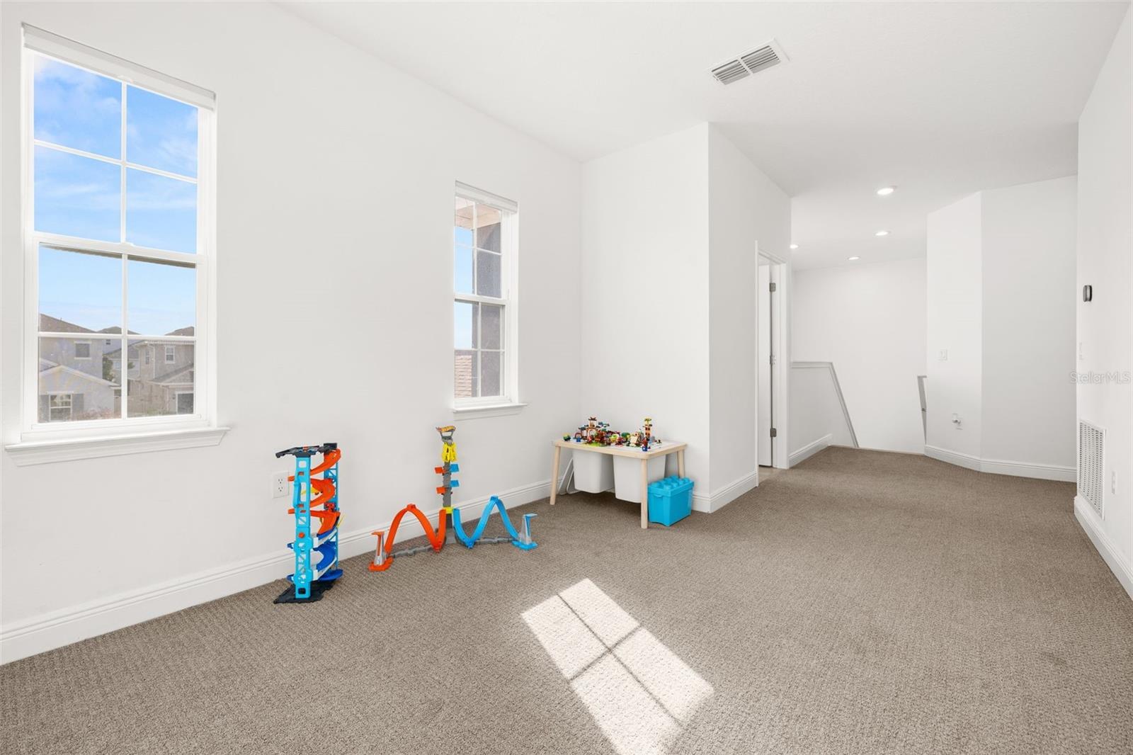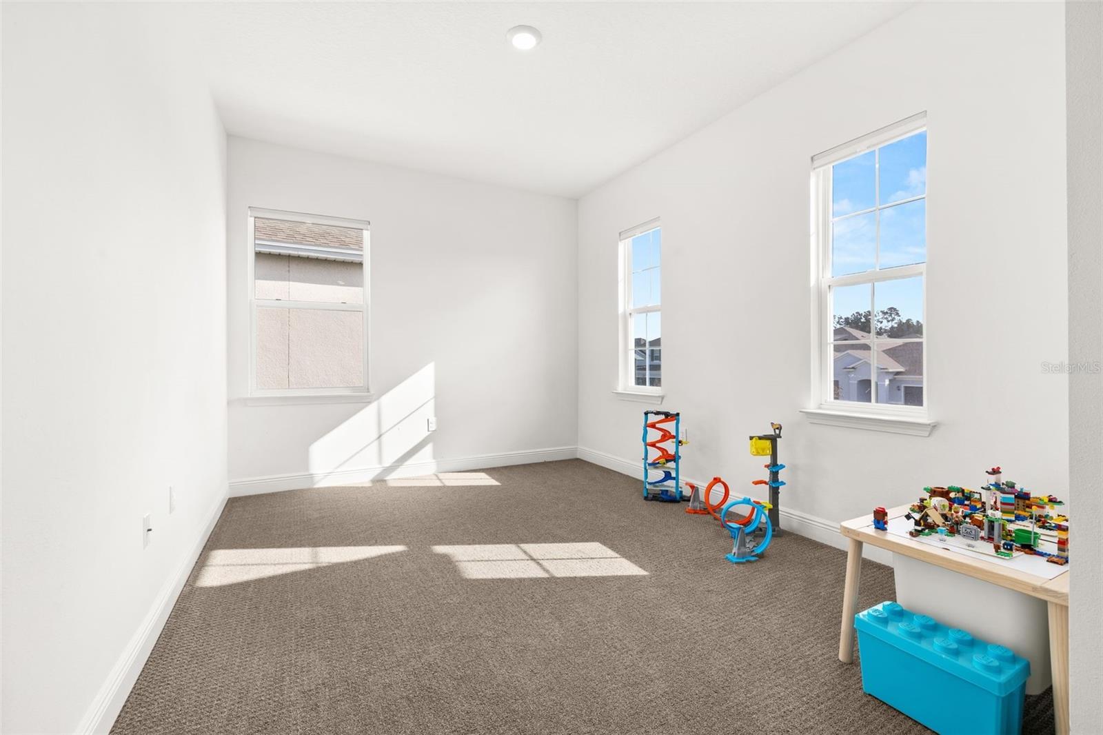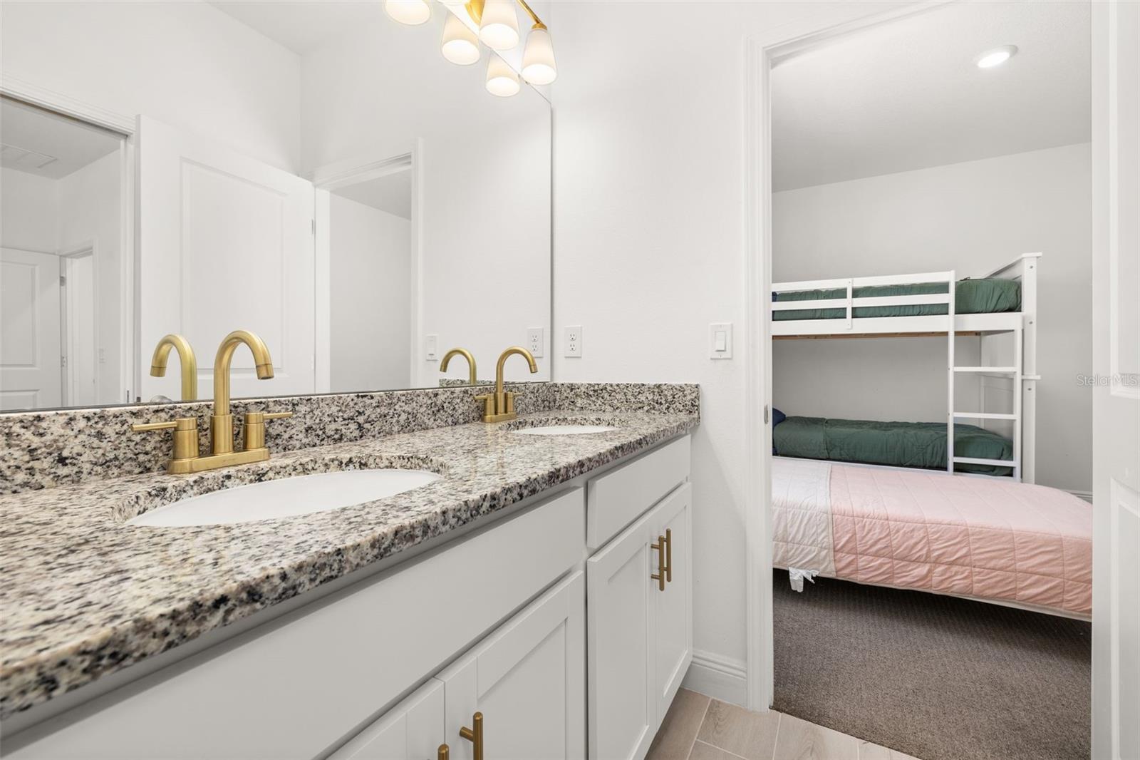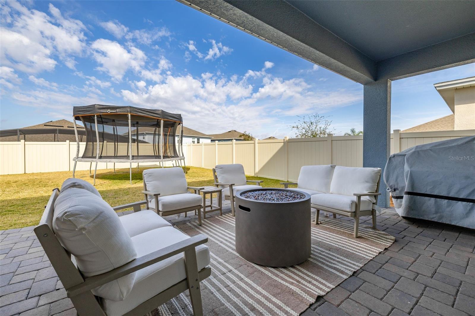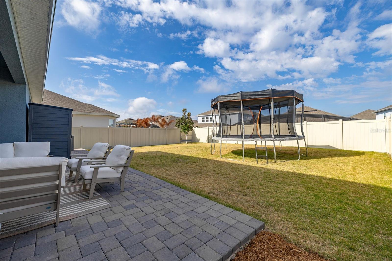 Immaculate 2023-built 4-bedroom / 3-bath home that shows like new, offering a bright, fresh, and inviting atmosphere filled with natural light throughout. The kitchen is thoughtfully designed for both style and function, featuring warm-toned 42” cabinetry, an oversized quartz island, and a convenient water pot filler above the cooktop—perfect for cooking with ease. The stunning GE Café Series white refrigerator with gold accents pairs beautifully with the upgraded gold-tone hardware and finishes. A spacious walk-in pantry provides excellent additional storage. Luxury vinyl plank flooring runs throughout the first floor, while upgraded carpeting adds comfort upstairs and in the bedrooms. The home features a spacious two-car garage complete with an electric vehicle charging station and additional overhead storage. Central vacuum in the garage adds everyday convenience. The downstairs bedroom and a full bathroom provide the perfect setup for hosting family and friends. Upstairs, a versatile loft area offers the ideal space for a home office, media room, or flex space. The primary suite provides a peaceful retreat with a serene ensuite bathroom featuring a standalone soaking tub, separate shower, and crisp, modern finishes. Two additional well-sized bedrooms share a Jack-and-Jill bathroom. Sliding glass doors open to a covered, pavered patio—perfect for year-round enjoyment. A 6-foot privacy fence surrounds the sizable backyard, which offers ample space to add a pool if desired. Residents enjoy a cabana-style community pool and dog park. Ideally located near Highways 27 and 50 with ample shopping/dining options, including the new Clermont Costco, as well as near Lake Louisa State Park, the Olympus Project, and just about 30 minutes to Disney parks. This home is truly move-in ready and waiting for you.