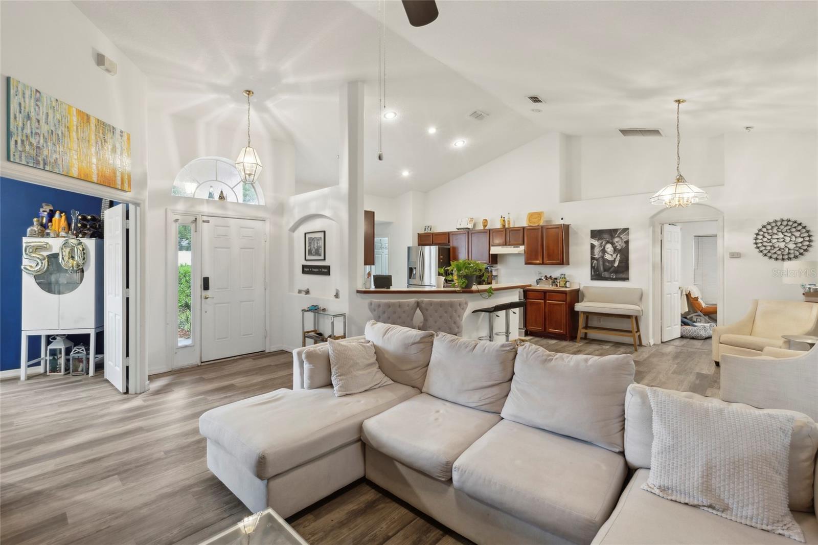 Short Sale. Nestled in a quiet, gated community in the scenic hills of Clermont, this beautifully updated 3-bedroom, 2-bath home, plus a spacious office, is perfect for those seeking a peaceful and relaxed lifestyle. The home boasts brand new vinyl flooring throughout, along with fresh interior paint that gives it a bright, modern feel. Step into the inviting great room that seamlessly opens into a large eat-in kitchen—perfect for gatherings and cozy family dinners. The kitchen features a gas stove, ideal for the chef in the family, while the open floor plan and split bedroom design serves as both functionality and privacy. The master suite is your personal sanctuary, complete with His and Hers closets and vanities, a luxurious soaking tub, and a separate shower. You'll love unwinding in the peaceful atmosphere of your covered lanai, overlooking a tranquil wooded backyard—ideal for relaxing with your morning coffee or evening tea. Conveniently located near shopping, major highways, and the Florida Turnpike, this home offers an easy commute to Orlando while maintaining the quiet charm of Clermont. This is a short sale opportunity you don’t want to miss! Own a stunning home in a sought-after Clermont neighborhood at an incredible price and make it your own. Plus, the preferred lender is offering a $500 appraisal credit when closed through her. Come see the potential and make this beautiful home yours!