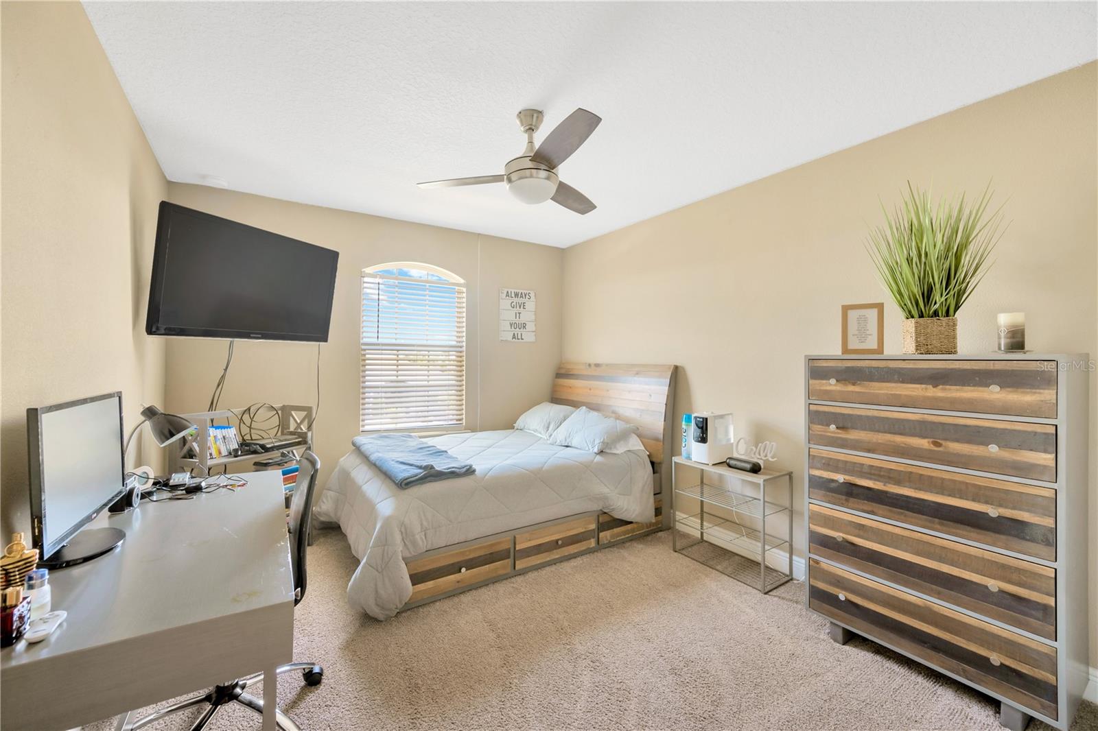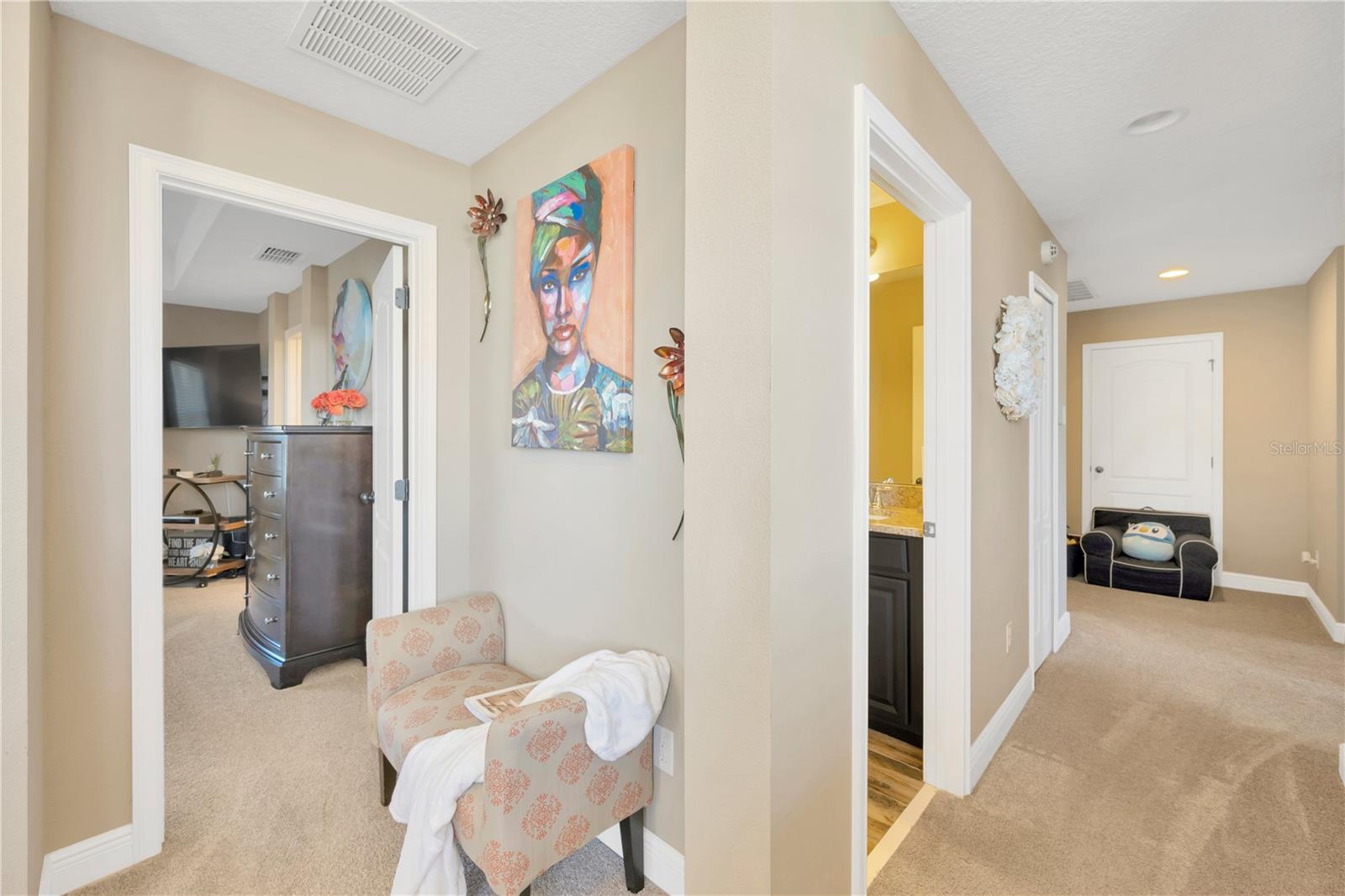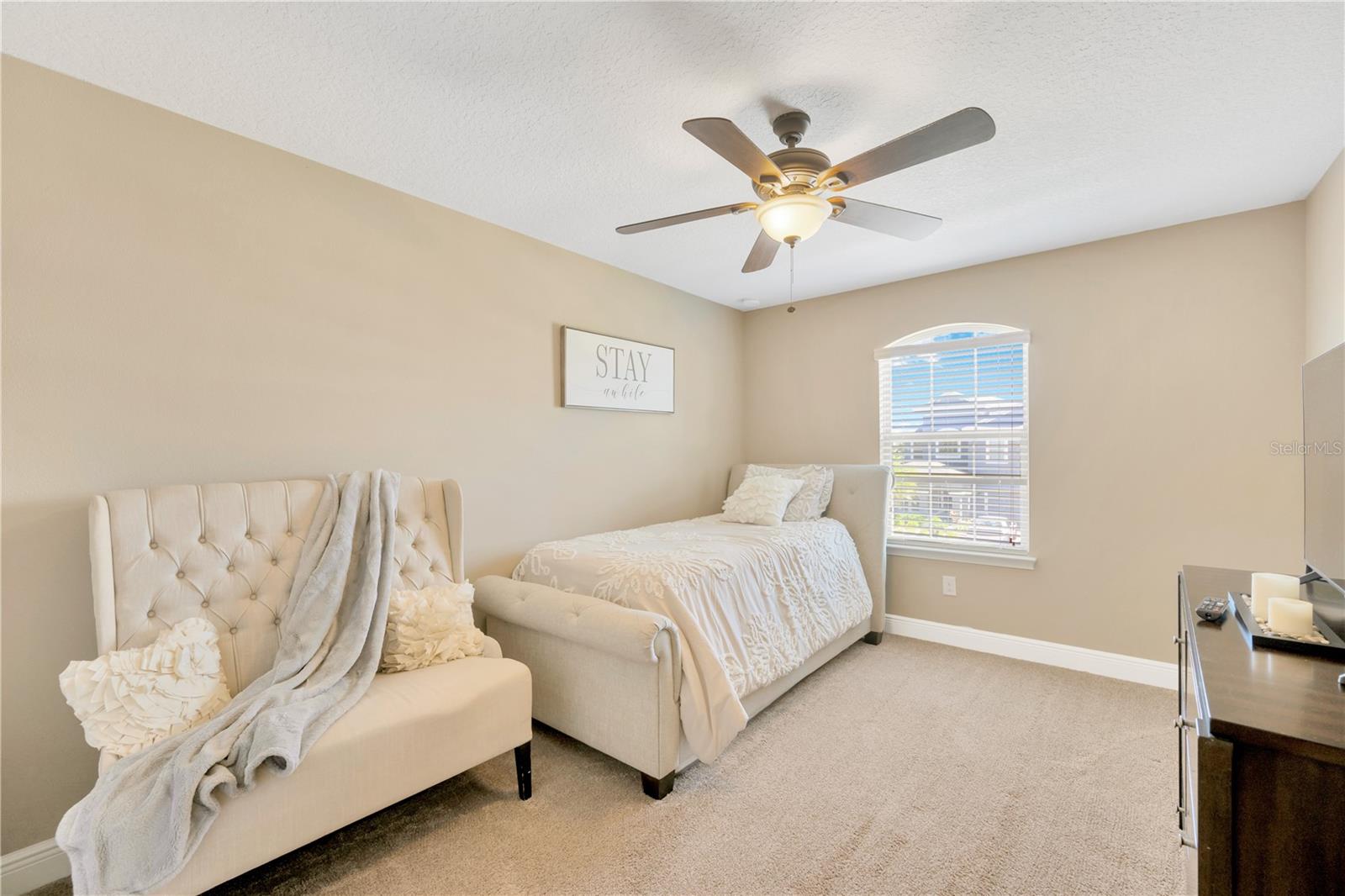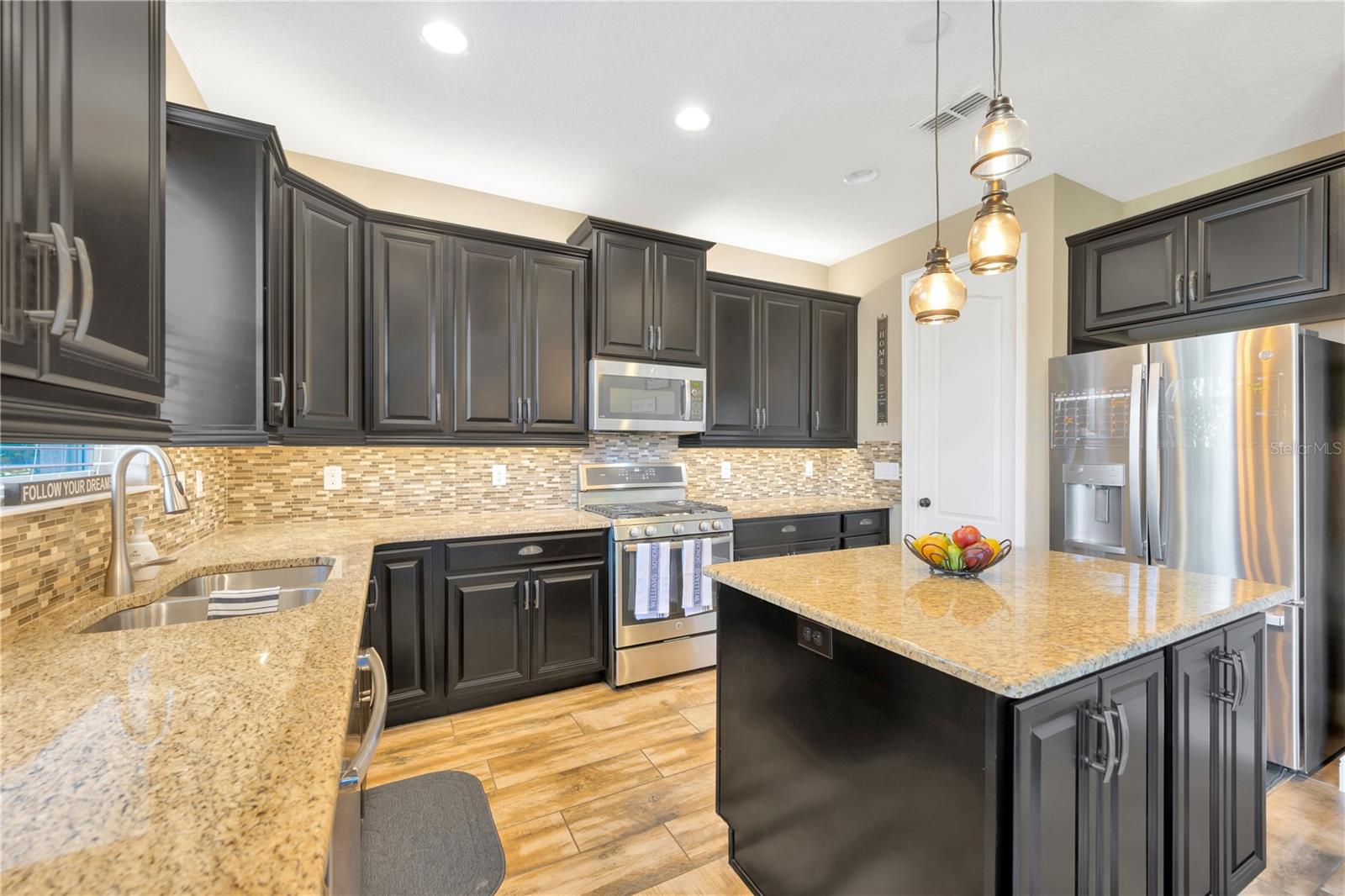 Welcome to this charming home in Highland Ranch, set on an oversized corner lot that offers both tranquility and fantastic curb appeal. As you step into the grand foyer, you'll be welcomed by an abundance of natural light from above. The open-concept kitchen, dining, and living area is perfect for spending time in the heart of the home. The kitchen features elegant espresso cabinetry, a spacious island with plenty of storage, and a gas stove. An added bonus is the downstairs bedroom with an ensuite bath, which can be used as an office or a versatile multi-purpose room. Heading upstairs, you'll notice the stylish iron spindles along the staircase and the cozy loft area at the top, perfect for a reading nook. The primary suite is a private retreat, offering ample space and a beautifully tiled shower that's perfect for a relaxing escape after a long day. Outside, you can unwind under the covered lanai or relax in the jacuzzi, complete with a pergola for shade. The community offers an amenity center with a large swimming pool coupled with a splash pad for little ones, perfect for cooling off on hot days. Enjoy other outdoor activities including a playground, basketball court, and an outdoor fire pit. There's even a dog park for your furry friends. Just outside the main entrance, you'll find a local trail ideal for rollerblading, biking, walking, or running. Nearby, you'll find shopping and dining options in Historic Downtown Clermont, and while you're there, be sure to visit the fabulous Waterfront Park. Enjoy the convenience of being in close proximity to Orlando and its theme parks, Winter Garden, and the area airport.