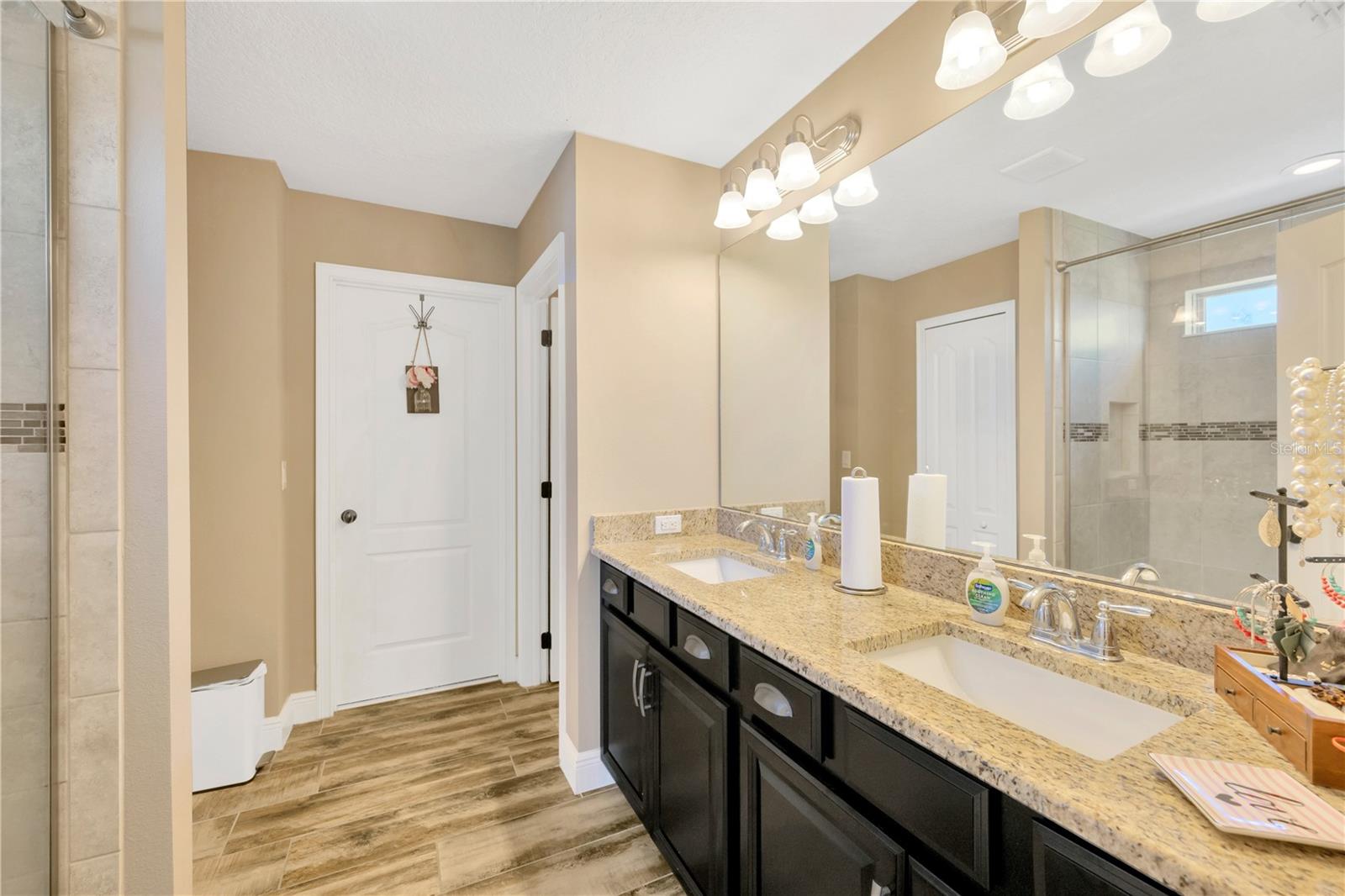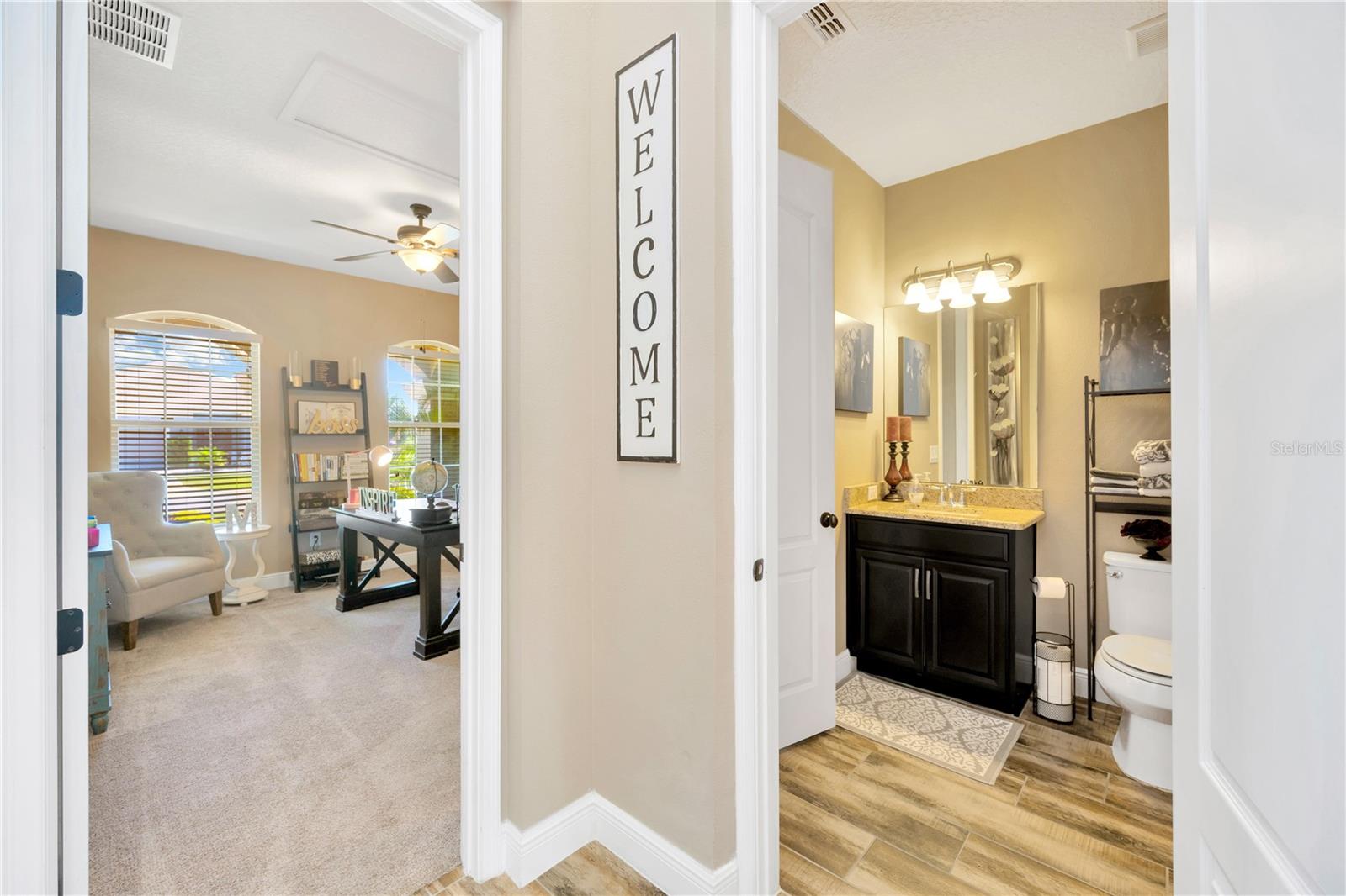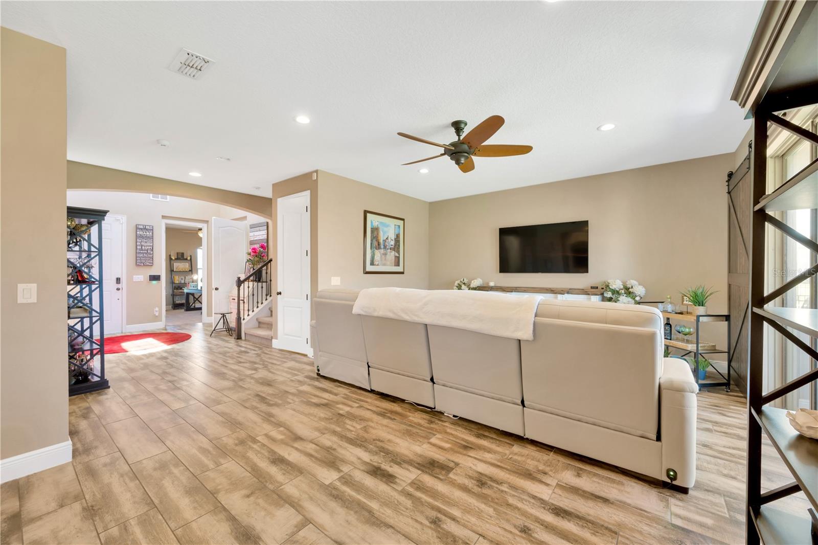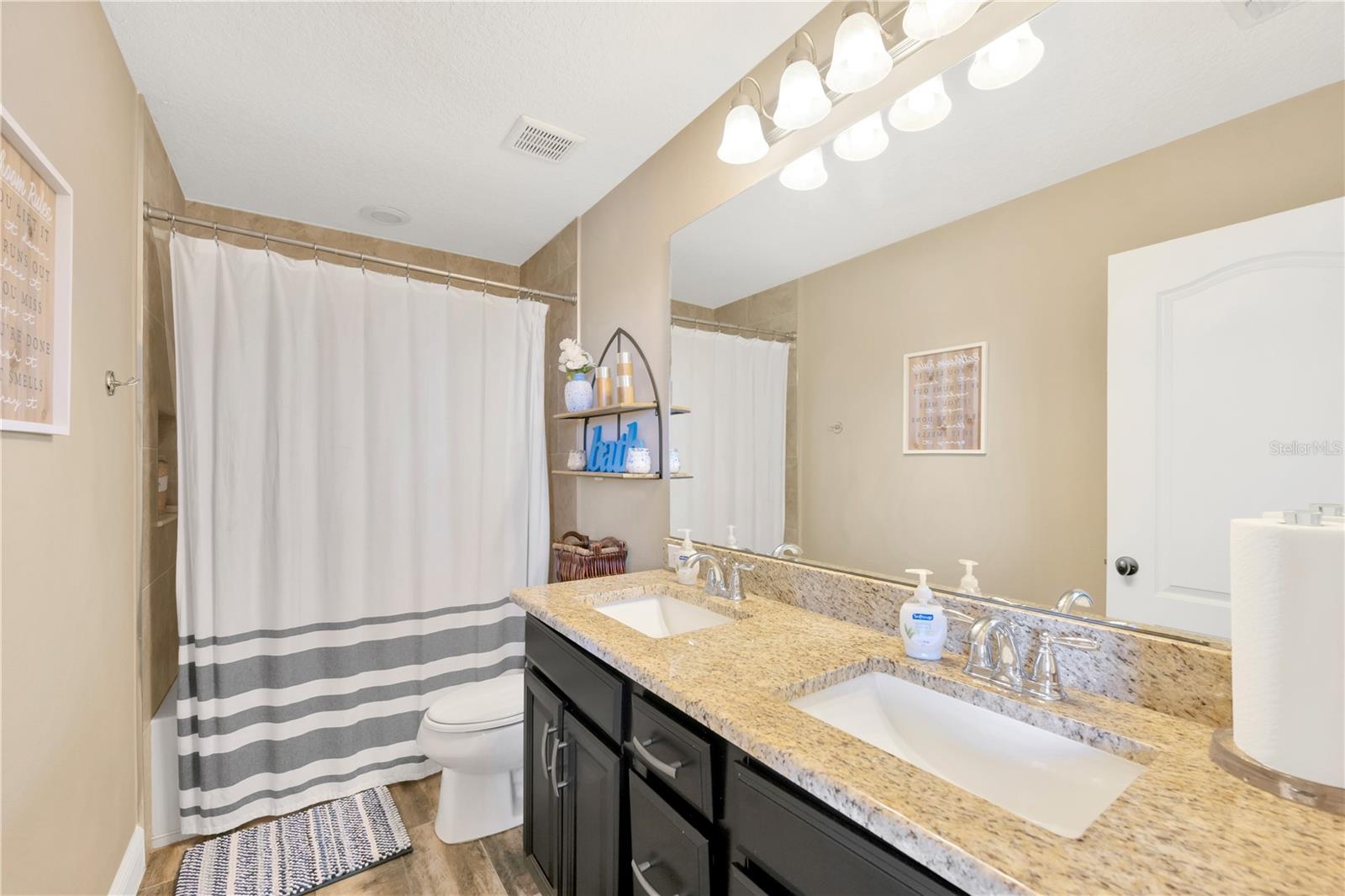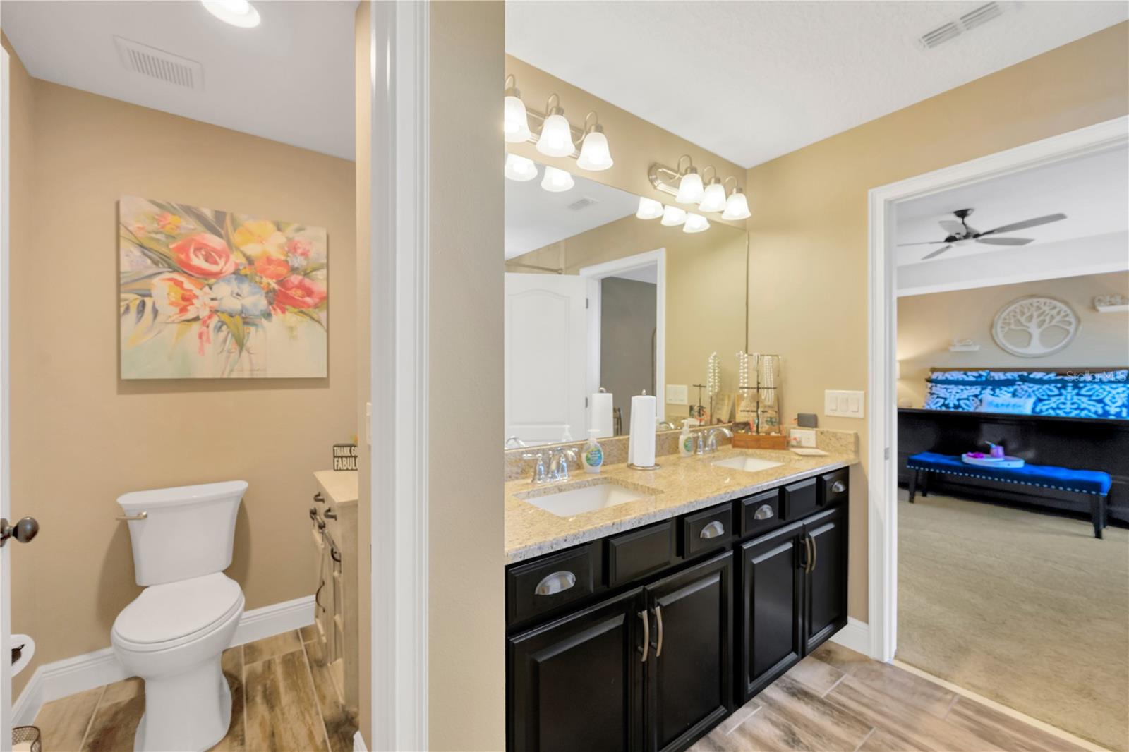 Welcome to this charming home in Highland Ranch, set on an oversized corner lot that offers both tranquility and fantastic curb appeal. As you step into the grand foyer, you'll be welcomed by an abundance of natural light from above. The open-concept kitchen, dining, and living area is perfect for spending time in the heart of the home. The kitchen features elegant espresso cabinetry, a spacious island with plenty of storage, and a gas stove. An added bonus is the downstairs bedroom with an ensuite bath, which can be used as an office or a versatile multi-purpose room. Heading upstairs, you'll notice the stylish iron spindles along the staircase and the cozy loft area at the top, perfect for a reading nook. The primary suite is a private retreat, offering ample space and a beautifully tiled shower that's perfect for a relaxing escape after a long day. Outside, you can unwind under the covered lanai or relax in the jacuzzi, complete with a pergola for shade. The community offers an amenity center with a large swimming pool coupled with a splash pad for little ones, perfect for cooling off on hot days. Enjoy other outdoor activities including a playground, basketball court, and an outdoor fire pit. There's even a dog park for your furry friends. Just outside the main entrance, you'll find a local trail ideal for rollerblading, biking, walking, or running. Nearby, you'll find shopping and dining options in Historic Downtown Clermont, and while you're there, be sure to visit the fabulous Waterfront Park. Enjoy the convenience of being in close proximity to Orlando and its theme parks, Winter Garden, and the area airport.