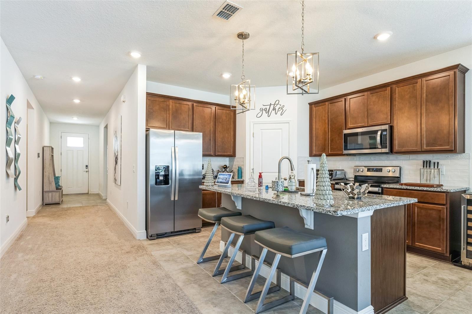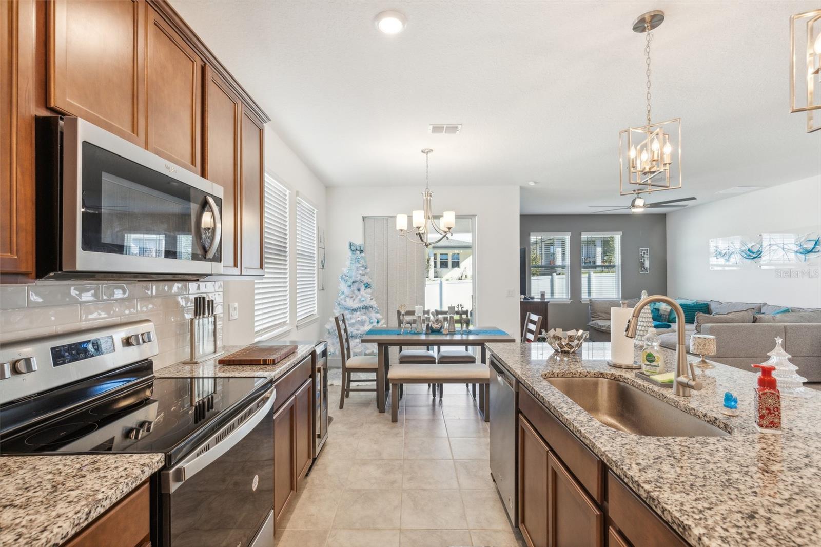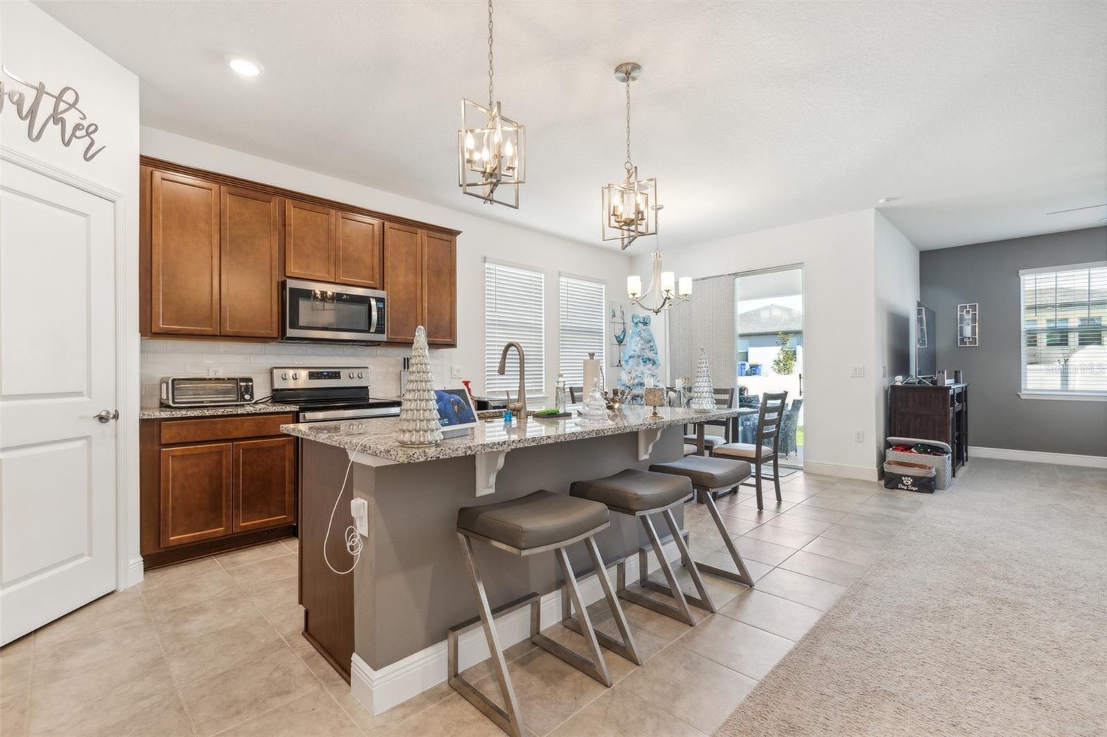 This meticulously maintained home, built in 2022, offers modern living with an open floor plan designed for effortless entertaining. The spacious living, kitchen, and dining areas flow seamlessly together, making it the perfect space for family gatherings or hosting guests. The kitchen is a chef’s dream with stunning granite countertops, solid wood cabinets, and high-end appliances that are just 2 years old. The home boasts 4 generous bedrooms and 3 well-appointed bathrooms, each featuring elegant granite surfaces. The fully fenced-in vinyl yard offers privacy and security, creating an ideal outdoor space. You’ll also appreciate the added peace of mind that comes with the home's built-in security system. This home is energy-efficient, with a 2-year-old water heater, roof, and A/C ensuring comfort and peace of mind for years to come. Whether you're looking for space, style, or efficiency, this home checks all the boxes. This home is located in a prime area close to the turnpike that leads directly to Orlando. This neighborhood is booming with upgrades both current and future including a brand-new k-8 school, high tech hospital, outdoor mall, high end shopping and restaurants, and an amphitheater featuring a convention center. Don't miss your chance to make this diligently kept home yours. Schedule a showing today! Financing Special – You’ll save $100’s off your monthly mortgage payment for the first 12 months on this home with our Defeat High Rates Program.