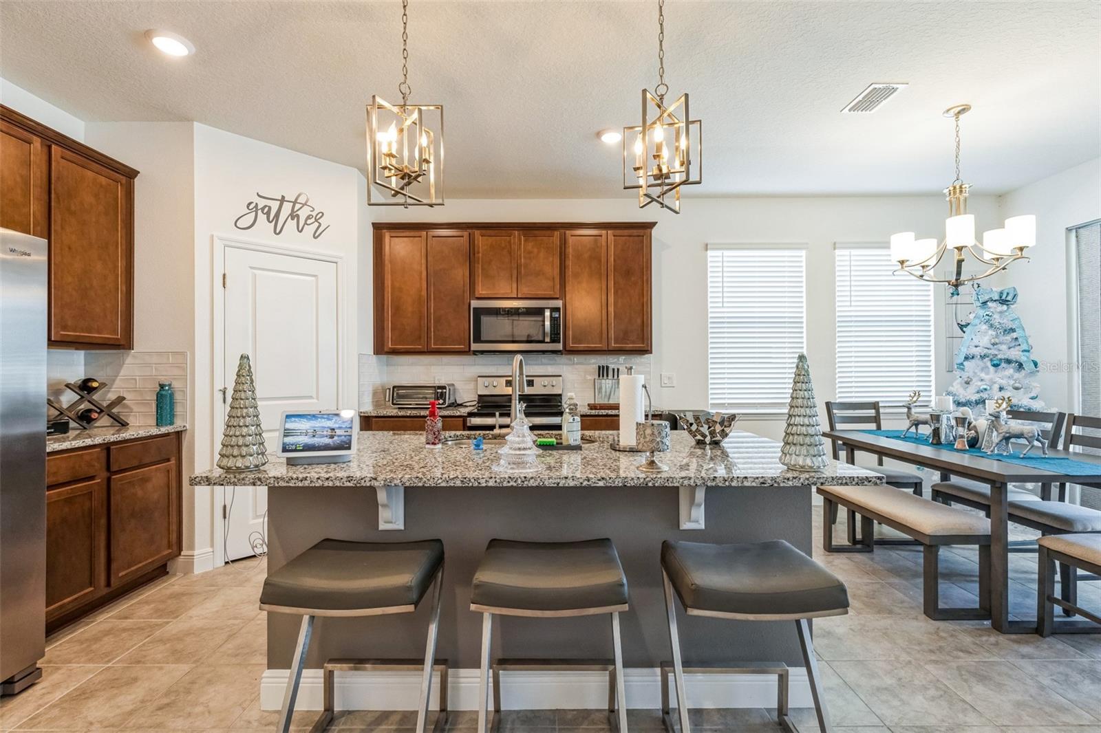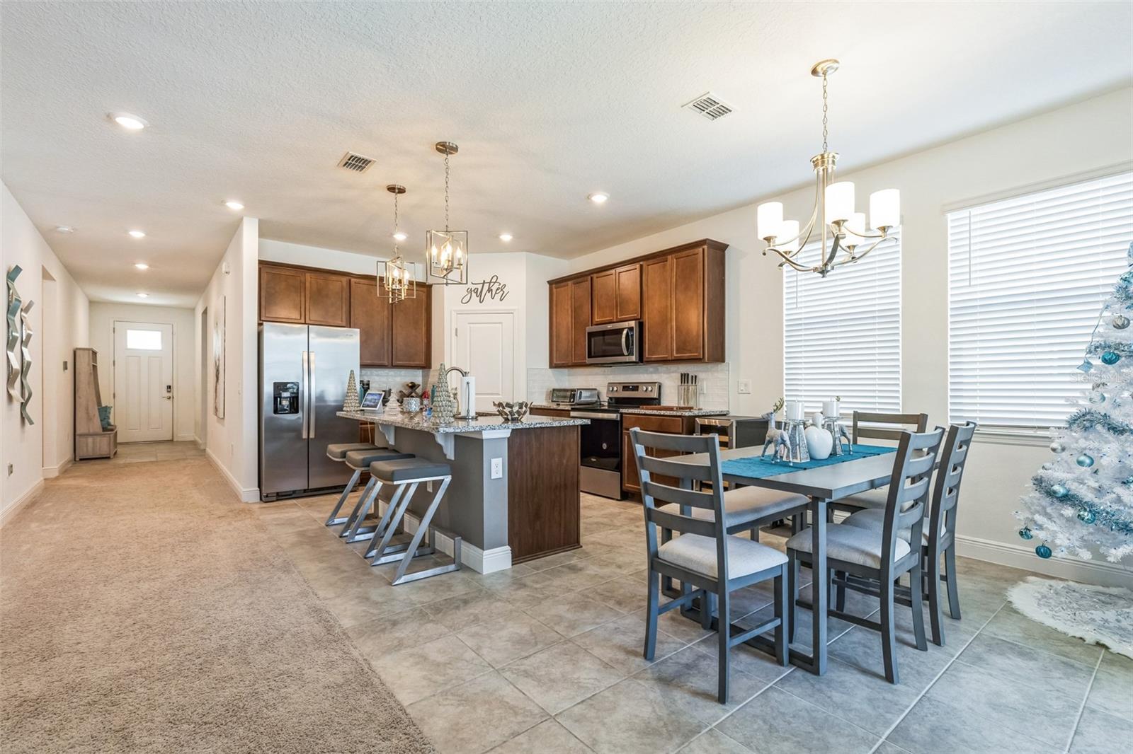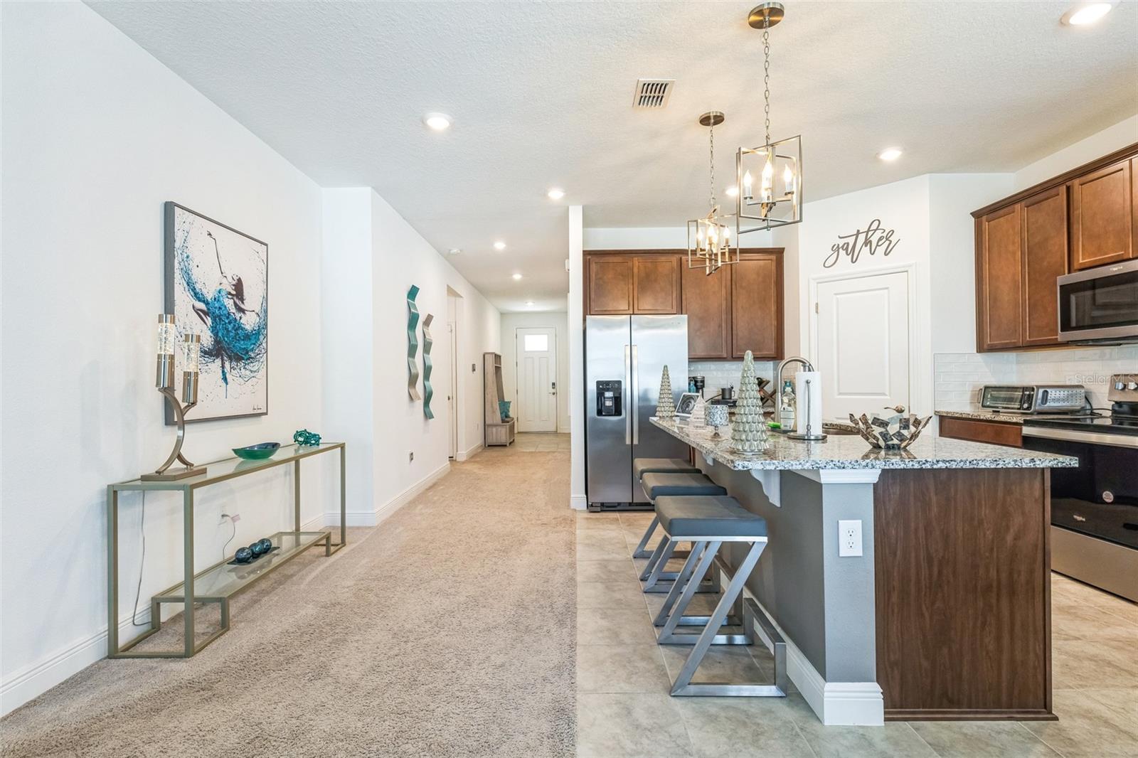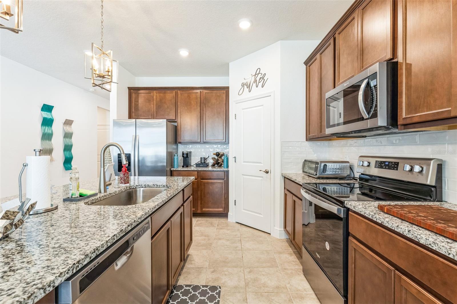This meticulously maintained home, built in 2022, offers modern living with an open floor plan designed for effortless entertaining. The spacious living, kitchen, and dining areas flow seamlessly together, making it the perfect space for family gatherings or hosting guests. The kitchen is a chef’s dream with stunning granite countertops, solid wood cabinets, and high-end appliances that are just 2 years old. The home boasts 4 generous bedrooms and 3 well-appointed bathrooms, each featuring elegant granite surfaces. The fully fenced-in vinyl yard offers privacy and security, creating an ideal outdoor space. You’ll also appreciate the added peace of mind that comes with the home's built-in security system. This home is energy-efficient, with a 2-year-old water heater, roof, and A/C ensuring comfort and peace of mind for years to come. Whether you're looking for space, style, or efficiency, this home checks all the boxes. This home is located in a prime area close to the turnpike that leads directly to Orlando. This neighborhood is booming with upgrades both current and future including a brand-new k-8 school, high tech hospital, outdoor mall, high end shopping and restaurants, and an amphitheater featuring a convention center. Don't miss your chance to make this diligently kept home yours. Schedule a showing today! Financing Special – You’ll save $100’s off your monthly mortgage payment for the first 12 months on this home with our Defeat High Rates Program.