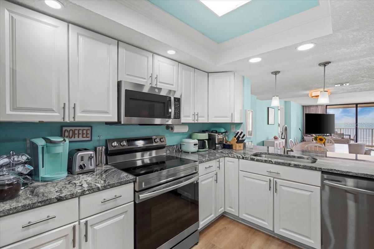 Discover coastal living at its finest in this beautifully, renovated 2-bedroom, 2-bath unit at the highly sought-after Stonewood Towers in Cocoa Beach. Located at 830 N Atlantic Ave Unit B502, this fifth-floor condo offers breathtaking, unobstructed, FULL ocean views—perfectly positioned for front-row enjoyment of air shows, boat races, pickle ball and rocket launches. This entire complex is FULLY GUARDED with 24 hour security. This Sand Dollar floor plan stands out with its expansive living area featuring four glass sliders and extended wall space, unlike the typical narrow “shotgun” layouts found in many beachfront units. Enjoy modern updates throughout, including NEW AC and HVAC System ( July 16th, 2025), new appliances and a newer water heater, all in a fresh, contemporary design. Perched at the ideal elevation—not too high to feel distant from the beach, but above the bug line—you’ll enjoy stunning views and fresh ocean breezes without the noise. As the furthest unit from the elevator, privacy and tranquility are unmatched. This quiet unit doesn’t face other condos, pools, or walkways, so you’ll never have to worry about anyone looking into your space. Recent upgrades include COMPLETE CONCRETE RESTORATION and NEW ROOFS. NO UPCOMING Assesssments! EVERYTHING IS PAID AND UP TO DATE