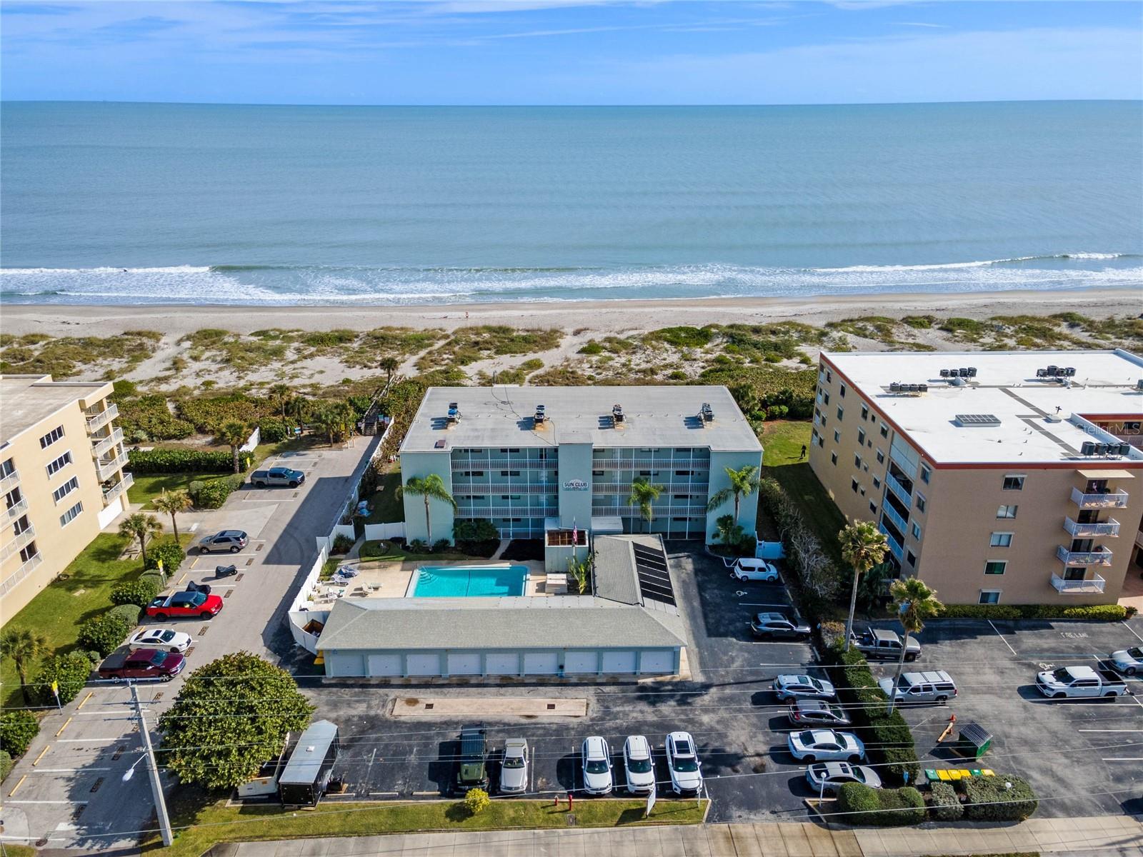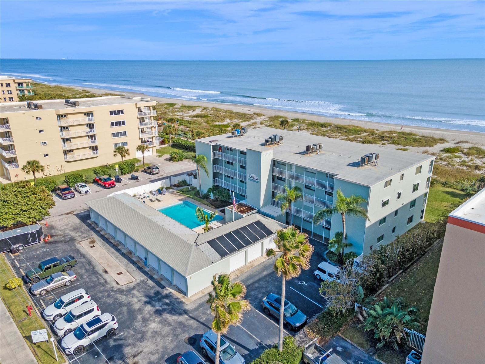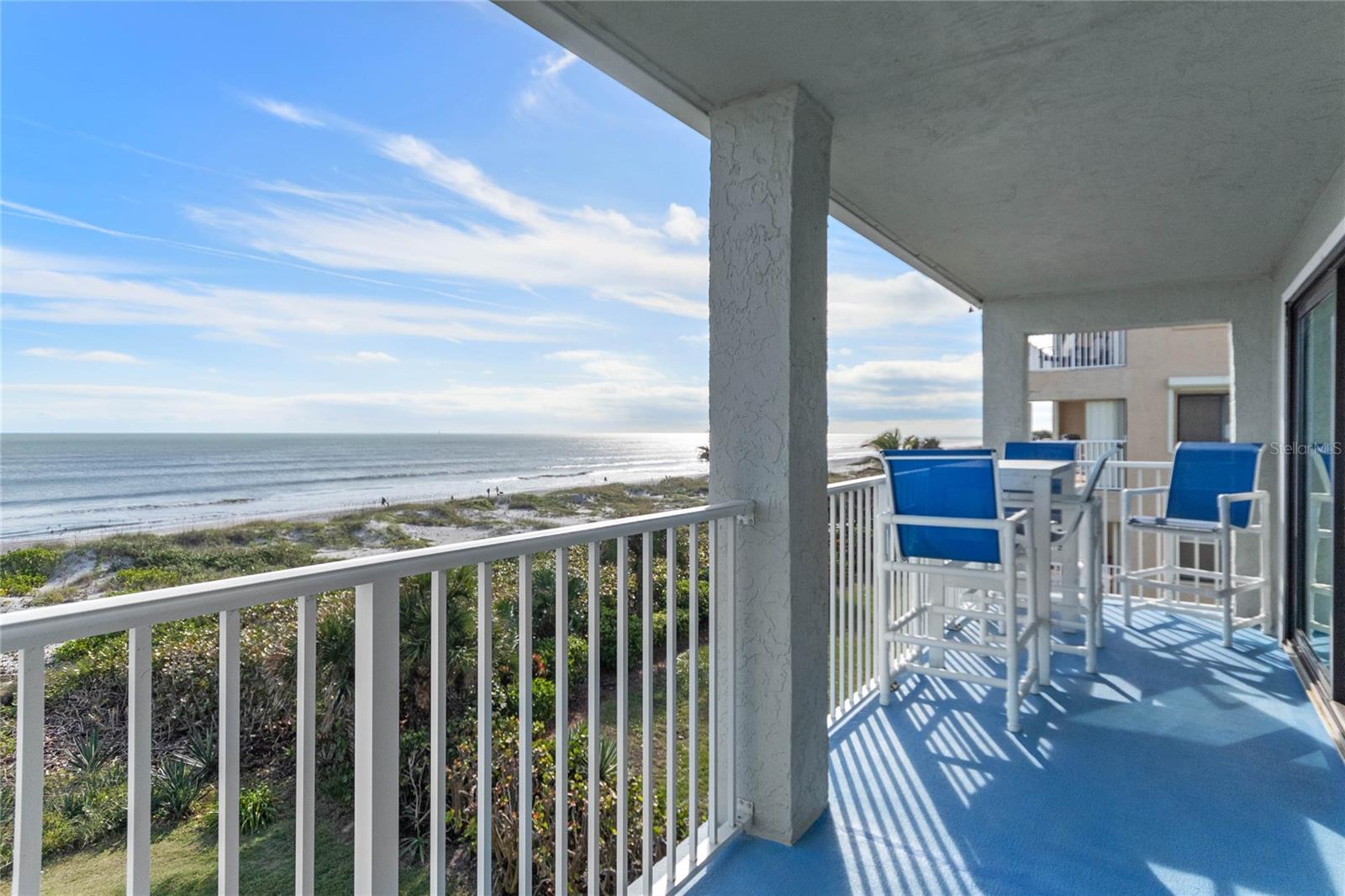 Nestled along the pristine shore of Cocoa Beach, this direct ocean front 3 bedroom 2 bath is ready for new owners! Fourth floor corner unit offers unobstructed water views in all directions from the expansive balcony. Picture yourself beginning or ending your day with the calming sounds of ocean waves, cool breezes with breathtaking views of the Atlantic Ocean. Recent kitchen redesign in 2023 provides additional space with easy flow for entertaining. New cabinets, Granite Counters with counter bar seating plus stainless appliance package. Spacious primary with ensuite bath offers ocean views with balcony access. Plenty of storage with huge walk in plus additional closet. Security feature with solid hurricane sliders. Other enhancements include: Tile floors throughout for easy care and maintenance, upgraded lighting, washer & dryer, updated bathroom vanities and shower door, new HVAC and Water Heater 2024, newer front screen door. You'll appreciate the one car garage, perfect storage for all your beach toys! Three way bedroom split plan provides plenty of privacy for all your guests. Turn key and fully furnished. The building is undergoing exterior concrete restoration and pool renovations. Piece of mind, as seller has paid the $12K assessment for the new owner. Make this perfectly positioned beachfront your new getaway or permanent residence! All buyer concessions will be considered.