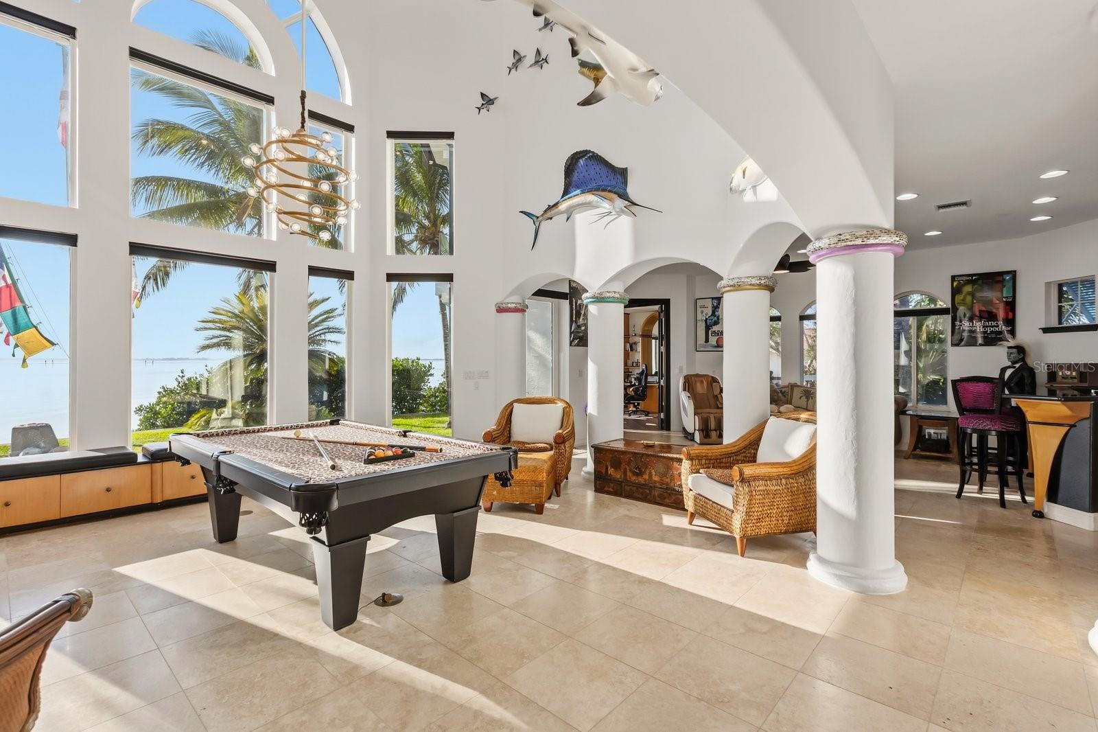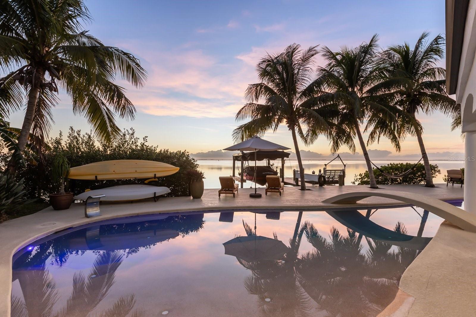 Luxurious waterfront custom estate with five bedrooms, 5.5 baths, and over 6,558 square feet exceptionally updated in 2022. Experience endless coastal paradise with 150 feet of Banana River frontage, breathtaking unobstructed views, dolphins swimming in your backyard, boat access to the Atlantic Ocean, nearby beaches in the Surf Capital of the East Coast and iconic rocket launches from Kennedy Space Center. This exquisite waterfront property offers a blend of luxury and comfort, and is designed to maximize natural light and stunning water views. The chef’s kitchen is ideal for entertaining and features two islands, two dishwashers, three chef sinks, custom-designed stone countertops and backsplash, high-end appliances and cabinets, six-burner gas stove, wine cellar and a butler's pantry. Along with the gourmet kitchen, the private home office and gym are on the first floor. Upstairs, you will find the remarkable primary retreat which features picturesque views of the river, coral stone tile in the bath and a large custom walk-in closet with laundry room access. All bedrooms are upstairs, including a second primary, hidden passages, attached guest quarters with a media room and separate kitchen, plus a turf balcony overlooking the resort-style pool and backyard oasis. Designed and built with longevity and quality in mind, the first level is constructed with reinforced cement block with steel and cement columns supporting the second level. Additional property features include the summer kitchen, stone-coated steel roof installed in 2022, whole-house backup 26-kilowatt Generac generator with aluminum enclosure, updated air-conditioning units and water heater, fully reinforced seawall, covered boat lift, extended dock, oversized three-car garage, high-tech pool equipment and more. Discover the ultimate coastal lifestyle and make this paradise yours.